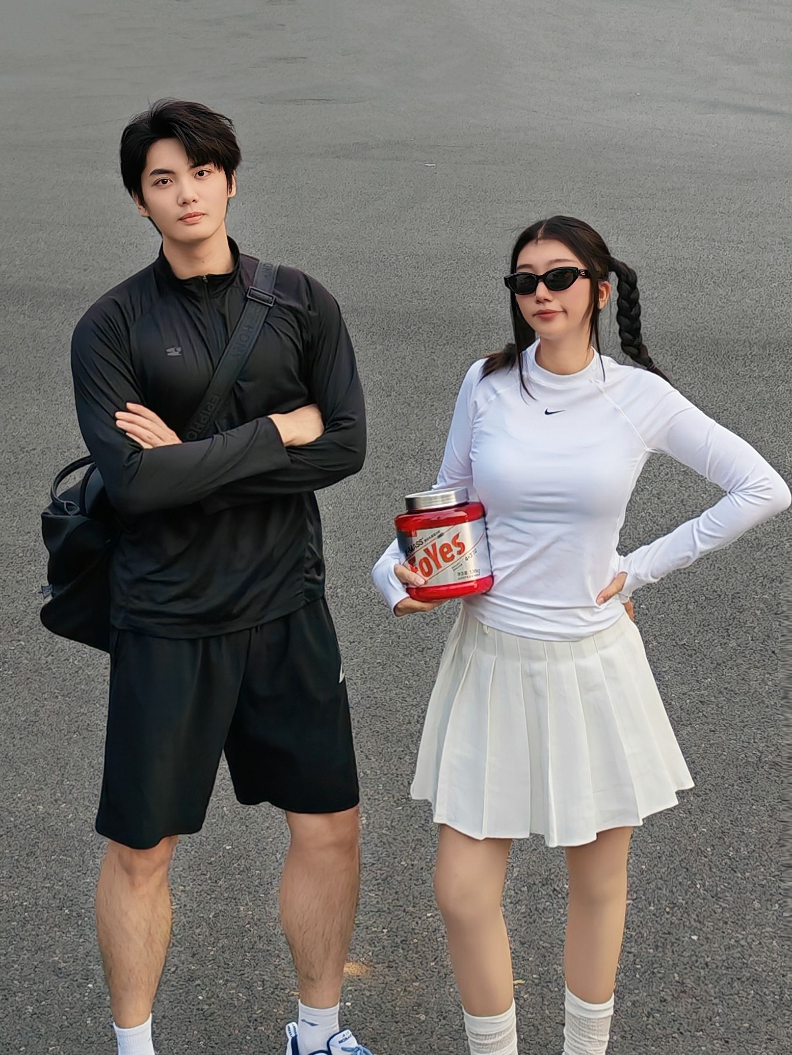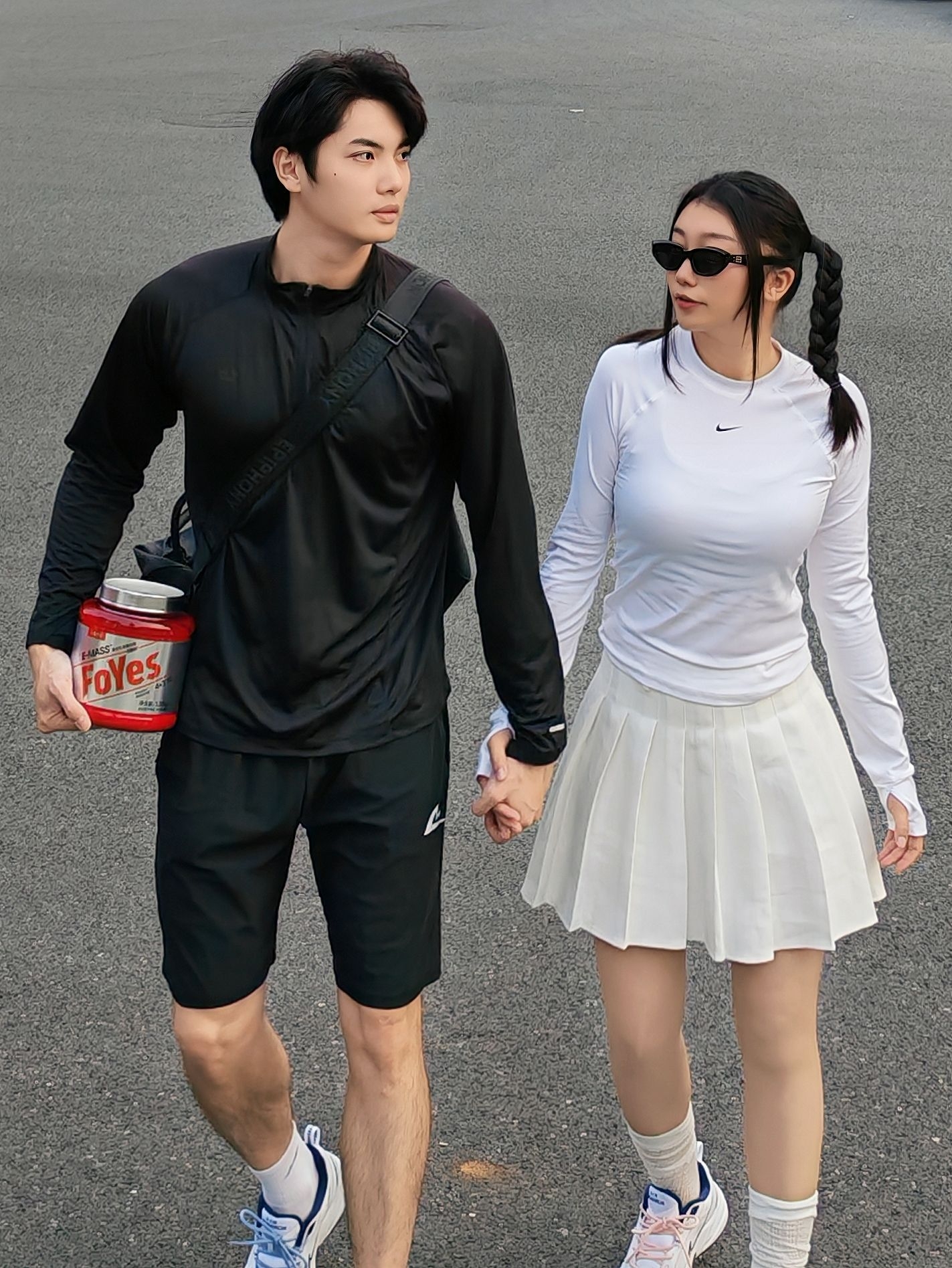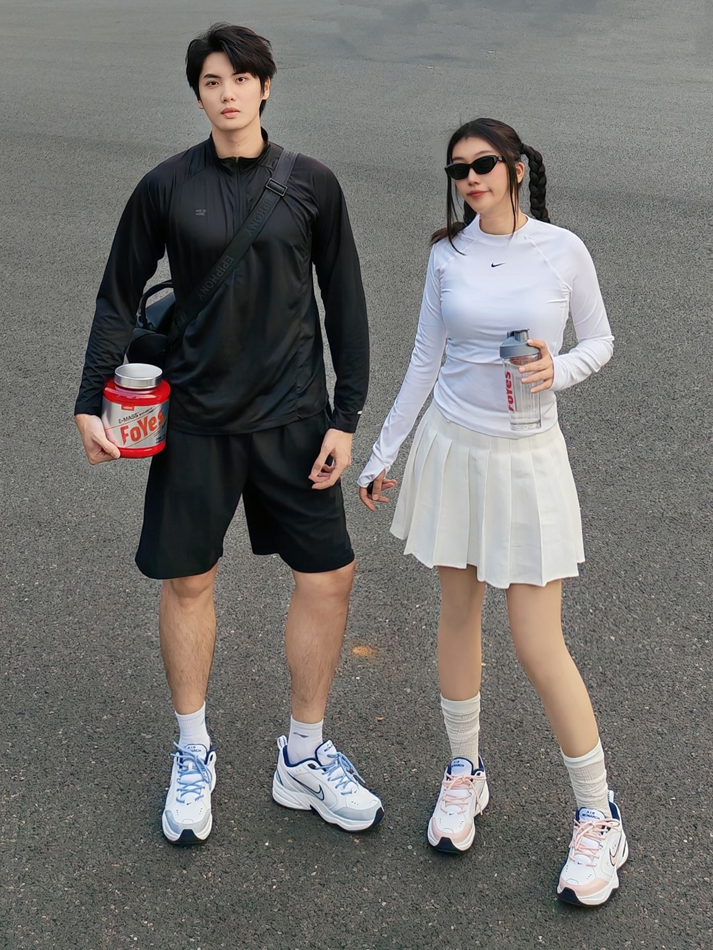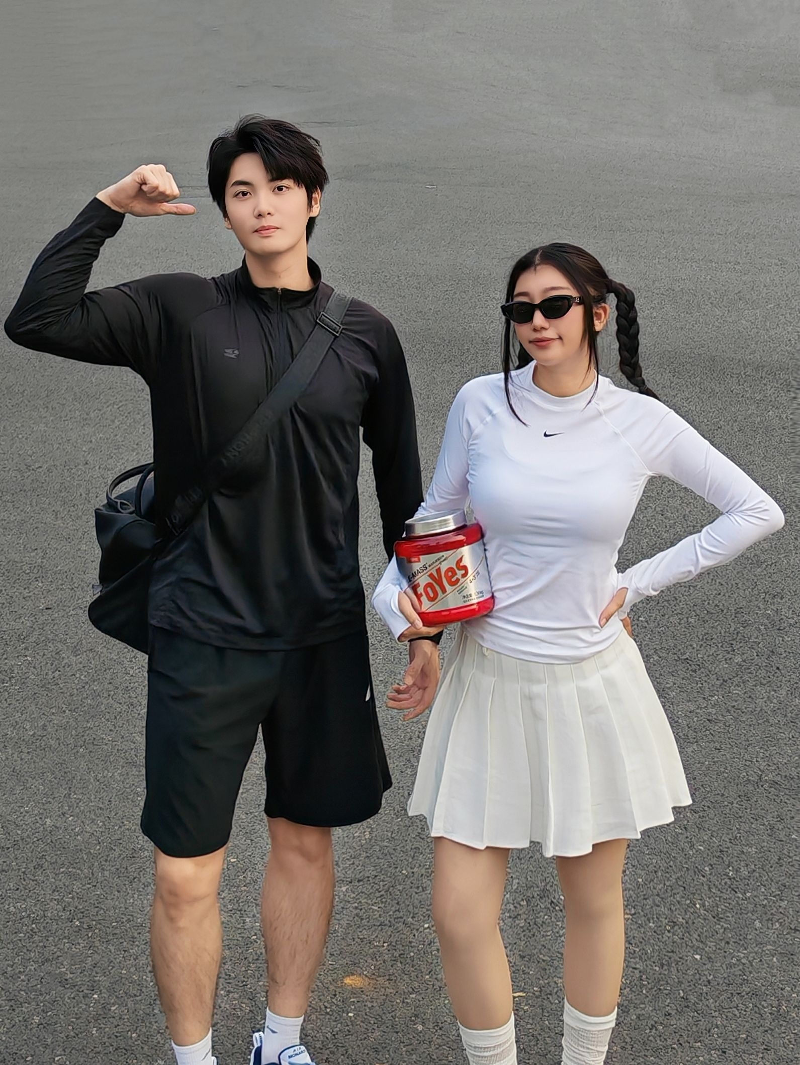 黑白配运动风穿搭太戳我! 男生一身黑速干衣+短裤,秀出肌肉线条超有安全感; 女生白上衣+百褶裙,甜酷感拉满还显腿长。 手里的Foyes 增肌粉粉才是重点,运动后补充能量的刚需!一杯抵3顿正餐热量,绵密的椰奶味,不像传统增肌粉般结块难咽,日常加餐、训练后喝,都轻松~ 一起健身一起变美,健康和甜蜜都不耽误~ 这样的情侣局,谁看了不羡慕!✨