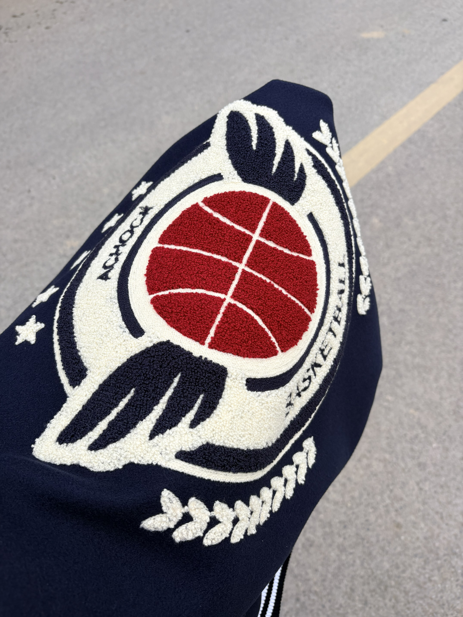 这件藏青拼白棒球服也太好看了💙 经典的拼色设计+复古刺绣贴布, 随便搭条棕裤子就很有美式校园那味儿。⚾️ 软乎乎的面料,风大的时候也能扛住 宽松版型藏肉又舒服💕 💡 我的百搭思路: • 配白T+棕裤+冷帽 → 美式复古松弛感 我165/96 穿的m