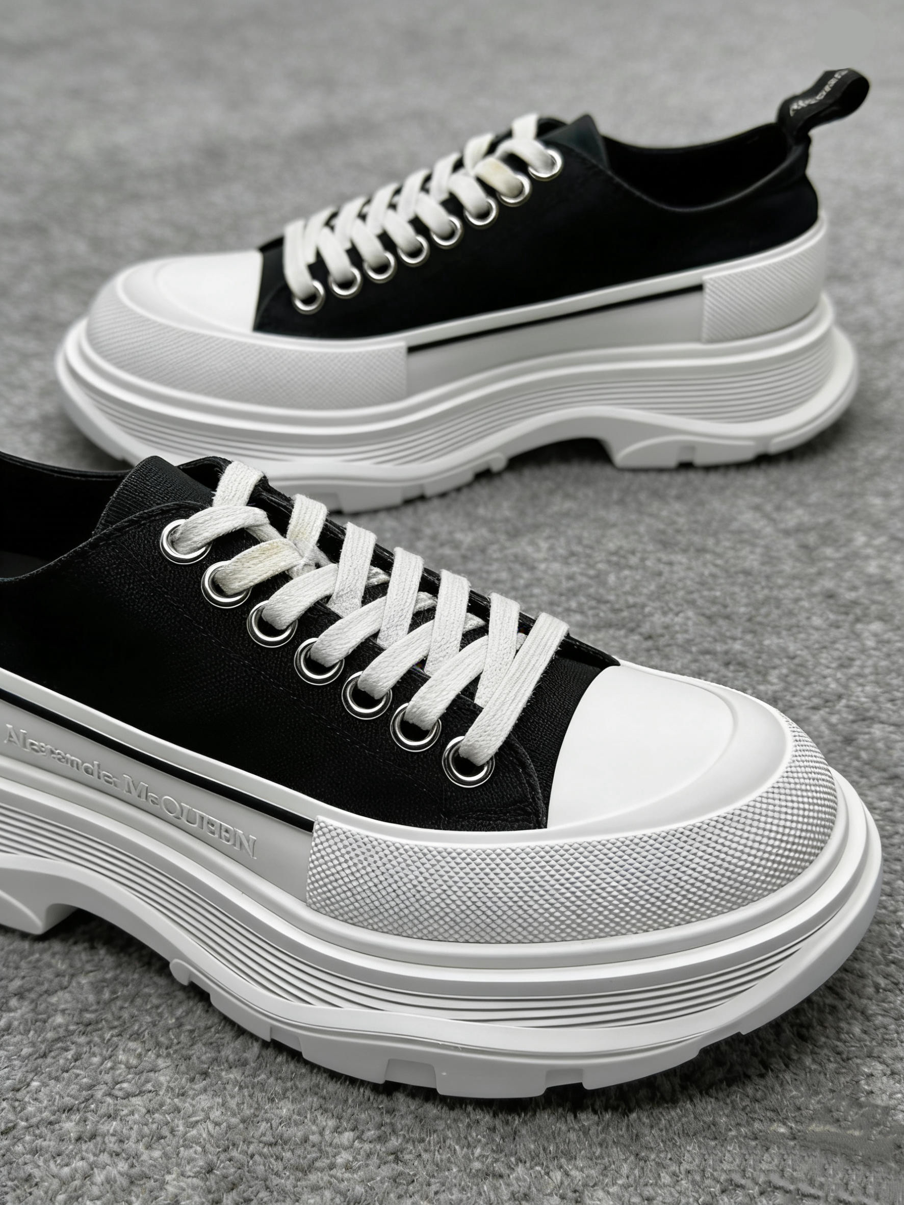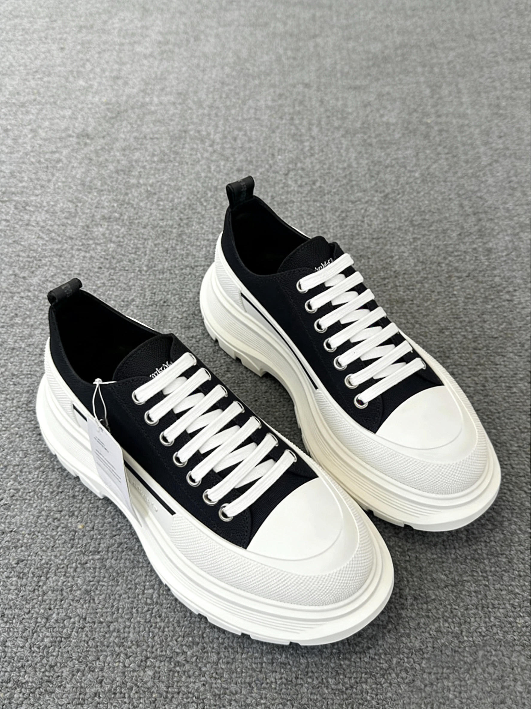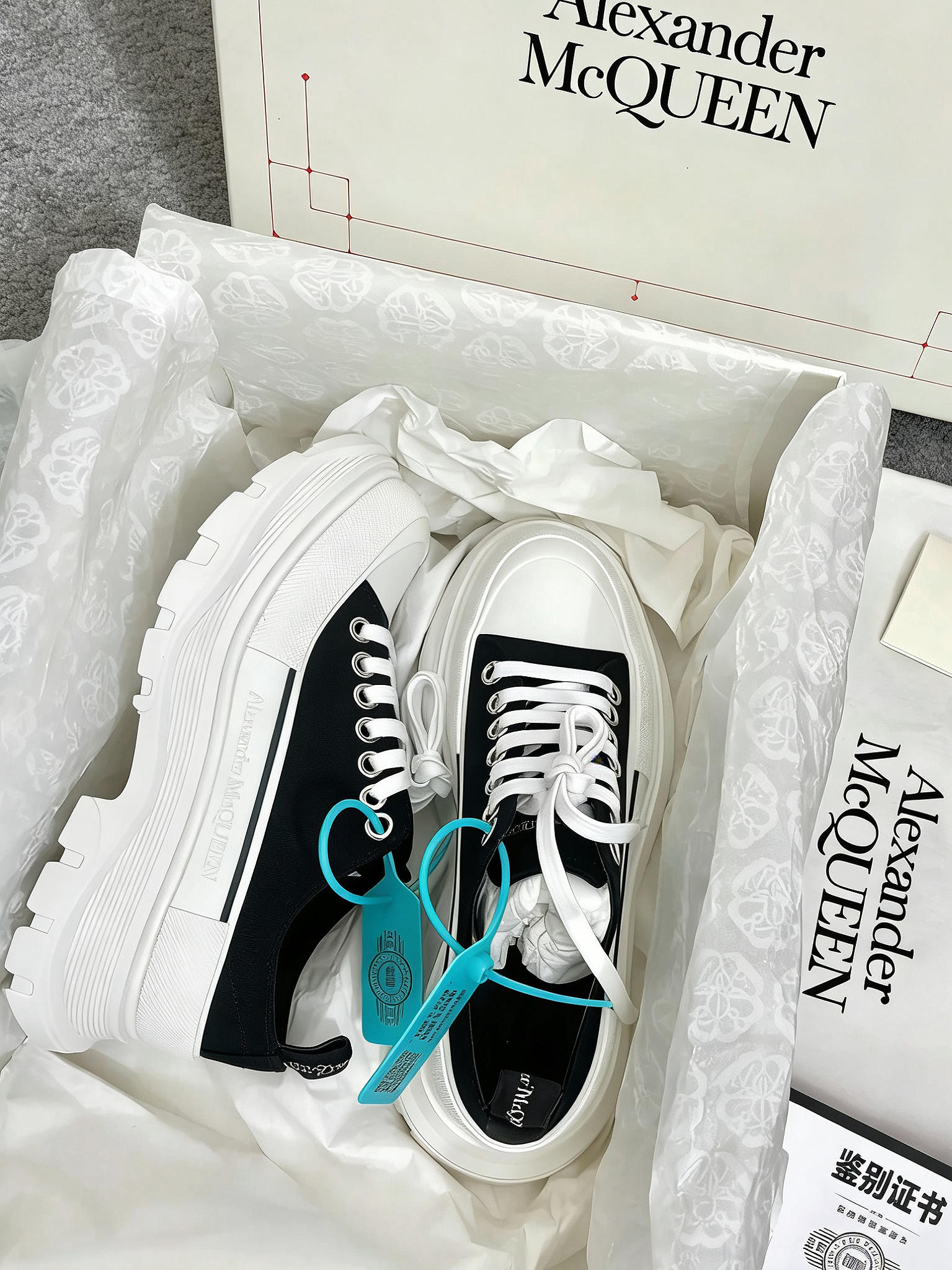 本篇笔记关联了Alexander McQueen/亚历山大麦昆 Tread Slick 潮流 增高 厚底 织物 圆头牛皮 运动休闲鞋 白色/深黑色等商品,为用户提供真实的使用体验和购买参考。