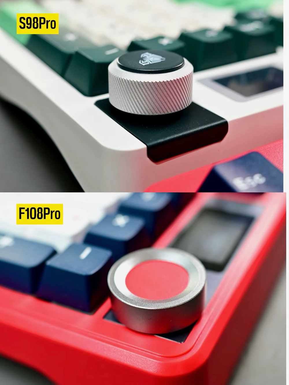 入手了狼蛛两款颜值和配置都非常高的机械键盘,除了尺寸和按键差别,单看外观,很难判断哪个更合适(高级),今天来做个横向对比,供大家参考: ⭕️相同点:都是三模(蓝牙5.0/2.4G/有线)热插拔机械键盘,都支持宏自定义,键帽都采用PBT双色注塑材质,键帽尺寸相同,都配备了1.14寸可自定义的动态炫彩屏,多功能旋钮的操作和功能相同,都带可以调节亮度/速度/花式的RGB背光 ⌨️配置差别: 1、 F1...