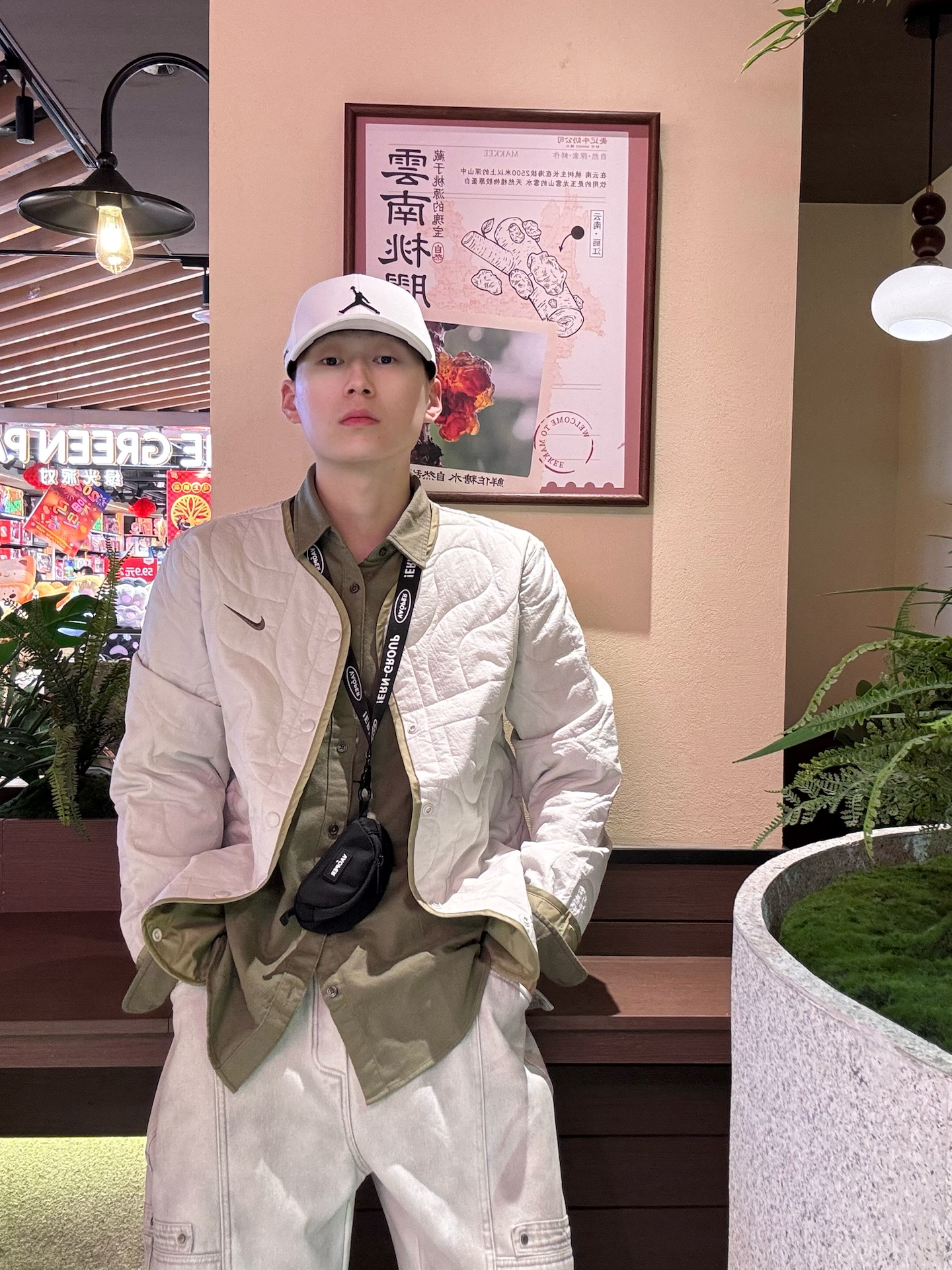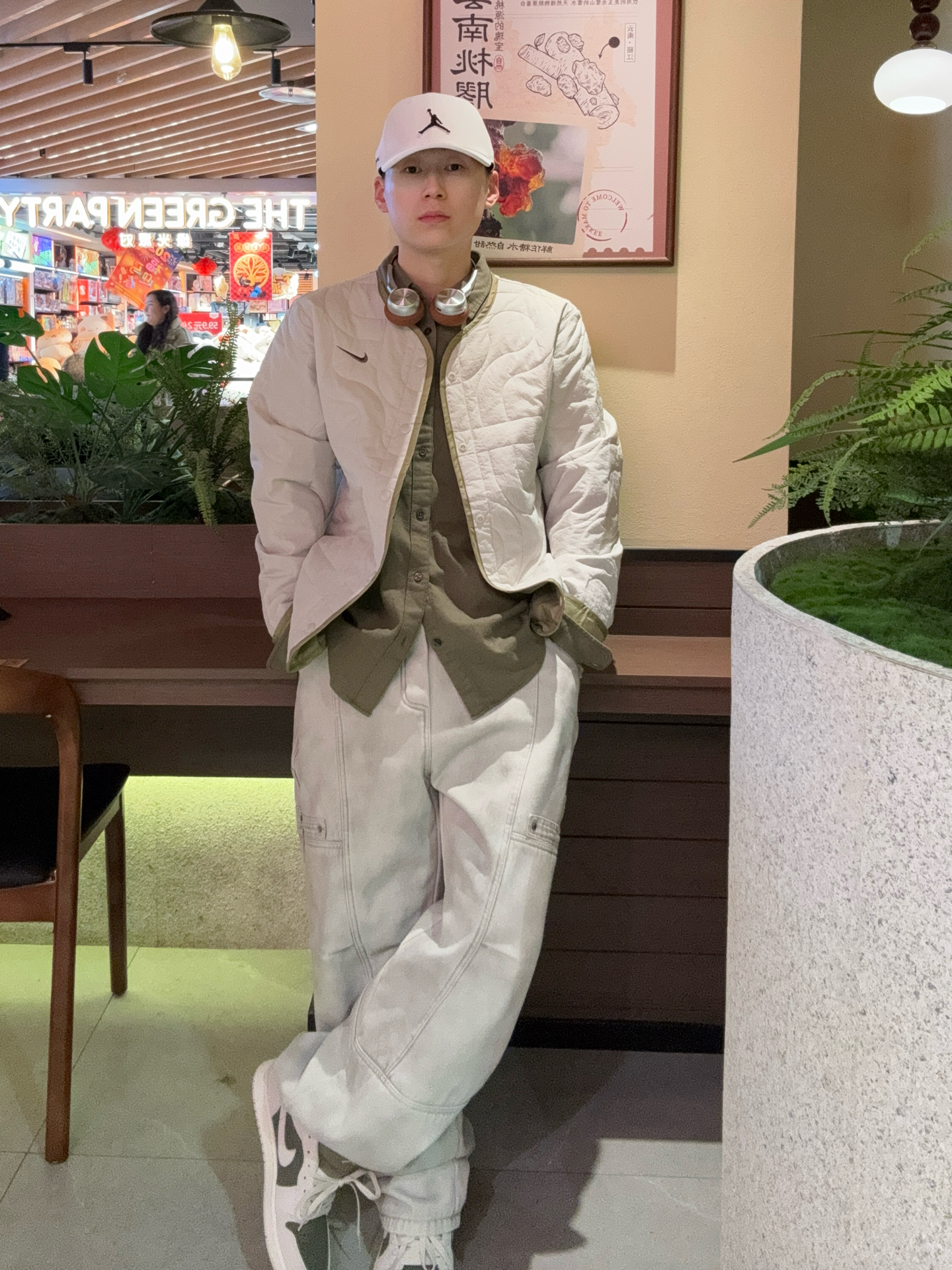 浅米白棉服叠穿橄榄绿衬衫,同色系过渡自然又和谐 宽松阔腿裤搭配AJ橄榄绿配色球鞋,松弛感拉满💯 棒球帽点缀细节,整体低饱和色系统一 营造干净清爽的少年感🎧 是早春出街不费力的松弛穿搭范本😉 #基础款拿捏冬季穿搭 #预制我的过年战衣 #2026开年Fitcheck #当我以为穿的很潮 #美美开局2026