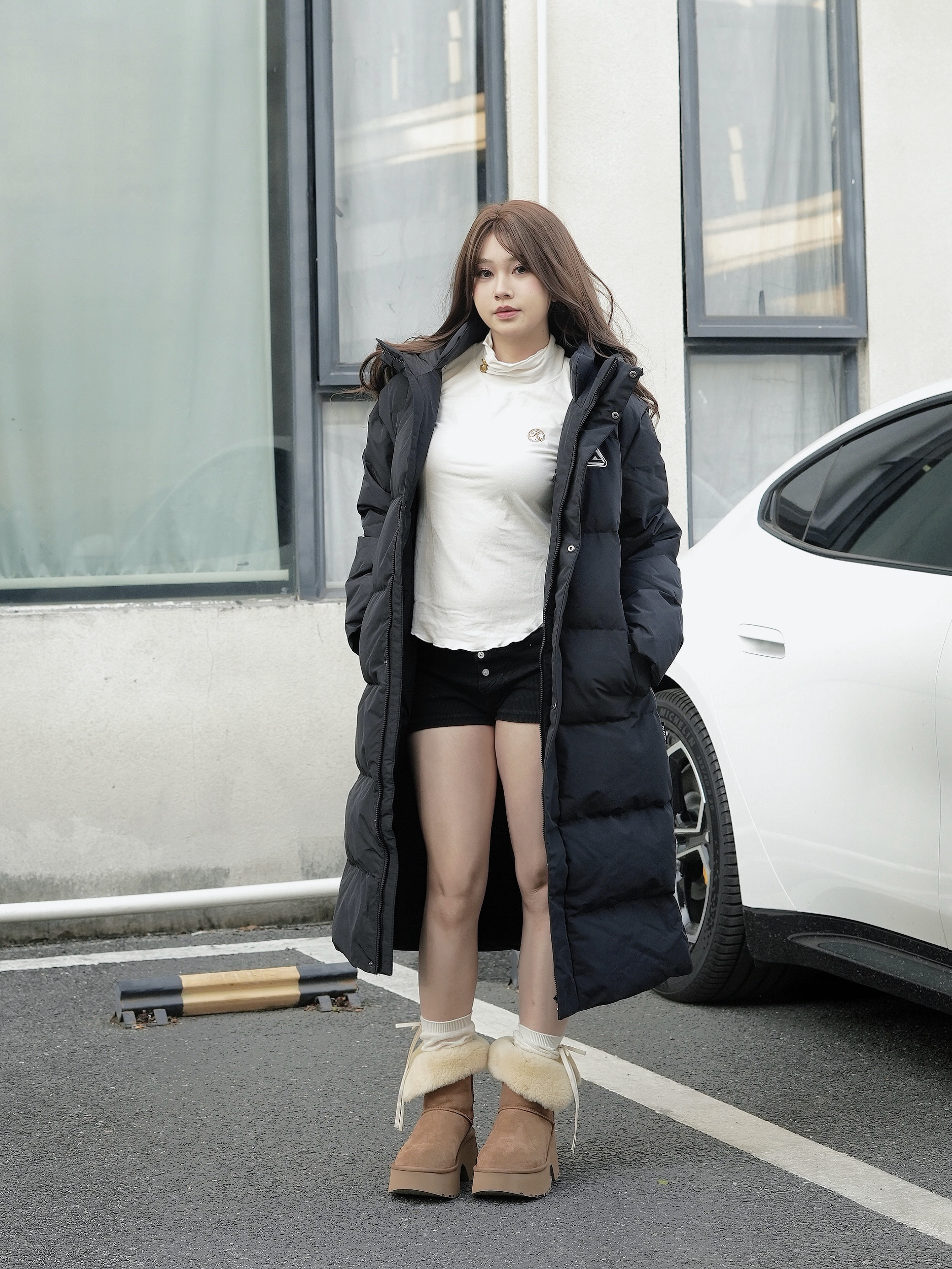 这套搭配冬天穿再合适不过! 这次的冬日OOTD 是穿了雨琦同款UGG栗色显温柔,牛剖层革加绒贴合脚感 外套选了长款黑色羽绒服三防面料好打理,充绒量扎实。 我觉得内搭毛衣+短辣妹裤就和谐,我喜欢这种百搭不挑人的组合,我认为保暖又体面,尺码按平时选即可~ 大家觉得好看吗?欢迎评论区分享冬日不显臃肿LOOK!