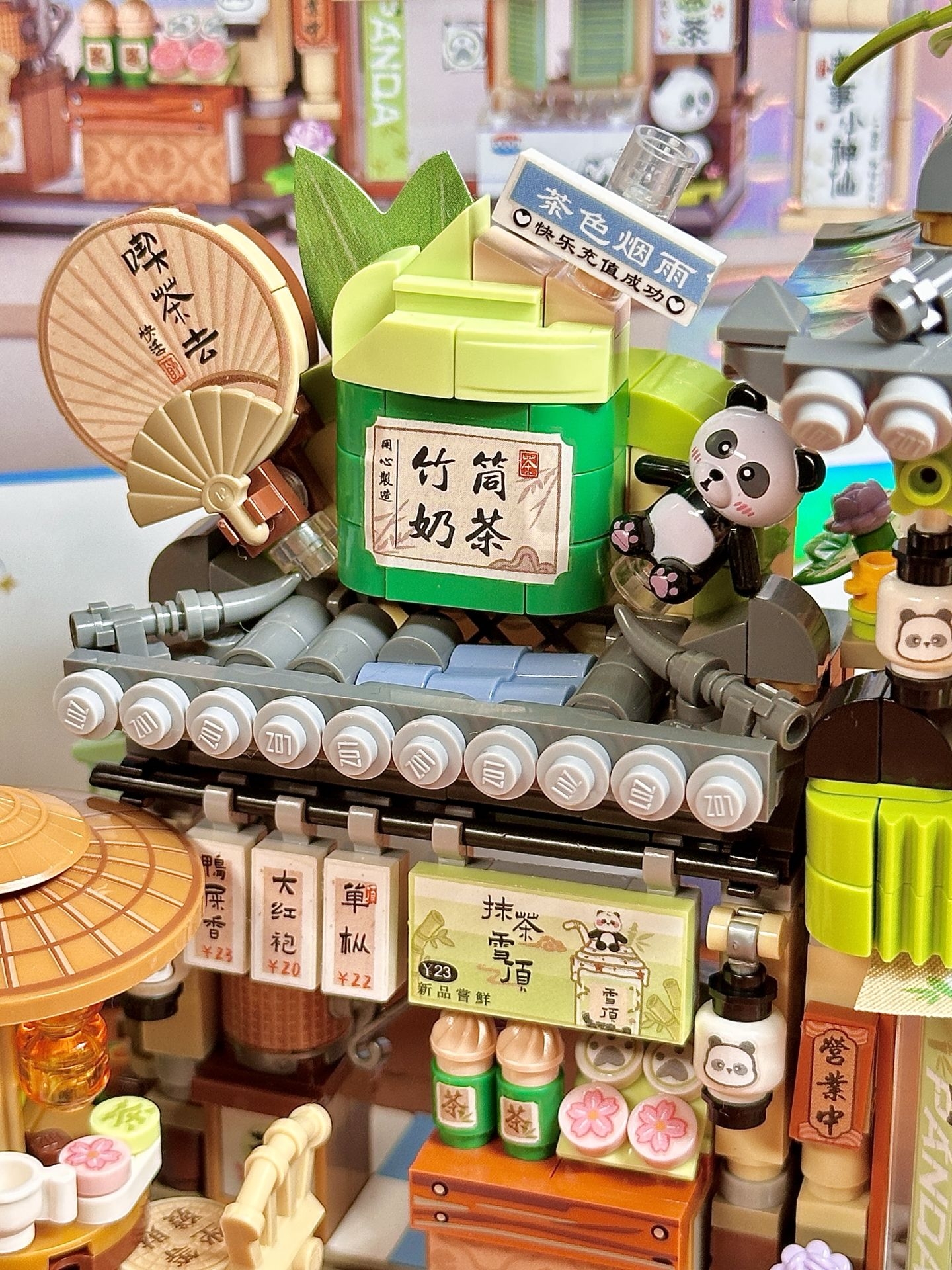 好可爱的小颗粒积木,拼了我6个多小时 熊猫茶舍这款真的泰可爱!!! 随便放都好看,脑海里已经浮现一堆故事了 我觉得,细节真的很好,有雪糕有茶店 像真实的茶室1:1布置,还有二楼包厢 贴纸是转印贴,要小心点,我容易贴歪掉 真的是治愈又有趣的小街景,好喜欢~ #玩具怪可爱 #积木的快乐谁懂啊 #给我看看你们的宝藏积木 #拼装的乐趣 #积木的快乐谁懂啊
