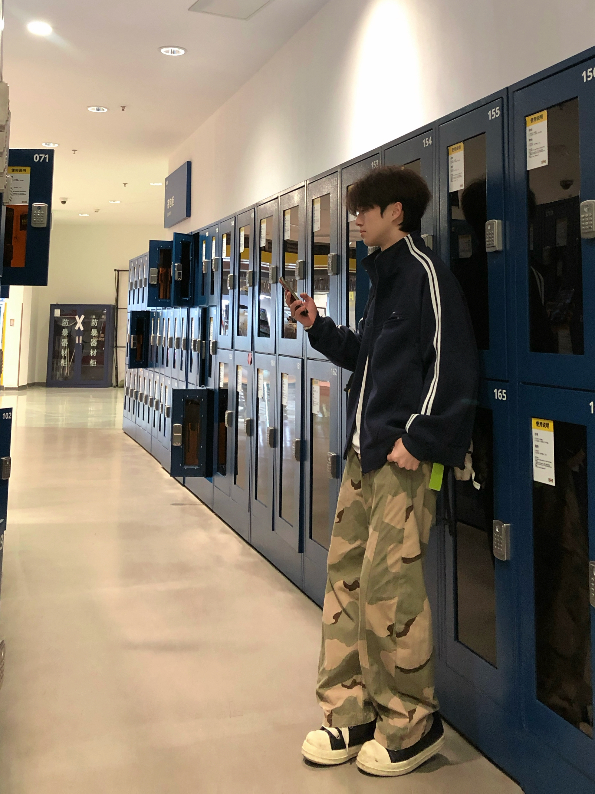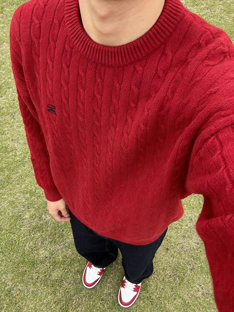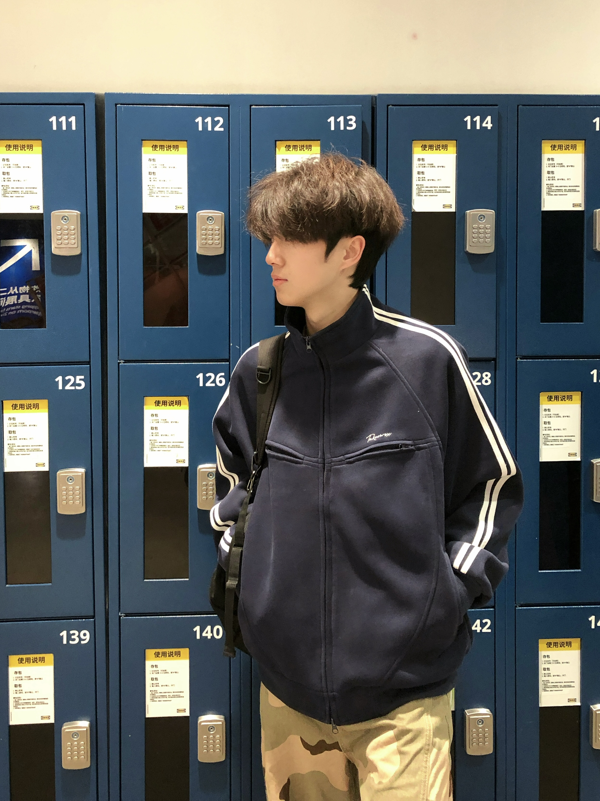 这一套真的太帅了 学院风袖口双杠设计 藏青色真的好好看,胸口Logo刺绣特别的精致 下身在搭配条迷彩弯刀阔腿裤 这一套氛围感满满
