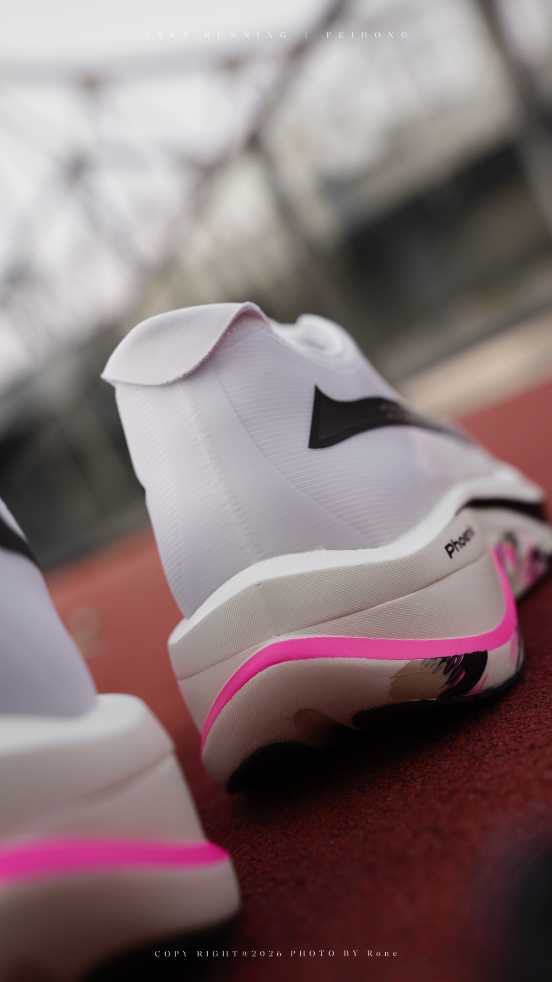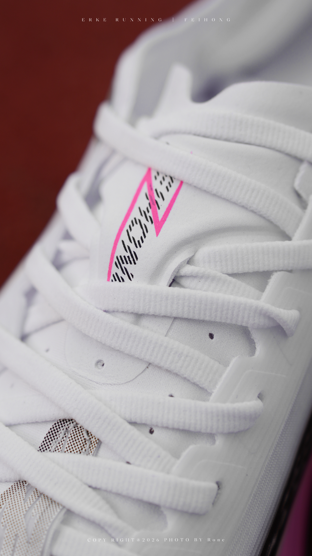 💗白色鞋身点缀着粉色渐变线条与若隐若现的豹纹,清爽中暗藏野性,上脚更是醒目。 💗外层大LOGO之下暗藏满版小标,鸿羽鞋面轻盈贴脚,透气不闷,包裹感恰到好处。 中底搭载全新鸿科技,配合T700碳板,虽是薄底碳板鞋,脚感却扎实又富弹性。我作为偏好前掌跑法的跑者,能清晰感受到蹬伸时的推进力,长距离下亦无泄力感,步履轻快自如。鞋楦对宽脚与正常脚型均较友好。 #情人节穿双心动 #鸿星尔克飞鸿 #薄底半马...