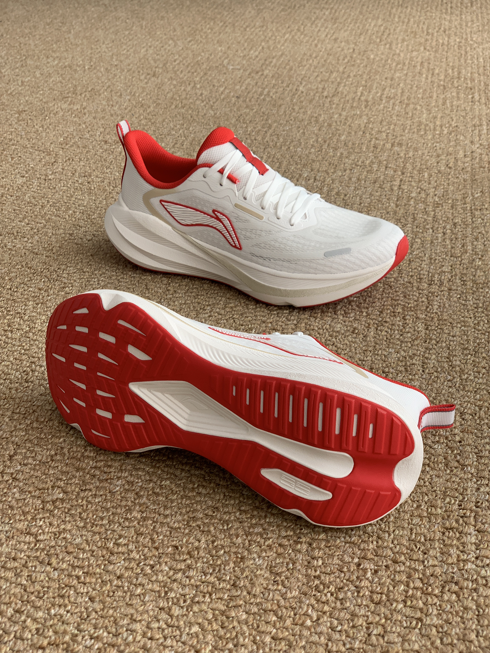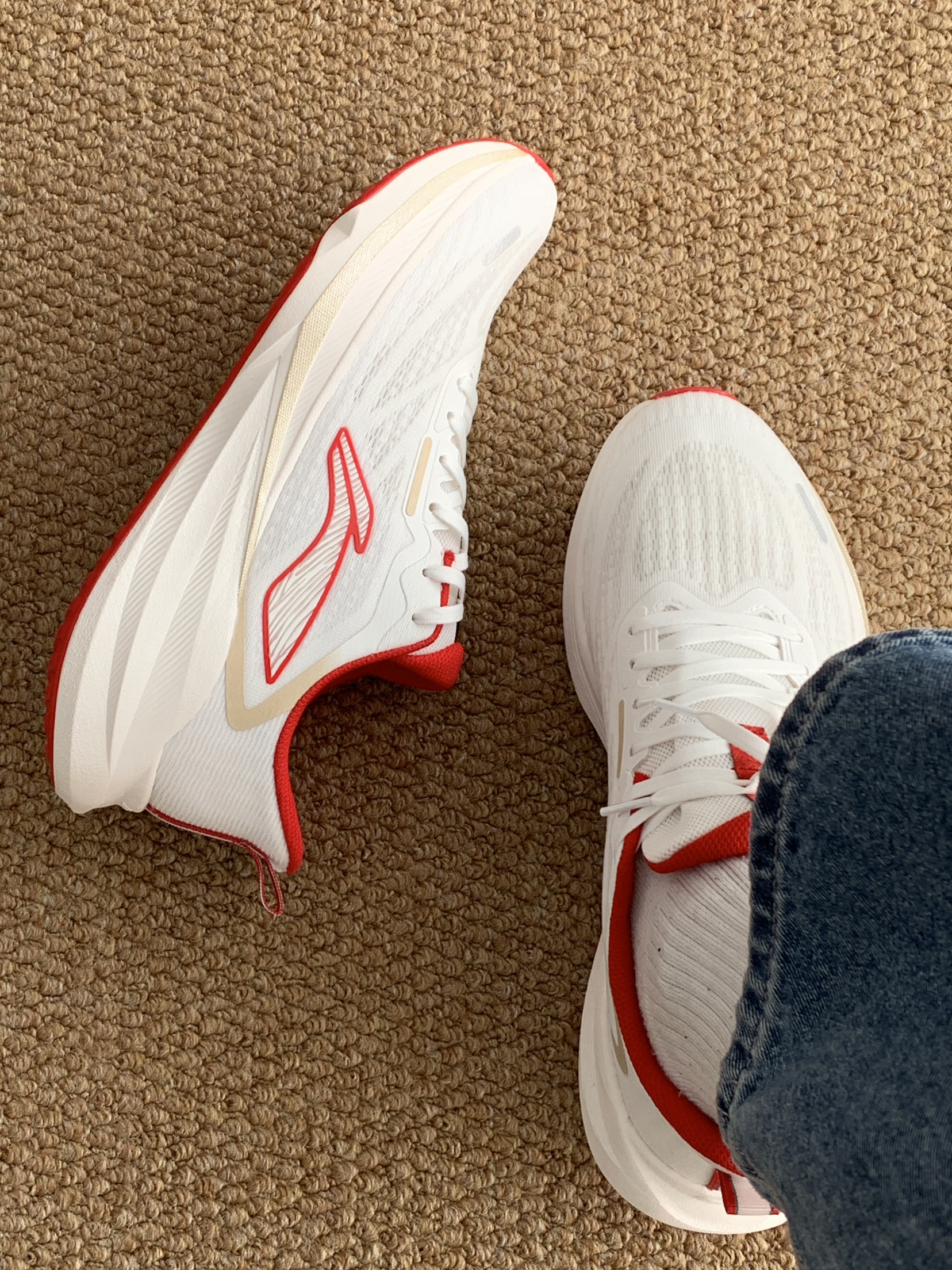 新年穿新鞋 这双红白配色好喜庆 颜值:大面积简约白色 加点红色年味元素 脚感:跑鞋脚感无需多言 软乎舒适 搭配:通勤运动休闲都轻易拿下 价格:200+