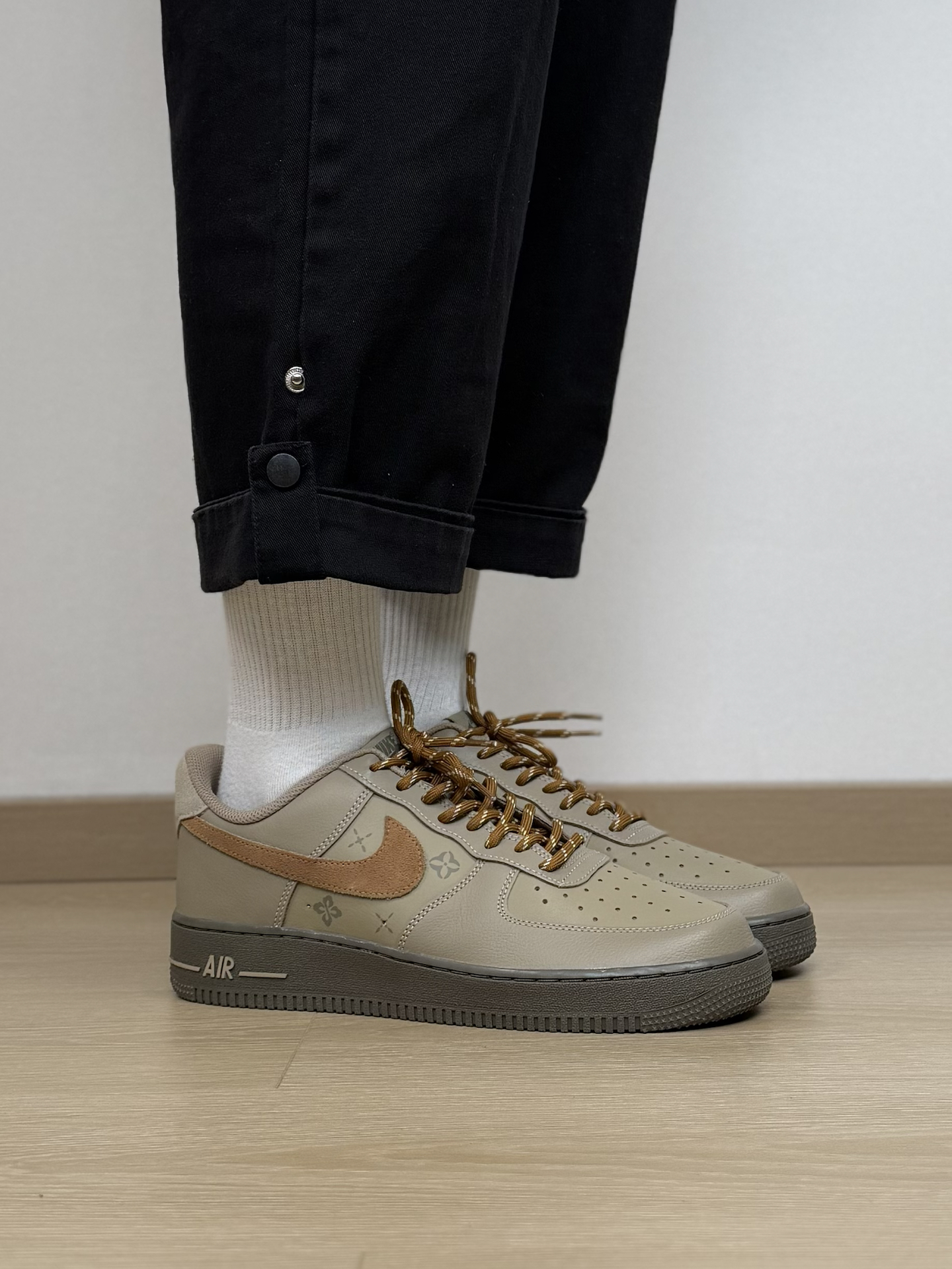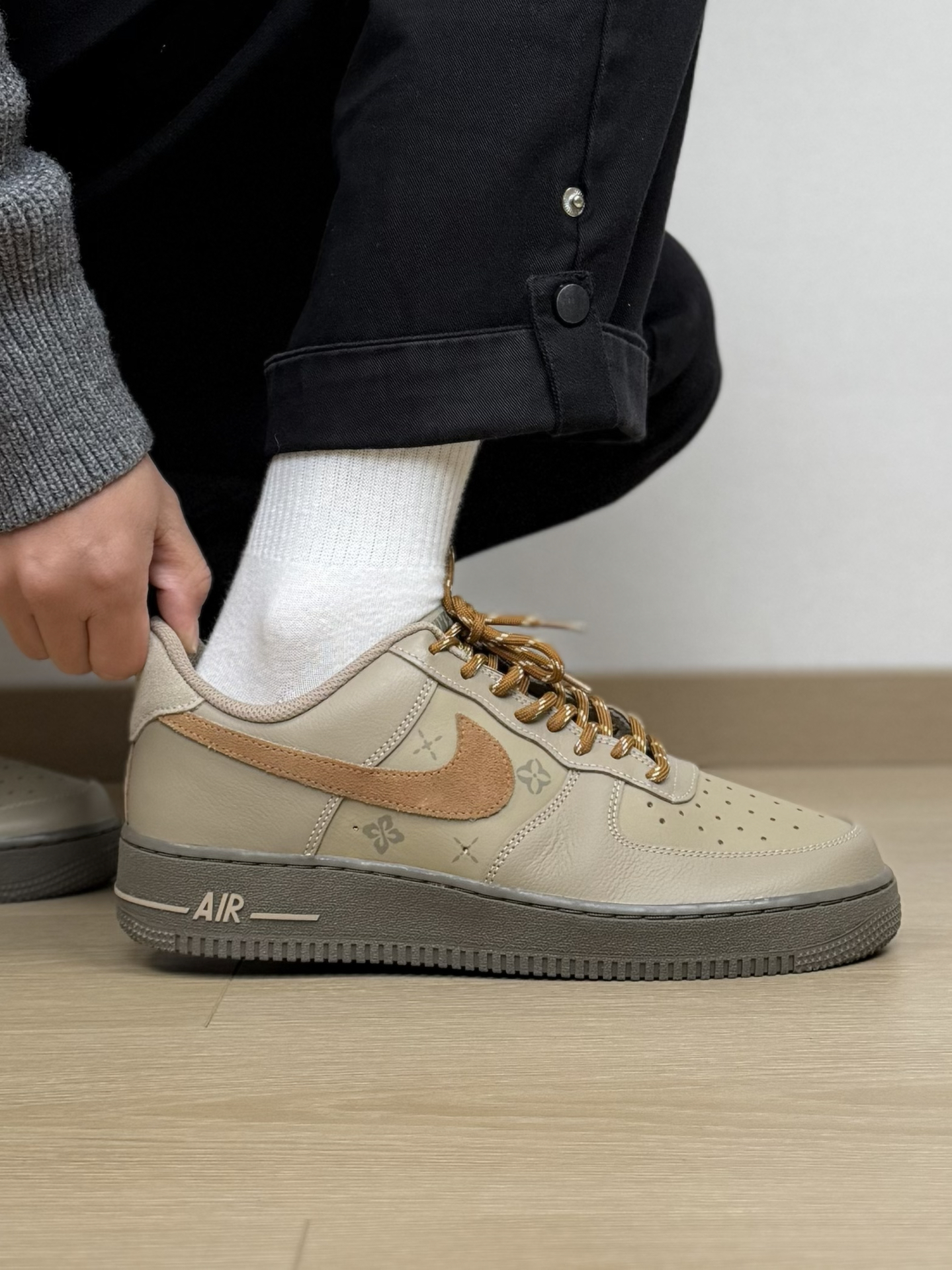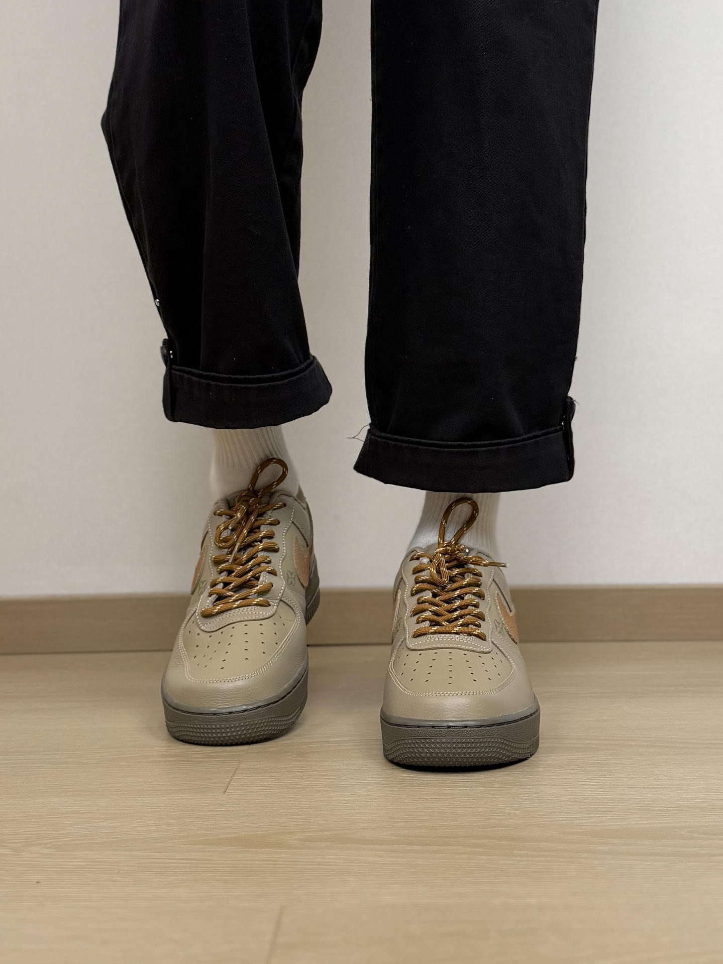我真的太喜欢这双原木风的AF1了 尤其侧面钩子旁的小暗纹 看起来就很有质感 上脚搭配也没难度 简单穿条休闲裤就很好看 还带点小小的增高效果 而且AF1的脚感大家应该都知道 会越穿越舒适 不过尺码偏大了点 脚瘦的我觉得可以选小半码 #板鞋界来了个彩色控 #情人节穿双心动 #这双鞋很百搭 #秋冬日宝藏休闲板鞋 #新年穿新鞋