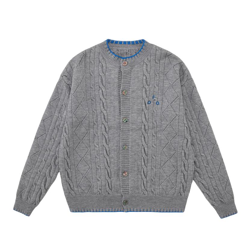 这件灰蓝撞色的麻花毛衣开衫,真的一眼就爱上! ☁️软乎乎的羊毛混纺面料,贴身穿巨舒服,不会扎皮肤。 🔵领口和袖口的蓝色毛边细节,给基础款增添了设计感,慵懒又带点小俏皮。 内搭T恤、衬衫都适配,配牛仔裤是松弛感日常,搭半裙又能穿出温柔气质。 通勤、约会、宅家穿都合适~