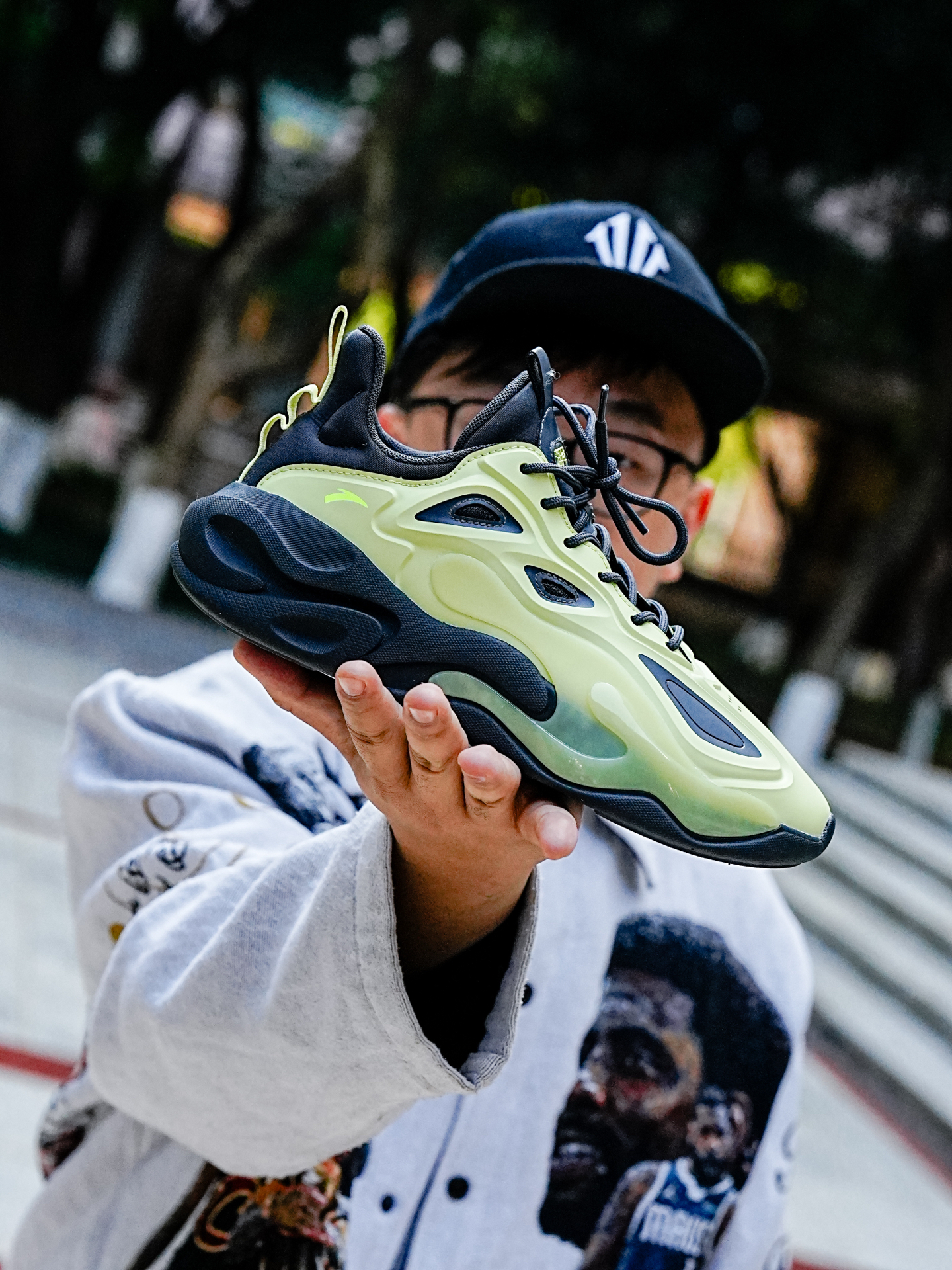 推荐入手。发售价1499。这价格绝对是小众运动鞋的首选,主要这个青色真的很好看呢 先来看细节。 【定制球鞋】 青影骅 马年限定 轻盈 舒适百搭 手绘 复古个性减震 男款 青色