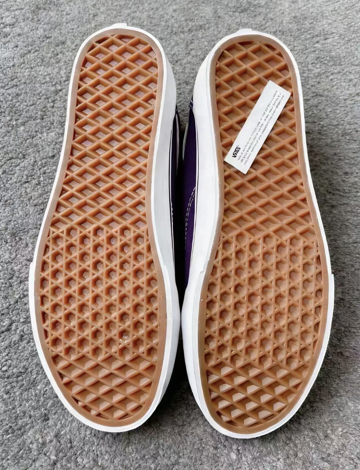 这双Vans全紫配色真的太高级了。鞋头和后跟用的都是细腻麂皮,手感特别棒,侧面紫色帆布配上经典白色波浪Logo,视觉上完全不闷。后跟那抹红标还有小老爷车印花,细节满分。穿的时候注意,这鞋偏大记得买小一码。上脚随便搭条工装裤或者牛仔裤都很炸,去逛街或者滑板都回头率超高,赶紧冲