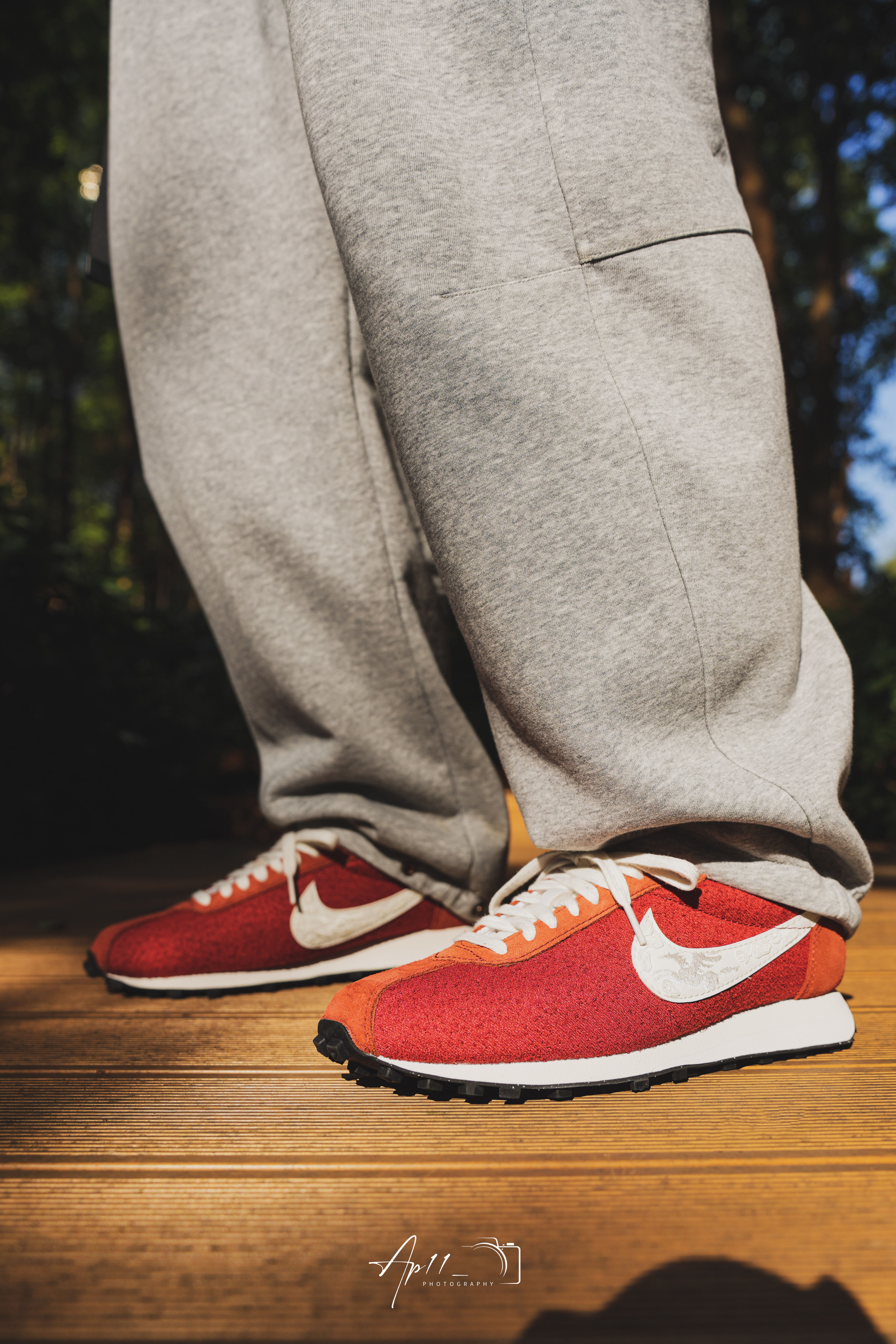 马年入了这双限定款,赤焰红鞋身搭配橙红撞色,像把新春的烟火气穿在脚上,侧边的祥云刺绣勾标是点睛之笔,年味直接拉满。绒面材质软乎乎的,踩上去很舒服,搭配灰色卫裤或牛仔裤都适配。春节走亲访友穿它,既有祥瑞寓意又不张扬,是近期出门的首选。