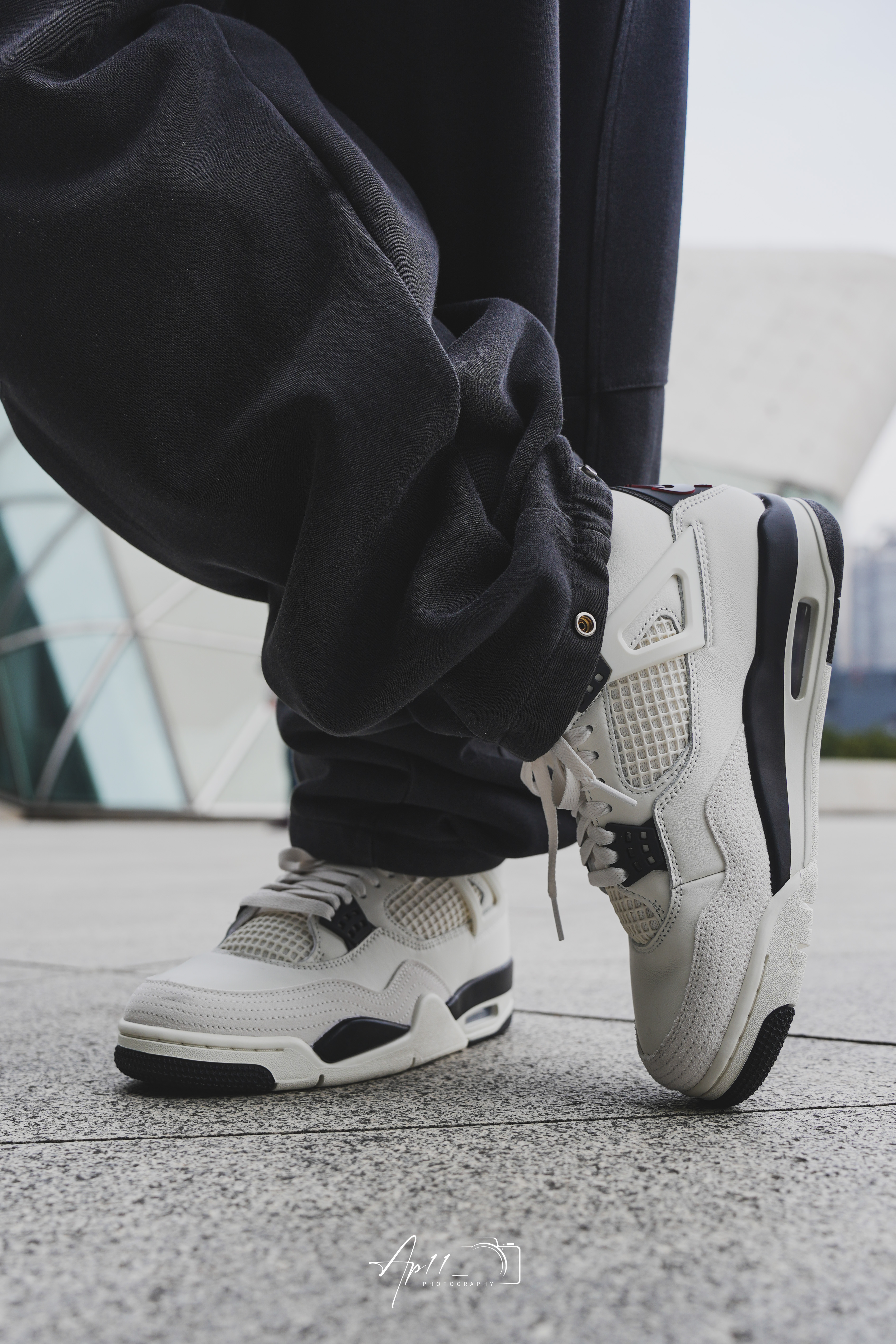周末和朋友逛艺术中心穿了这双AJ4,米白鞋身搭配黑色细节,像把复古街头感穿在脚上。皮面软而有支撑,搭配黑灰卫裤很和谐。算是近期出门的百搭单品,自带松弛感,回头率还不低。