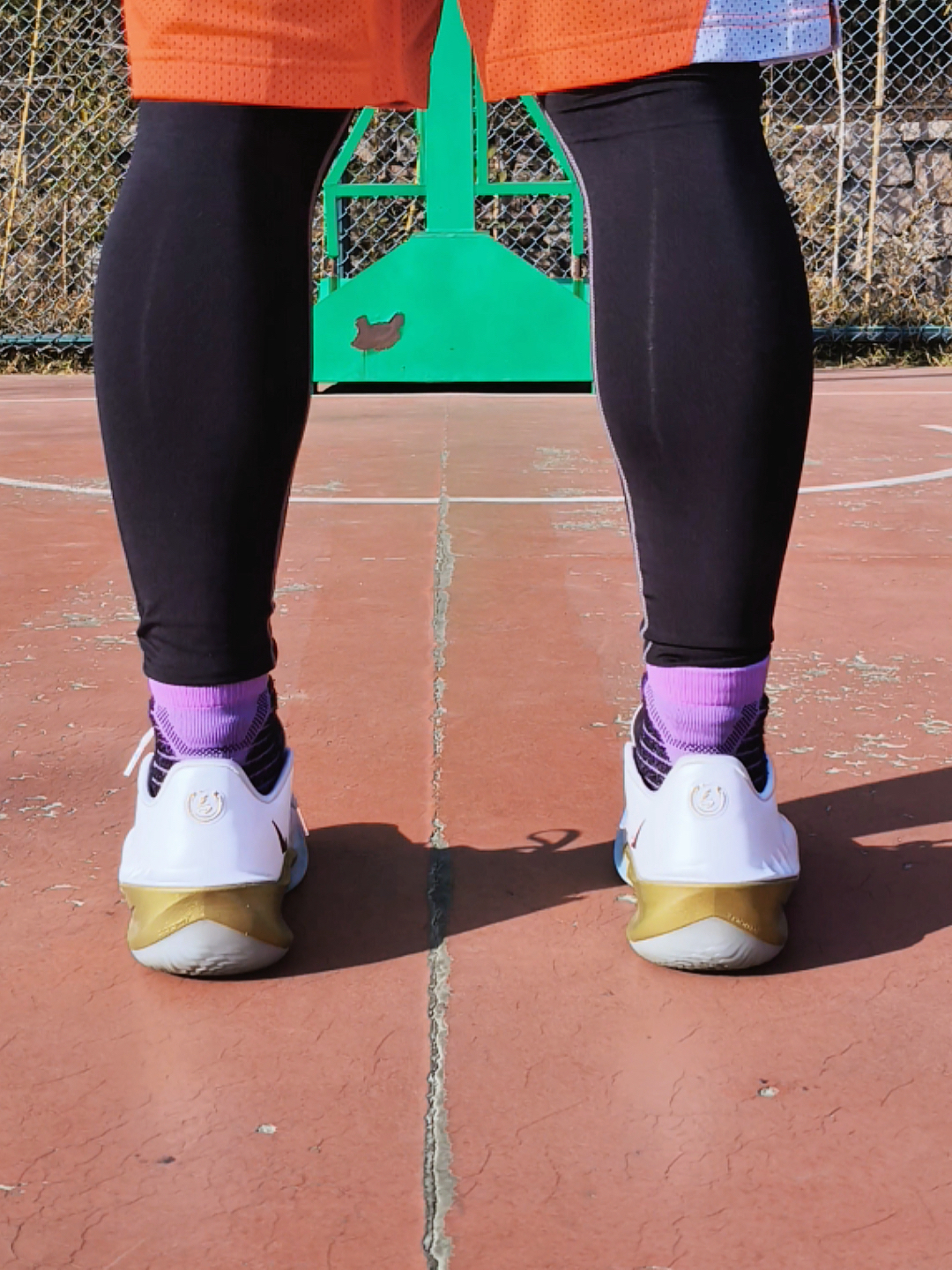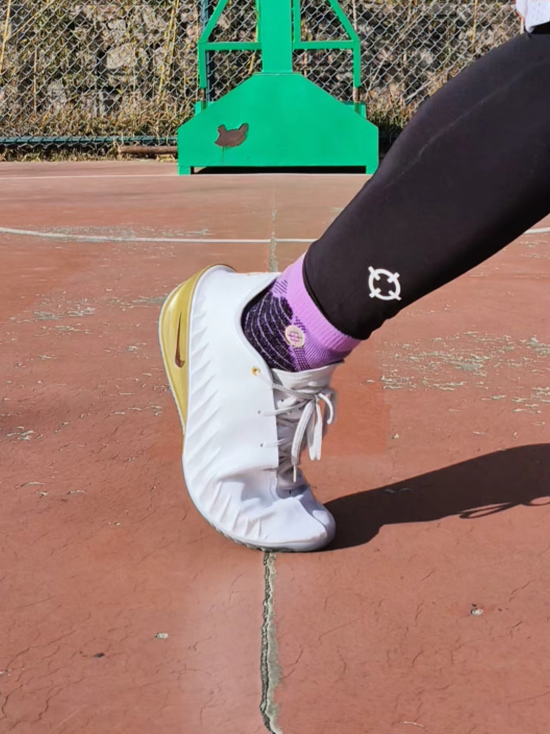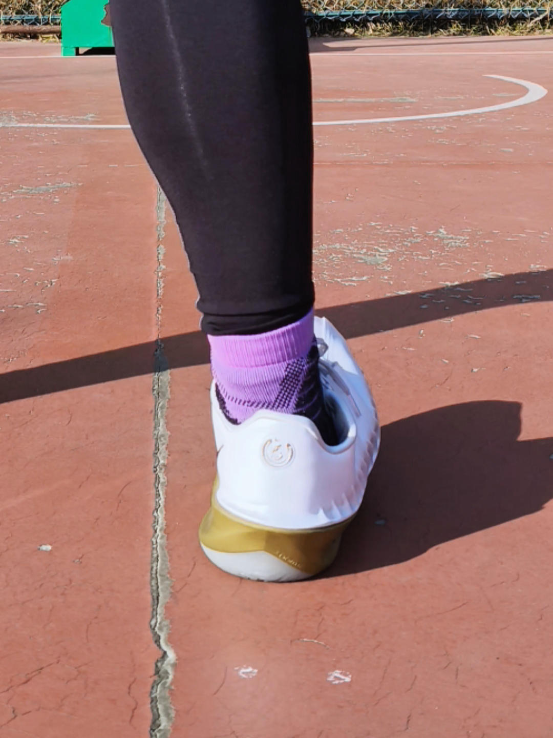 室外油漆地两场、室内木地板两场,加起来10个小时,先看下大底,有些地方起毛了,但整体磨损我觉得还可以,抓地比较稳。 再说下大家关心的鞋面,因为脚型问题,我正常脚正码入的,没有出现卡脚踝、挤小拇指的情况,也没有拇外翻,也不压脚趾,甚至脚趾上面还有空,填充有点少,包括鞋舌,所以包裹贴合舒适度上一般,鞋带要系紧,这样能解决后跟锁定一般的情况,但是稍微有点勒脚踝,内侧我是没有卡脚踝的情况,我看有朋友都磨...