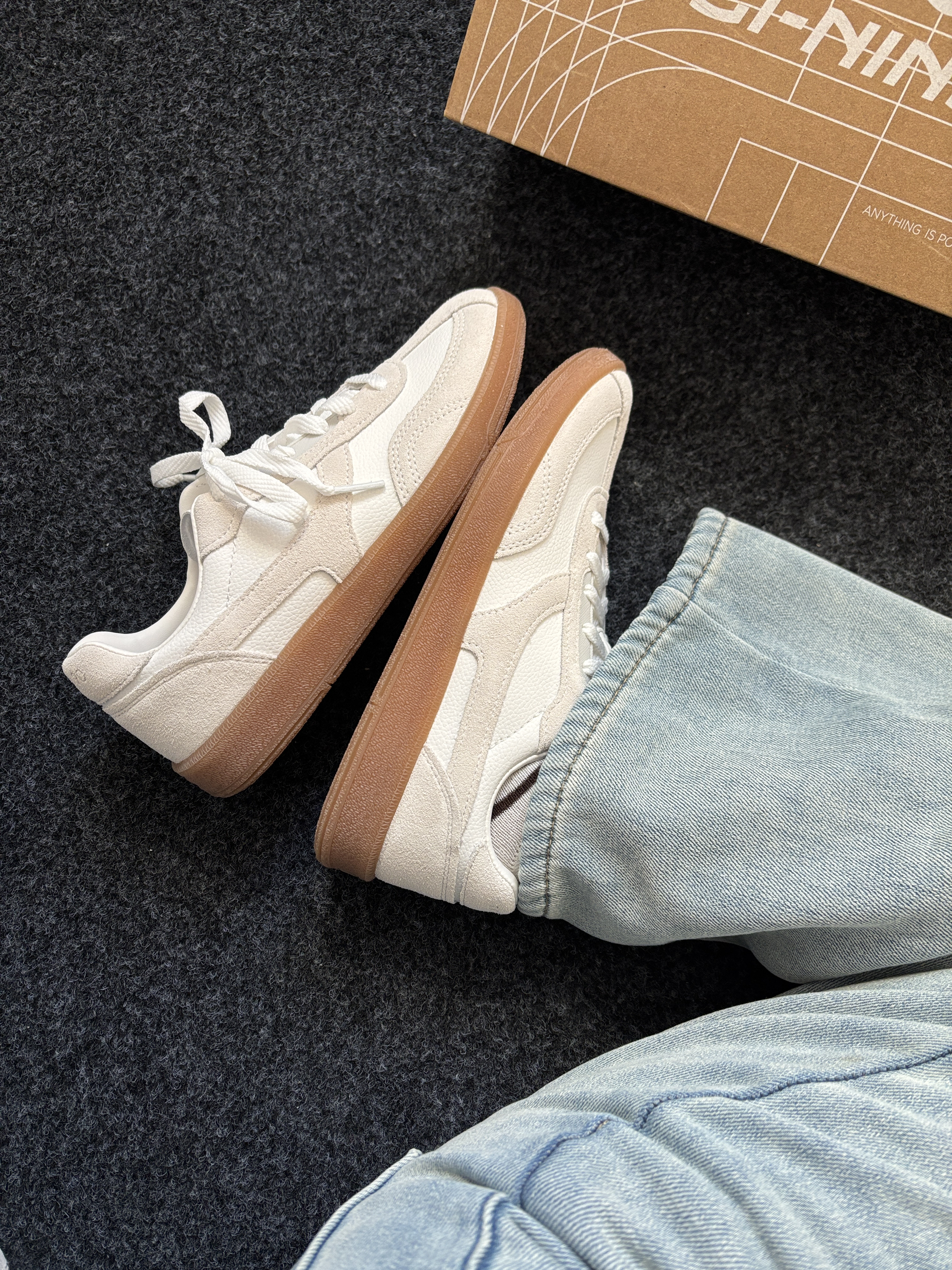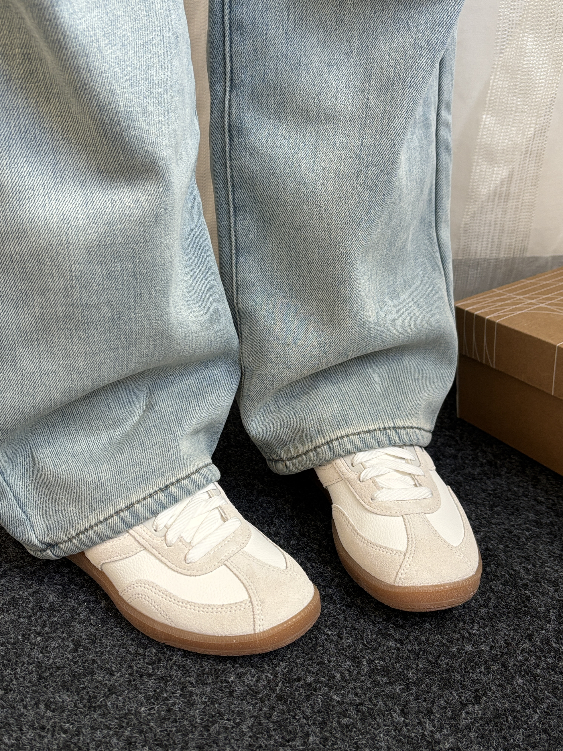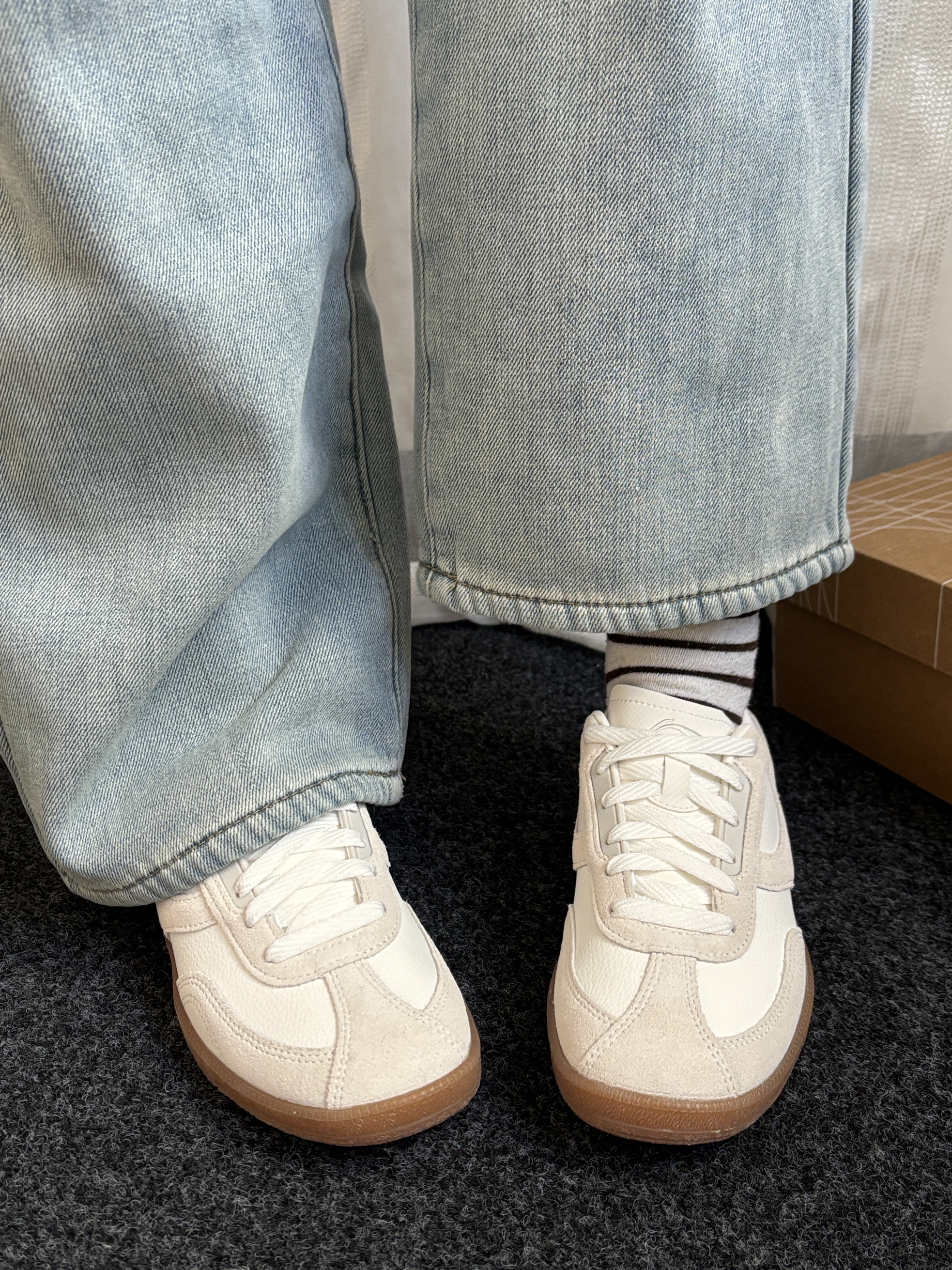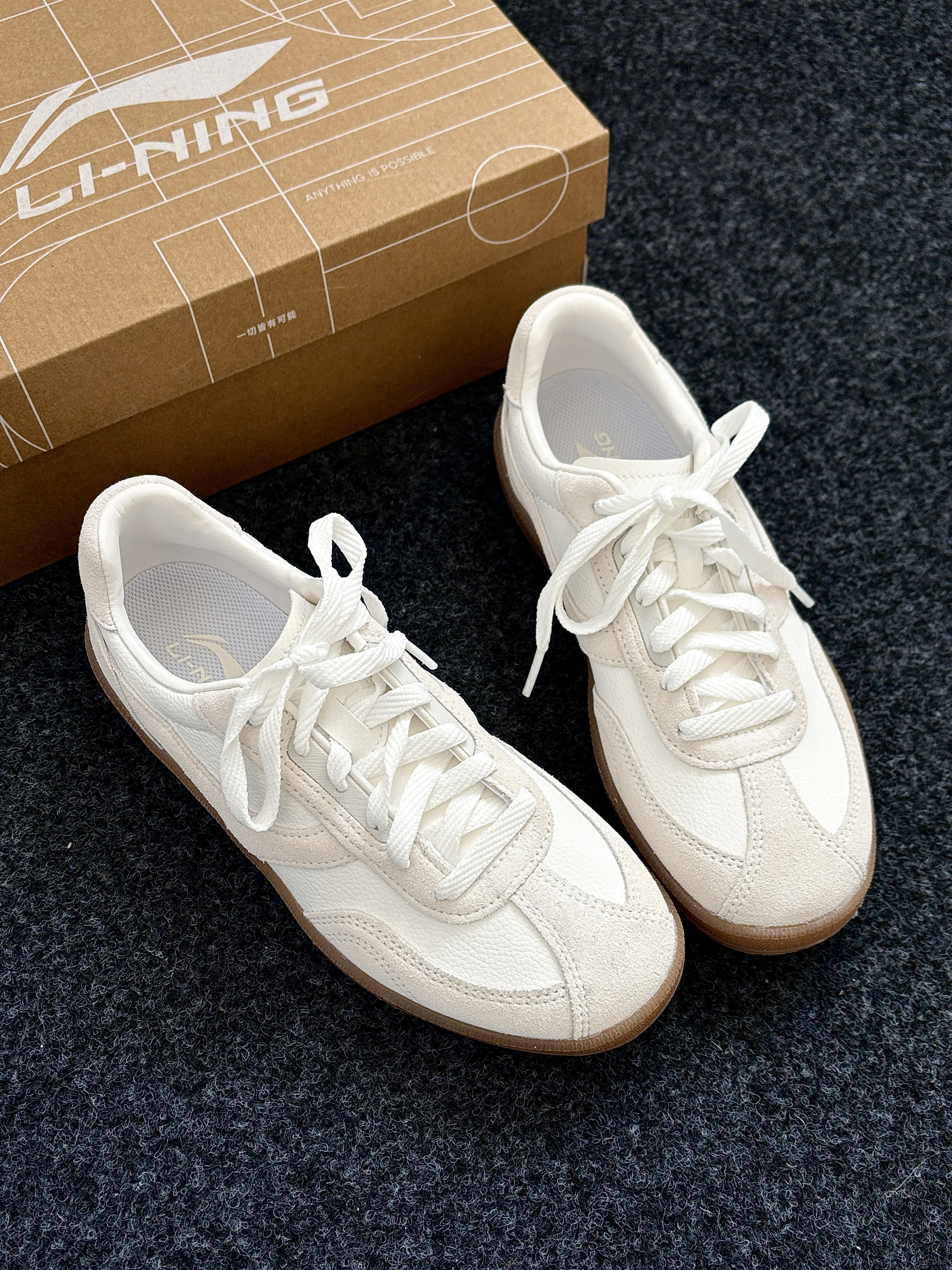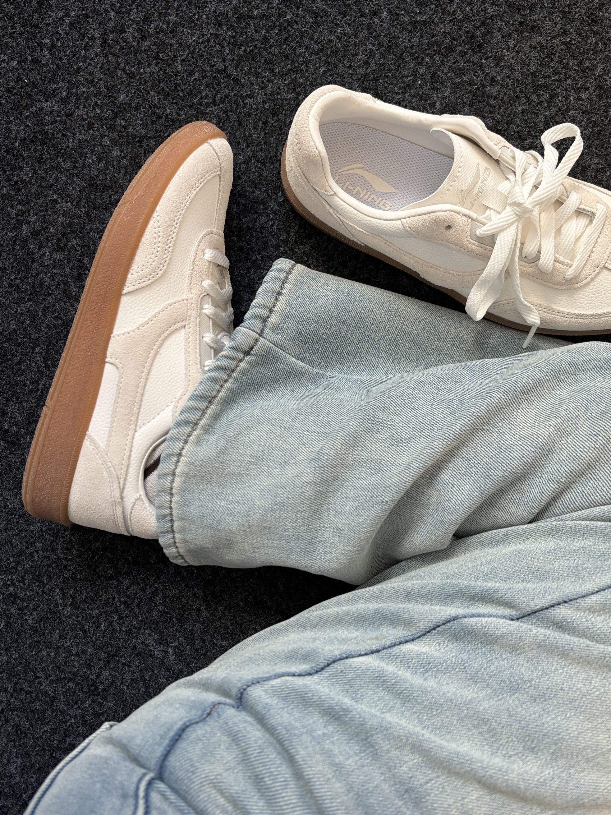 欢迎来看我刚收到的这双新鞋子ㆁᴗㆁ✌️ 李宁云川 2 薄底德训鞋一眼戳中我~ 这鞋型T头+薄底上脚显得脚好秀气🫶 生胶底+反毛皮拼接复古感满满 日常配牛仔裤、小裙子都好看 属于那种百搭鞋很有氛围感的款~ 它的小细节做得很好鞋舌那里是弧形的不硌脚 经典的刺绣 logo 也不错👍 脚感舒服踩上去软乎乎的逛街一整天都不闷脚不累脚~ 个人感觉这双不管是颜值还是质感都欧克👌 想买这种鞋型的可以试试这个不错...