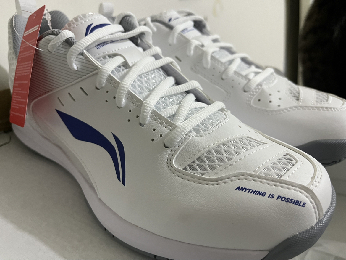谁懂啊!刚拆箱就被这双李宁的颜值狠狠拿捏住🤌 经典白蓝配色干净又清爽,完全就是运动少年感的代名词! ✨ 上脚体验 • 网面+合成革的鞋面透气不闷脚,跑跳都超轻盈 • 鞋型包裹感很足,缓震也够软,打球、通勤都能打 • 鞋头“ANYTHING IS POSSIBLE”的标语,运动氛围感直接拉满