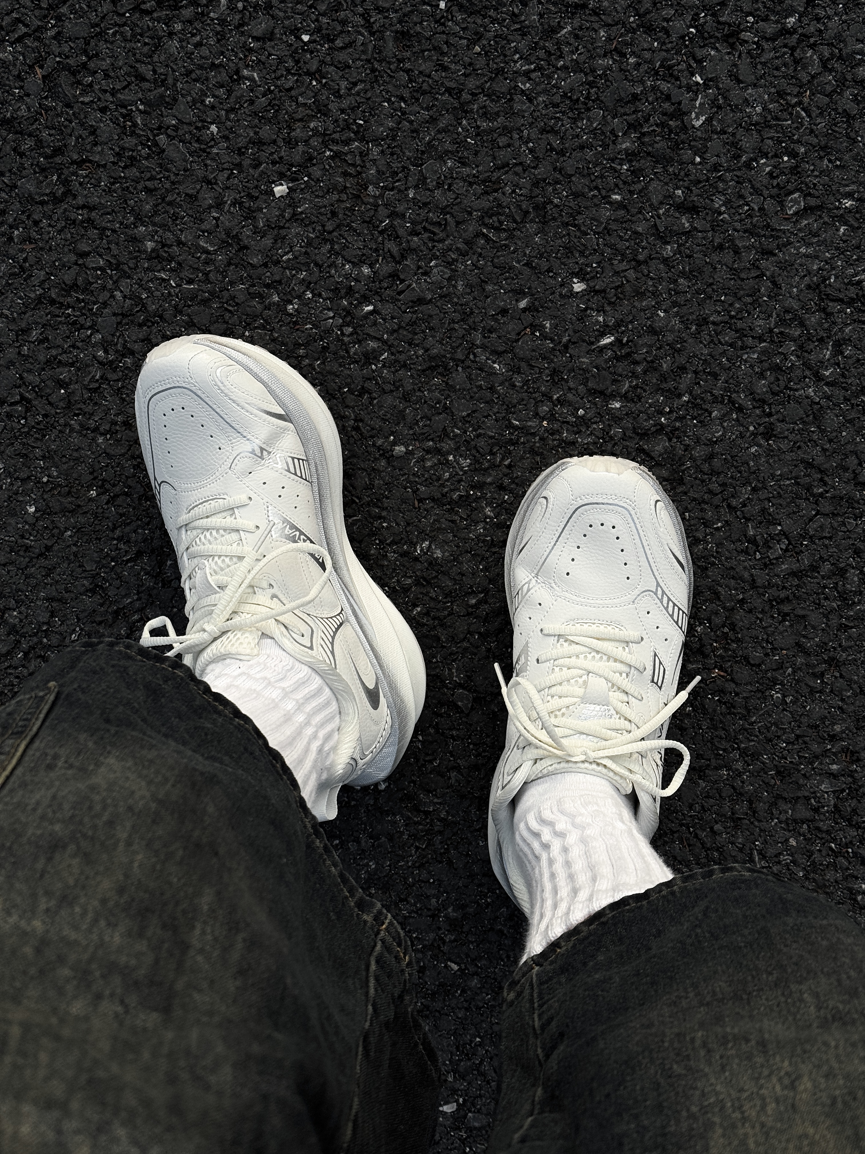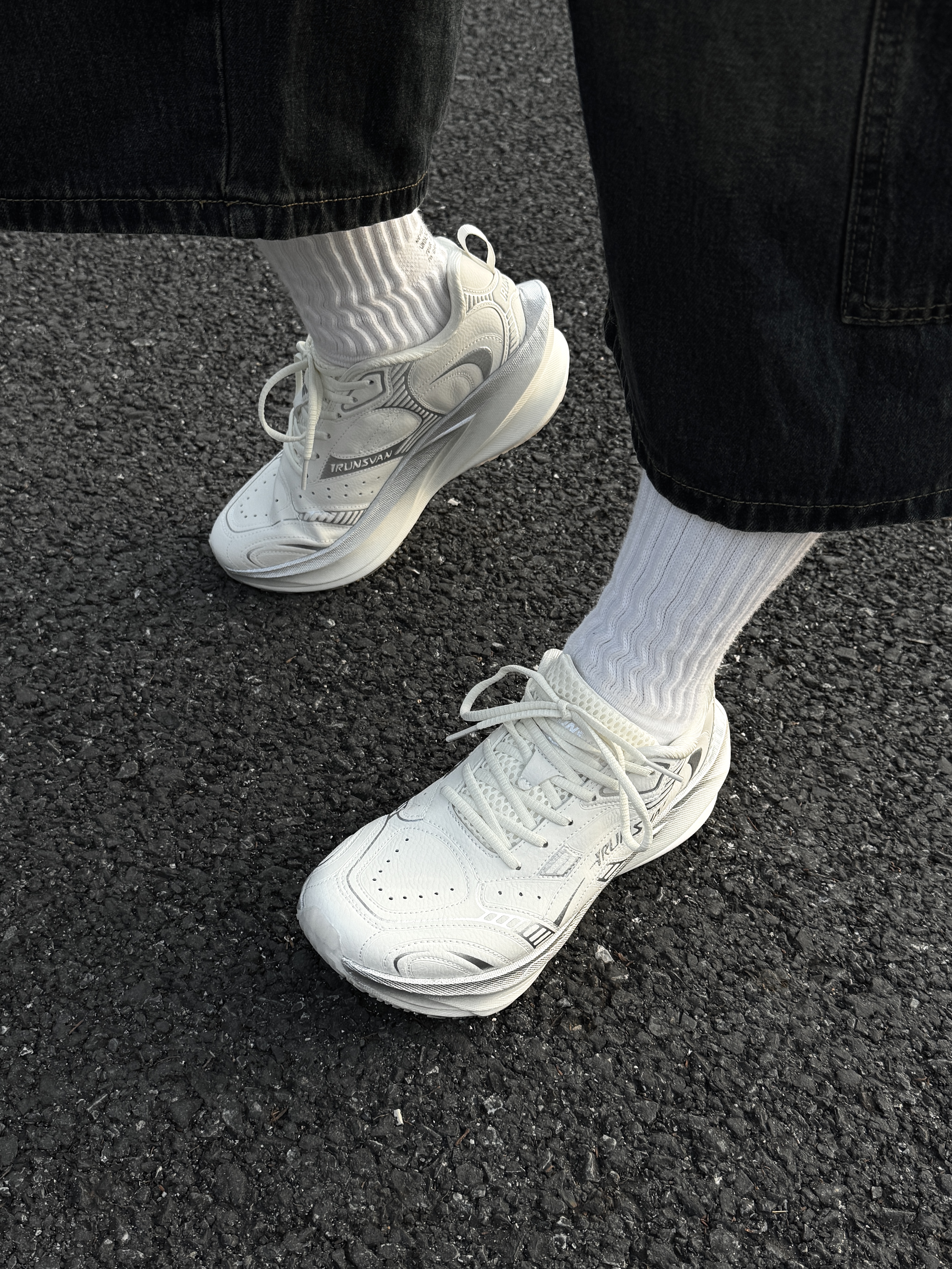 ~ 给大家分享一双 #艾跑者IRUNSVAN 影翼3.0跑步鞋 纯白的鞋身➕银色的刺绣点缀 整双鞋的颜值真的有点卷麻了 而且它是做了三防超纤鞋面 非常耐穿👋🏻 上脚🦶🏻有点点增高效果 脚感特别软弹 习惯那种平底碳板的这双鞋需要适应一下 秋冬天训练跑步🏃🏻♂️真的很不错的一双 作为日常搭配来穿的话也蛮不错的 会让整体的穿搭显得干净清爽 像我日常常穿的牛仔裤和休闲卫裤都挺合适的 尺码小建议: 徐...