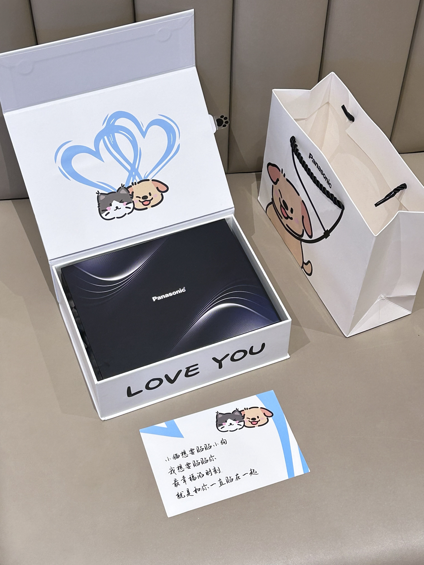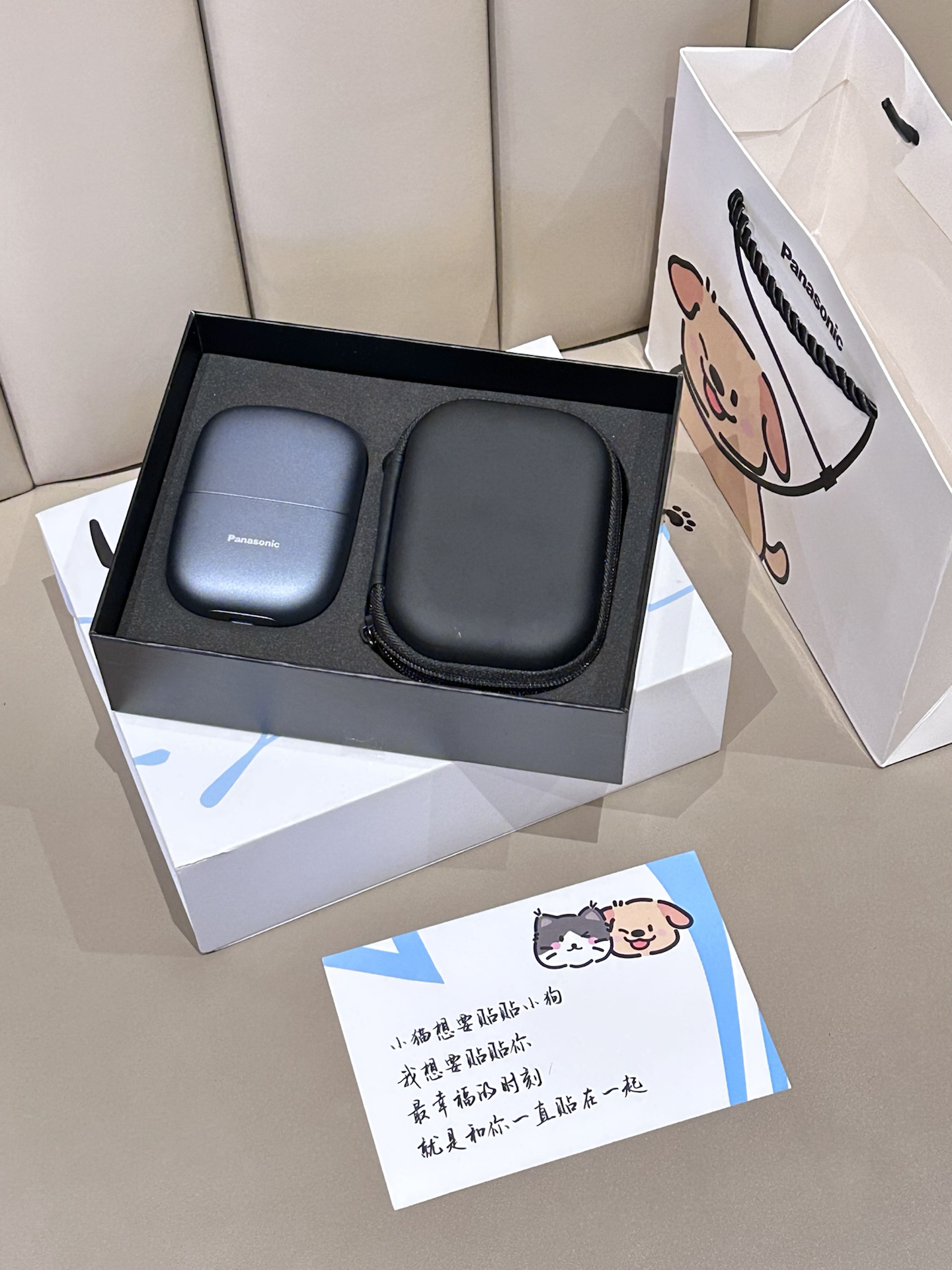是我精挑细选的实用礼物呀 就是松下这款小方盒CM21电动剃须刀礼盒 包装可爱的🐱🐶装饰 我觉得好有仪式感 剃须刀设计也蛮大气的 滑动可以控制开关 用着也很方便 而且拆卸清洗也好方便 搭配了收纳盒刚好适合带出门 我觉得情人节新年送男生hin有仪式感耶! #松下剃须刀 #情人节礼物 #剃须刀送男生 #好会买生活家 #礼物节