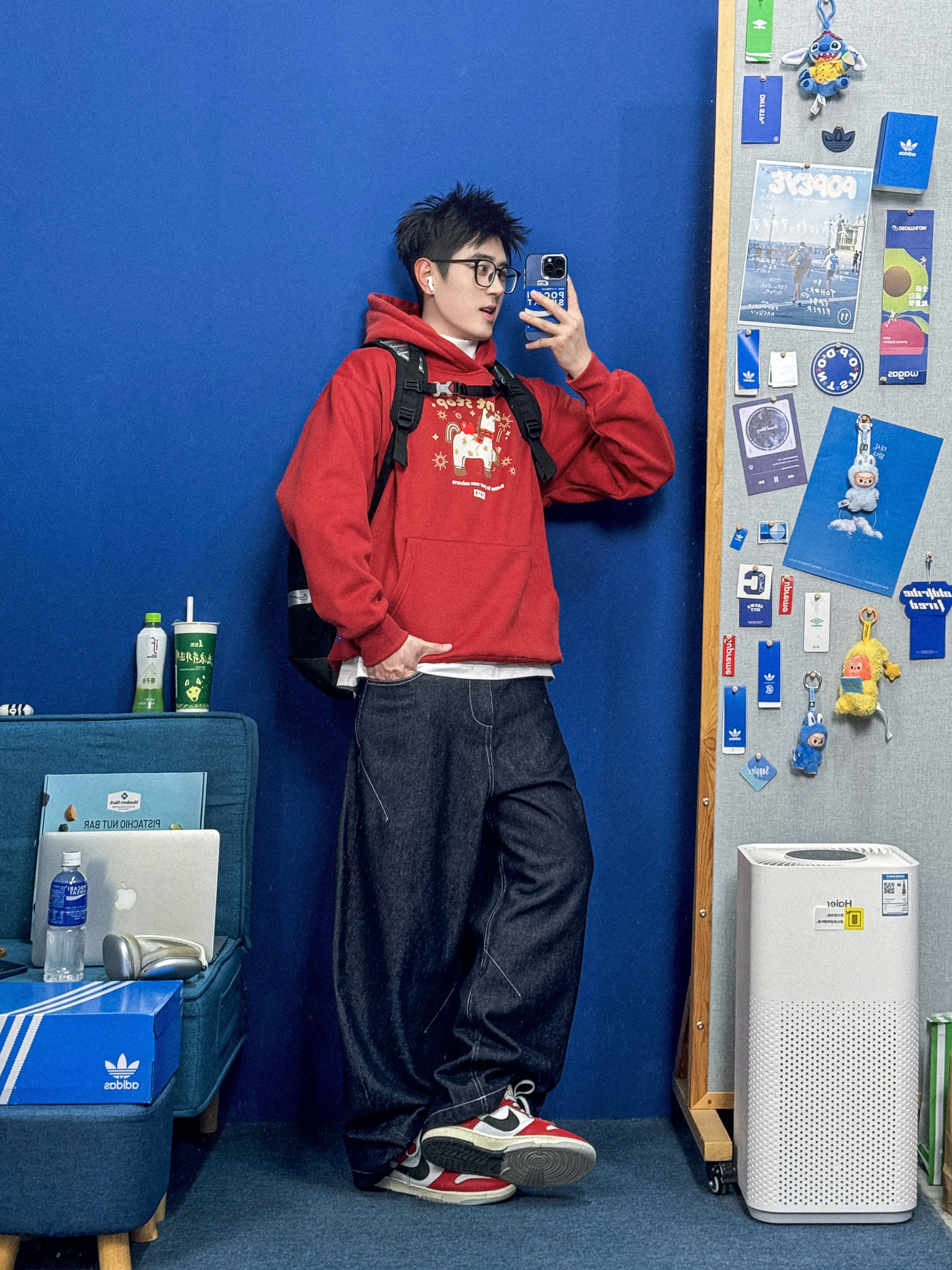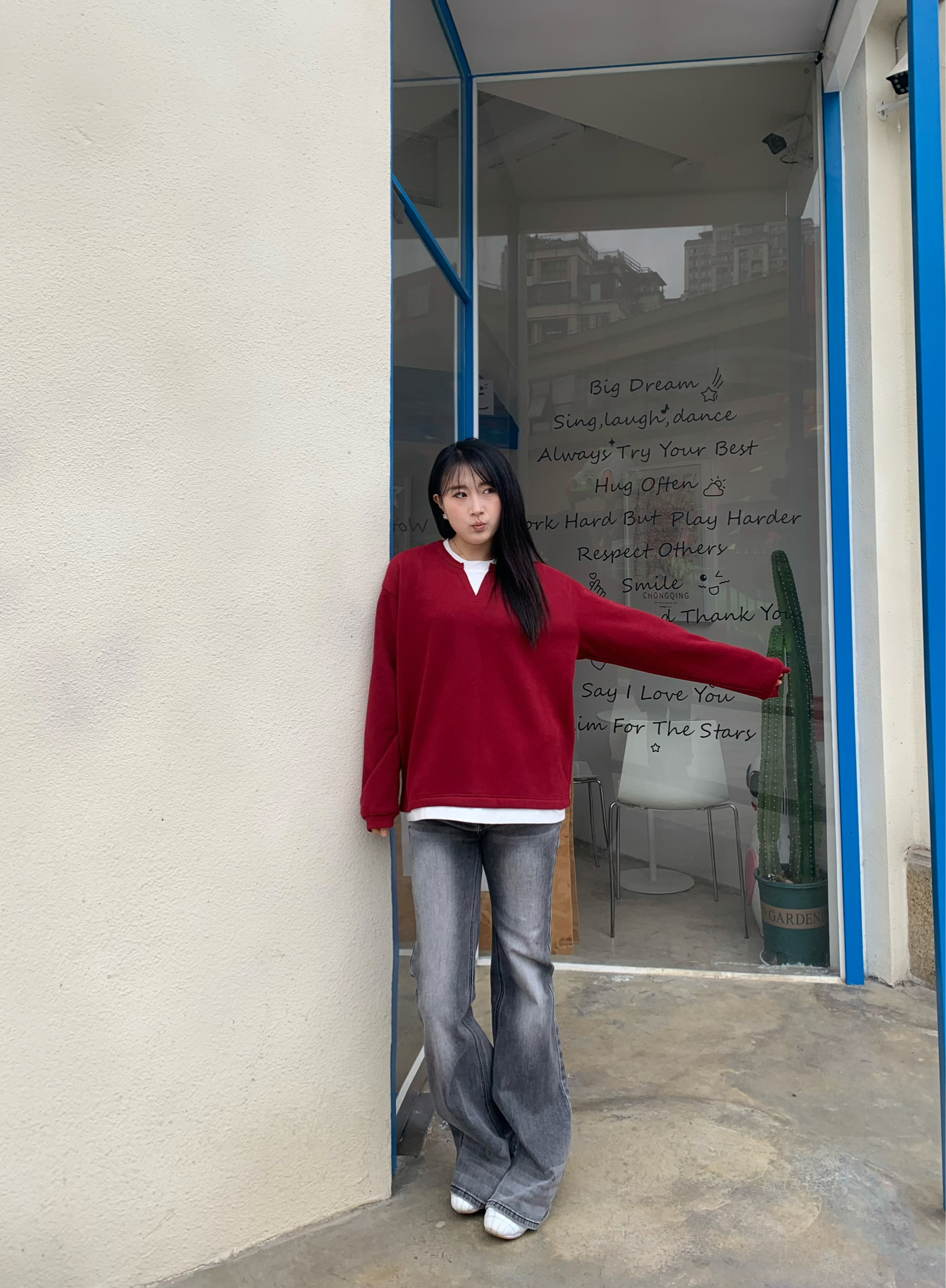 看得出嘟嘟真的很爱这件羊羔毛外套,出镜率非常之高🤣 这件正红色V领毛衣更是整套穿搭的点睛之笔,鲜亮的色调自带节日氛围感,刚好契合马年限定的喜庆主题,衬得人肤白气色佳。整体造型既有节日的热闹感,又不失松弛随性的时髦范儿🥰