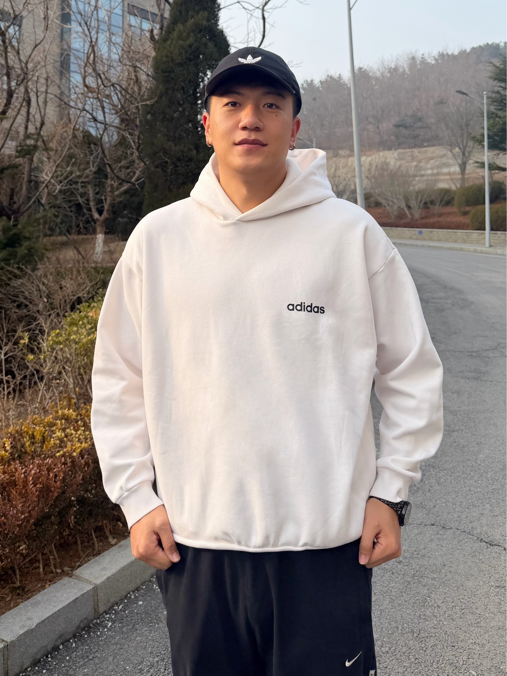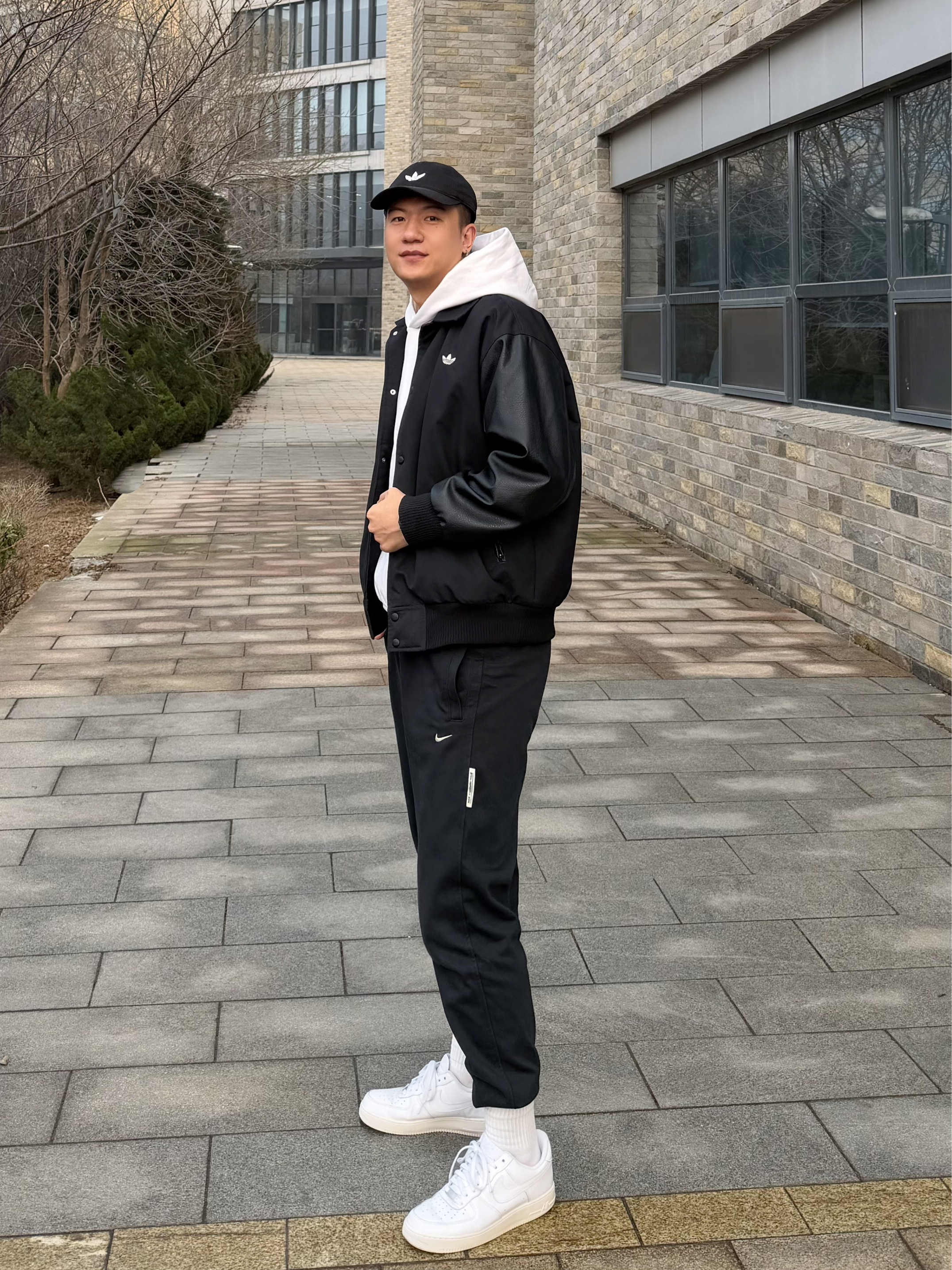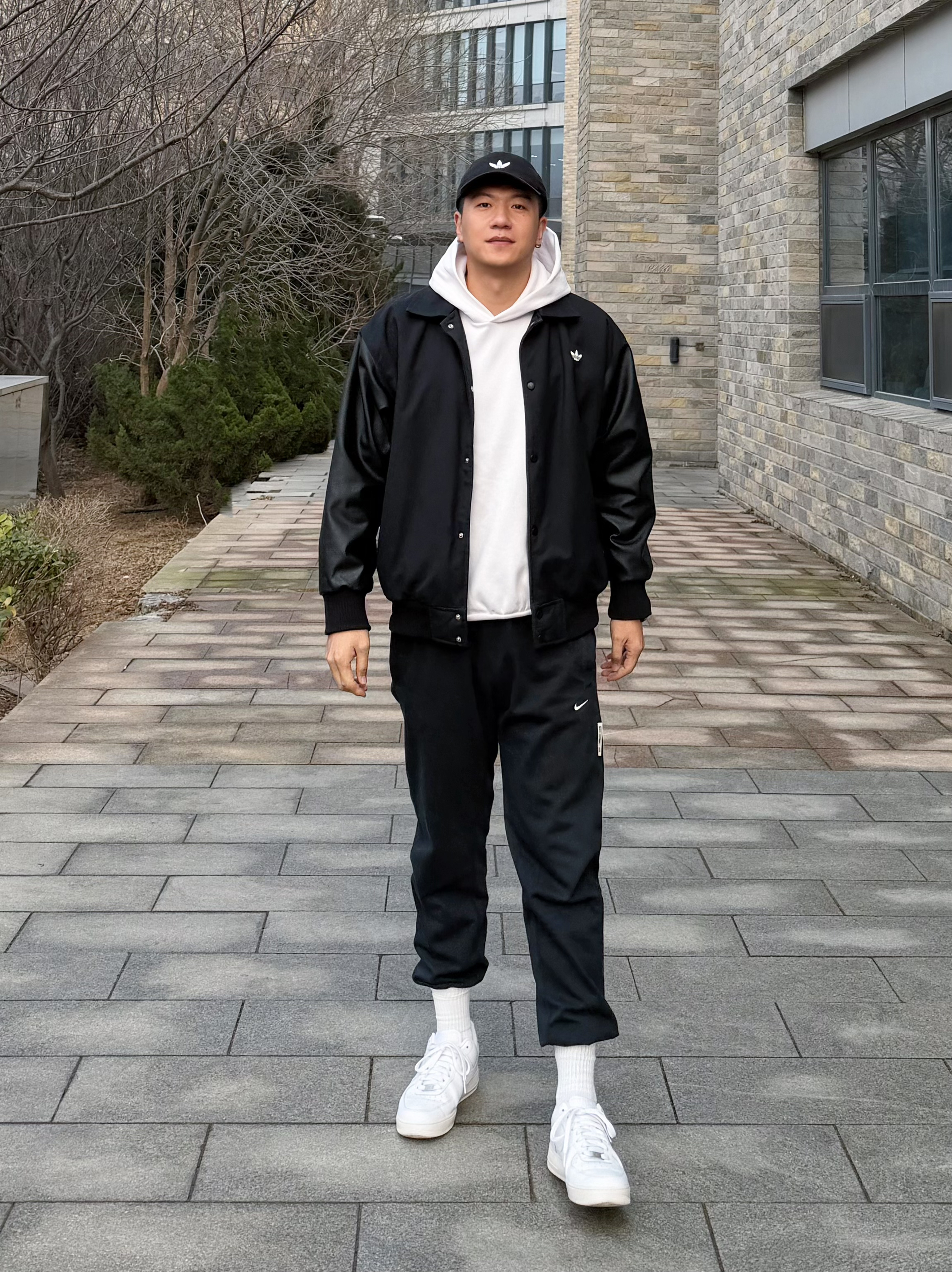 黑白配色,怎么都不会穿腻的配色, 最近喜欢穿这件阿迪basketball系列卫衣 白色连帽衫+黑色logo,干净又大气 个人感觉卫衣属于宽松版型, 外面叠穿三叶草黑色棒球服 下身配黑色卫裤 踩一双白空军,戴顶黑帽子 整身黑白主调,层次感拉满 简简单单,反而显得很高级, 马年这么穿,清爽又有型👌 👦🏻:188 | 85 卫衣:L 外套:XL 大家觉得黑白叠穿搭配点配饰怎么样~
