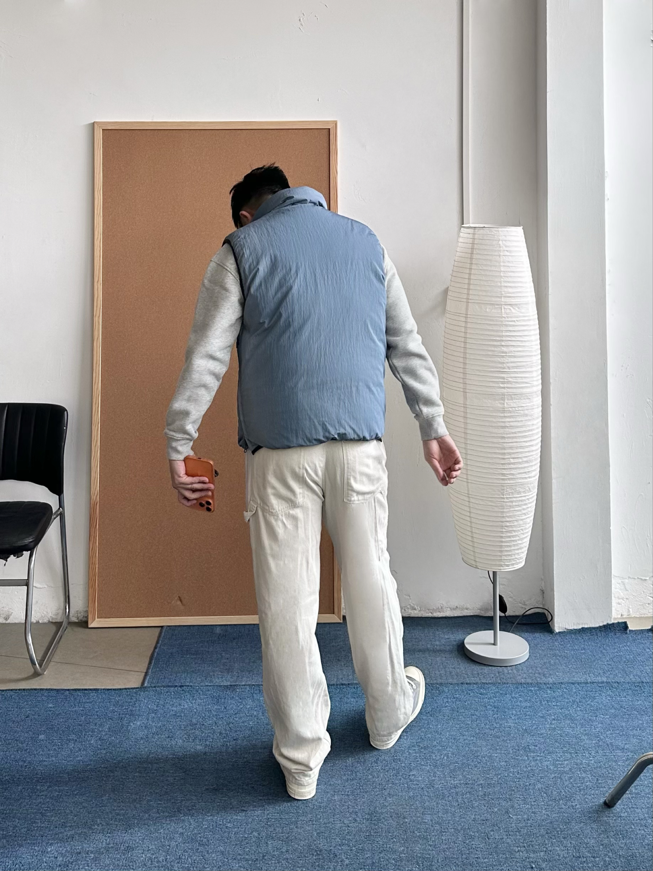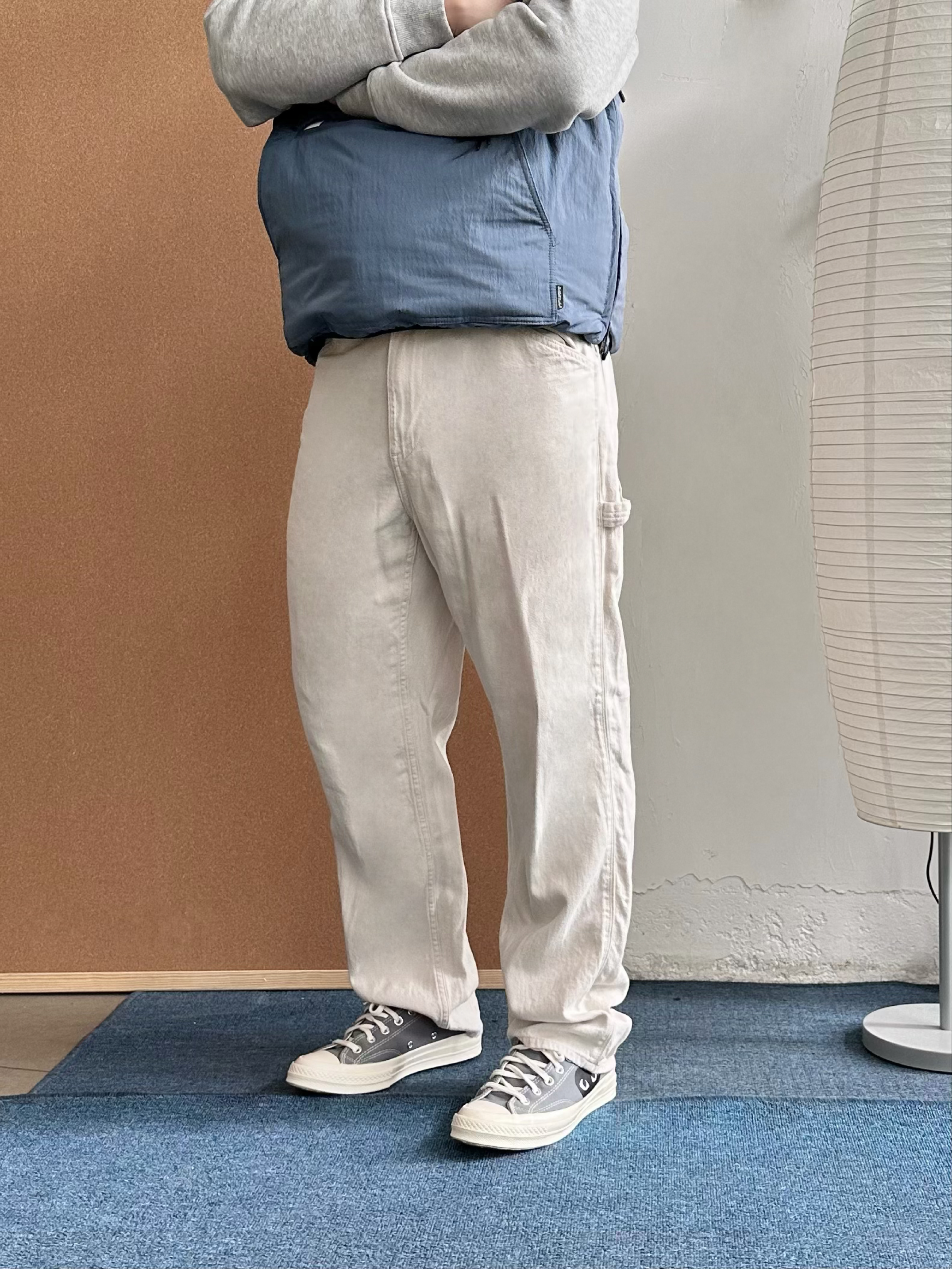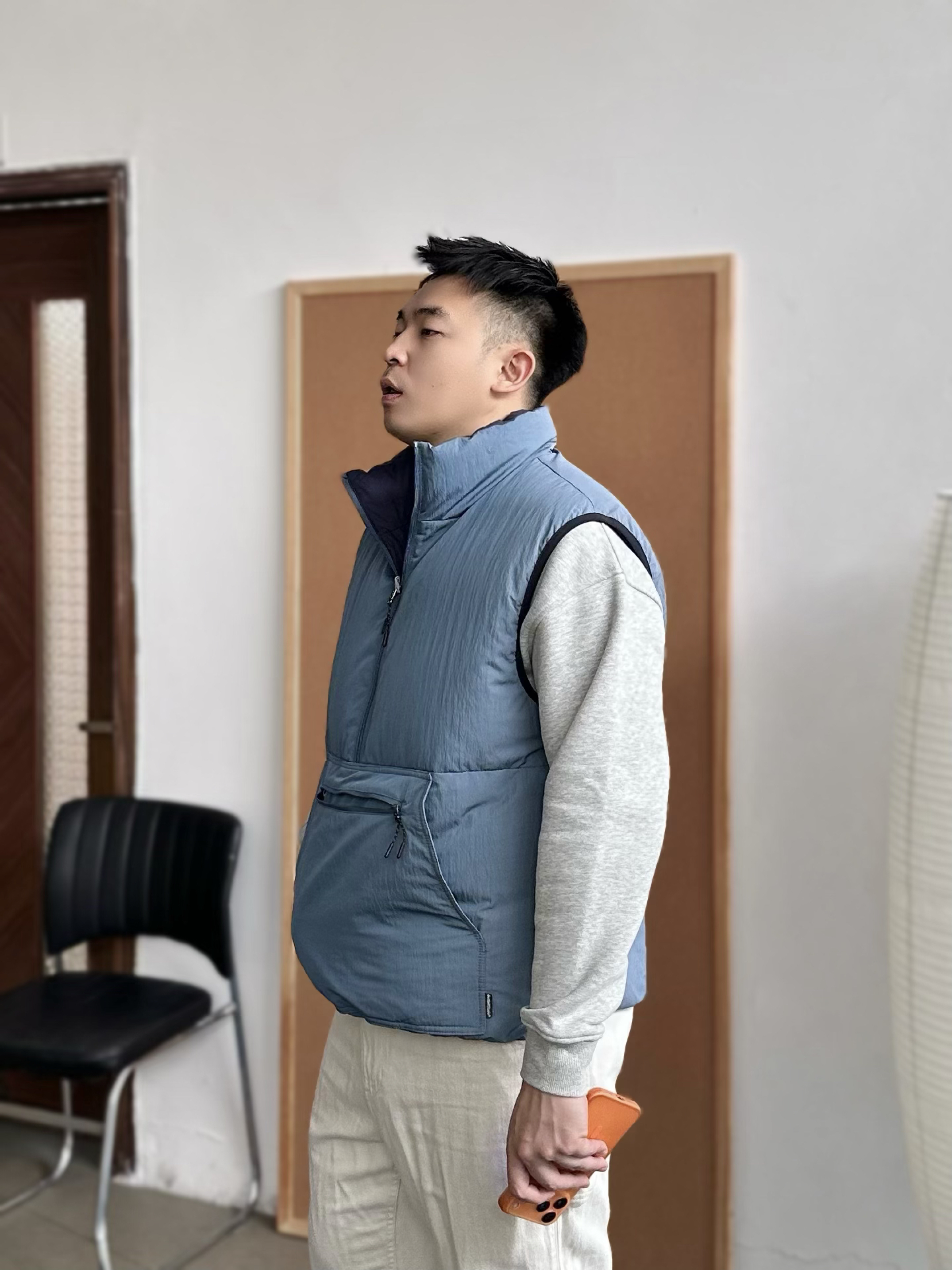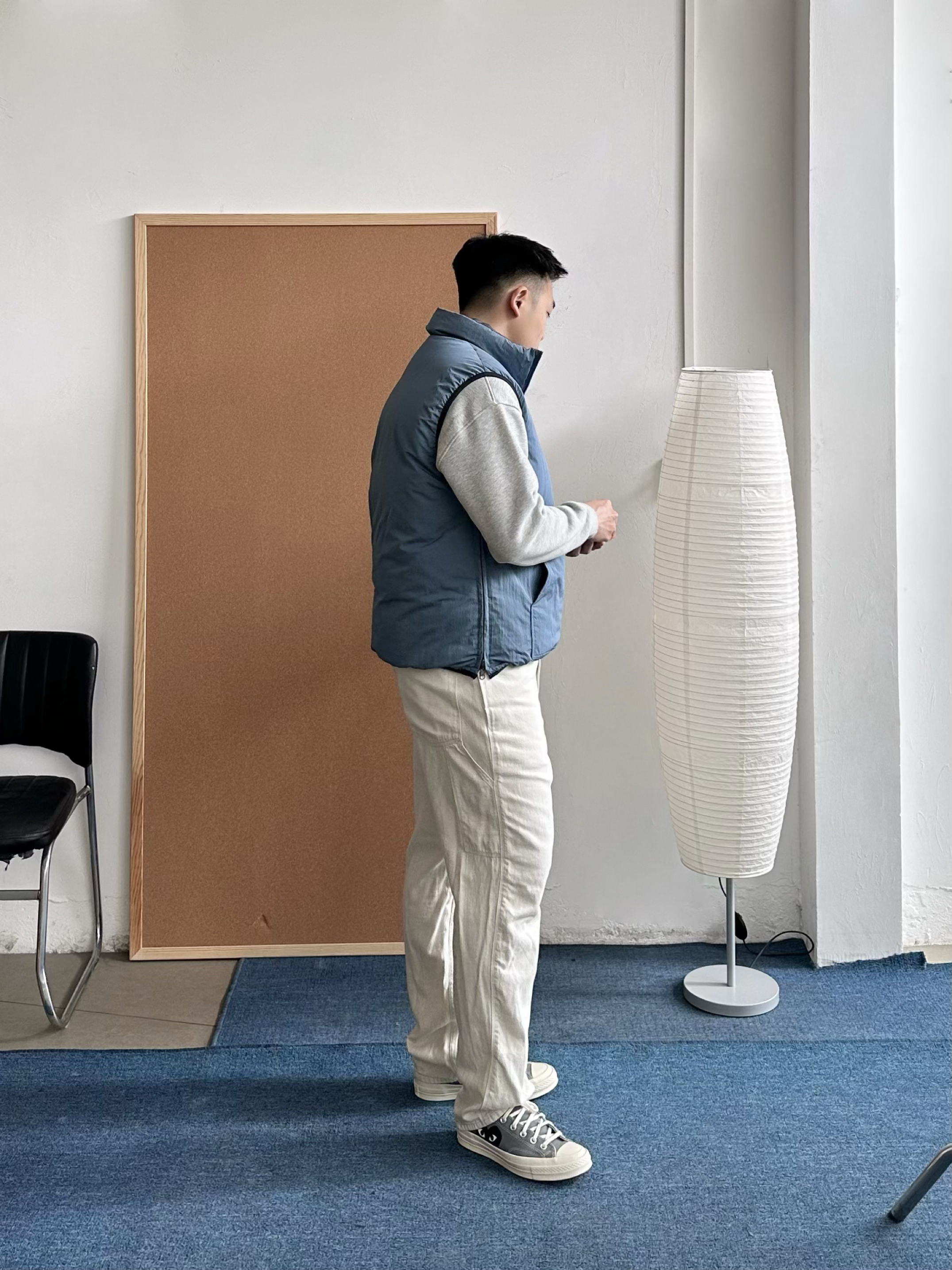 👕 内搭:浅灰色卫衣终于开窍了😅 以前总觉得单穿有点普通,但当打底反而很加分,干净耐看。 🦺 外搭:浅蓝色机能棉服马甲叠穿层次马上出来,美式休闲感更明显,保暖但不厚重。 👖 下装:浅白色直筒长裤把整体提亮。 👟 鞋子:浅灰帆布鞋收尾,经典联名款,百搭轻松。
