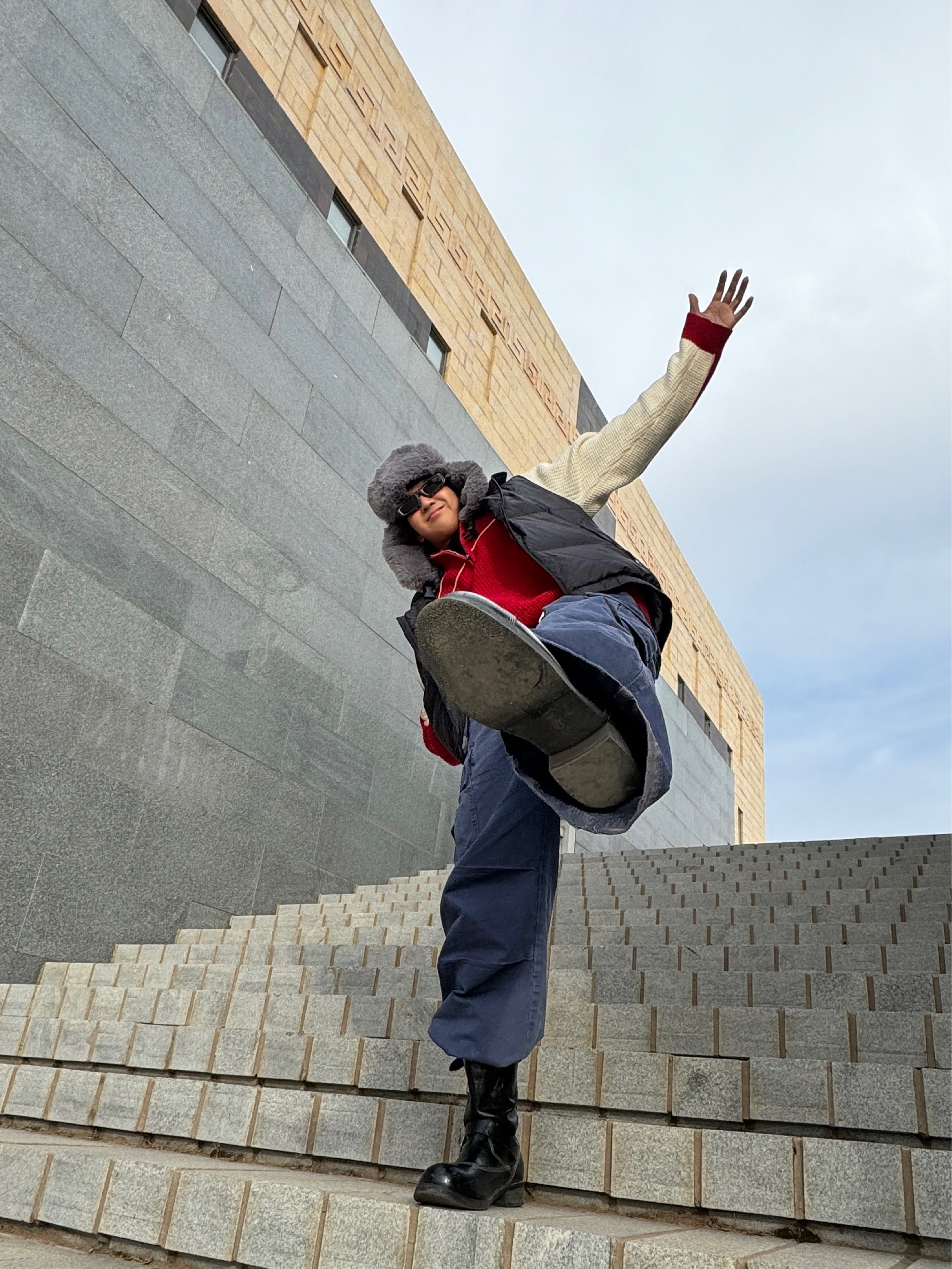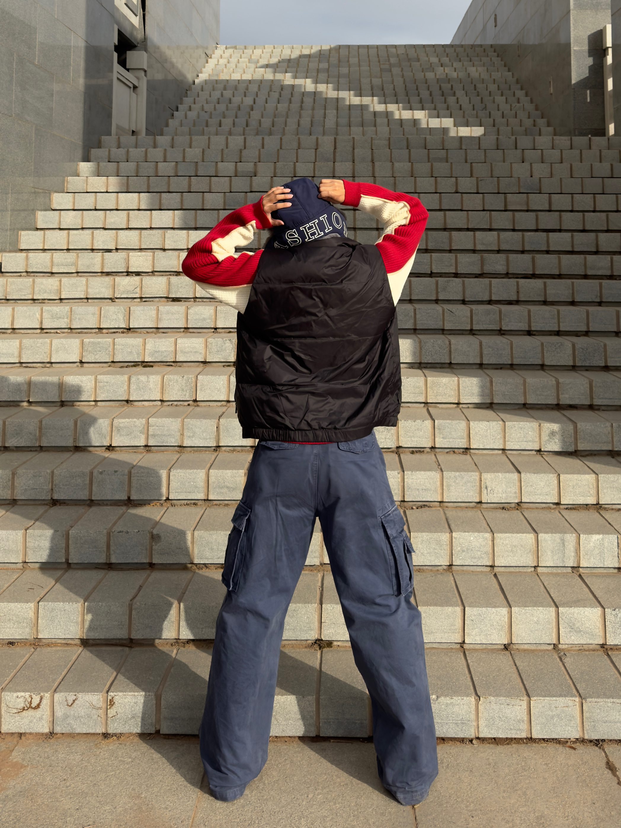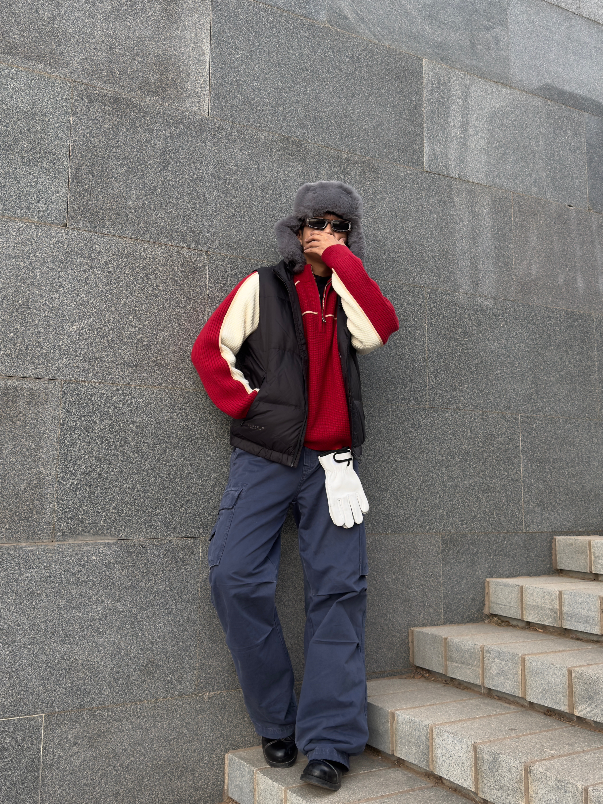 家人们!这套红白蓝配色真的太绝了! 经典的红白拼色半拉链毛衣,华夫格的肌理感超有质感,半拉链设计不仅增加了穿搭层次,还能根据温度调节领口,实用性拉满! 下身搭配一条藏蓝色工装裤,大口袋设计不仅能装,还自带复古街头感,裤型宽松又显瘦,对各种腿型都很友好。 最后再配上一顶雷锋帽,保暖又复古,整套穿搭既有少年感又不失硬朗气质,走在街上回头率直接爆表!