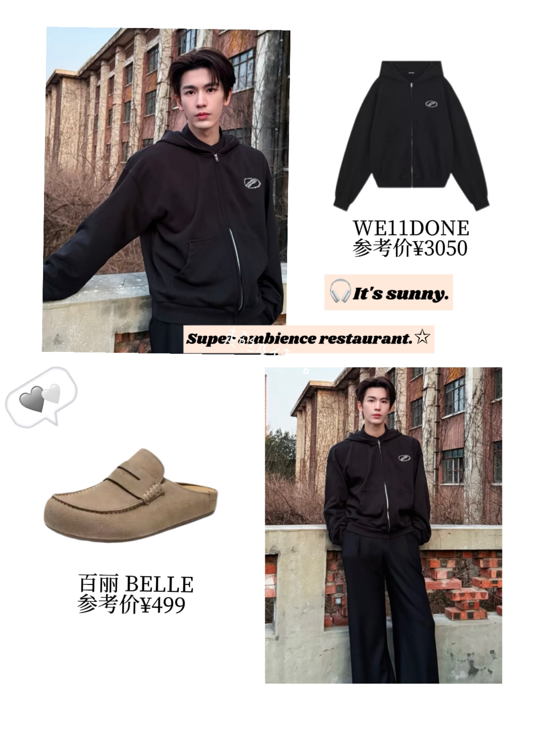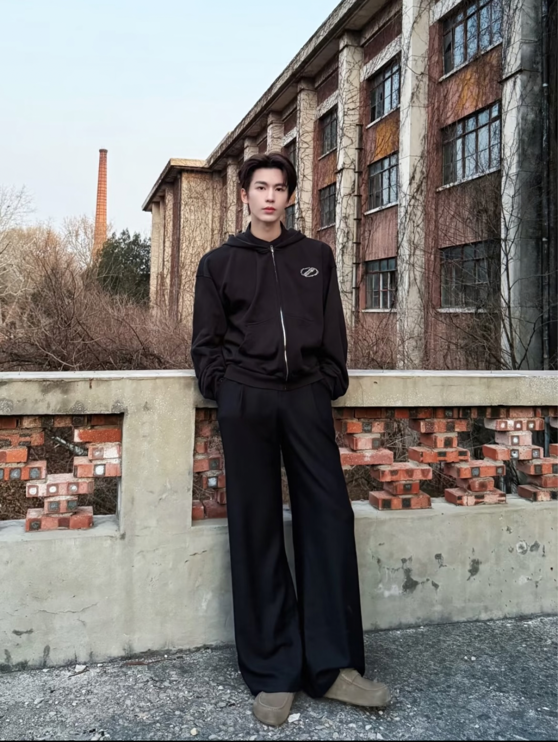 👇 【张凌赫「暗黑系慵懒风」穿搭拆解】 1️⃣ 王炸单品:黑色连帽拉链卫衣 🖤 质感暴击:不是普通的纯黑!带点「哑光磨毛」质感,灯光下有细腻的肌理感,比亮面黑更显高级,黄皮男生穿也能穿出「冷白皮」既视感~ 版型小心机:oversize微阔落肩款!肩线自然垂落不压个子,衣长到臀部位置,遮住胯宽还显腿长,袖口做了「堆堆袖」设计,慵懒感直接拉满~ 细节加分:胸前「银色小标刺绣」!不是花里胡哨的大lo...