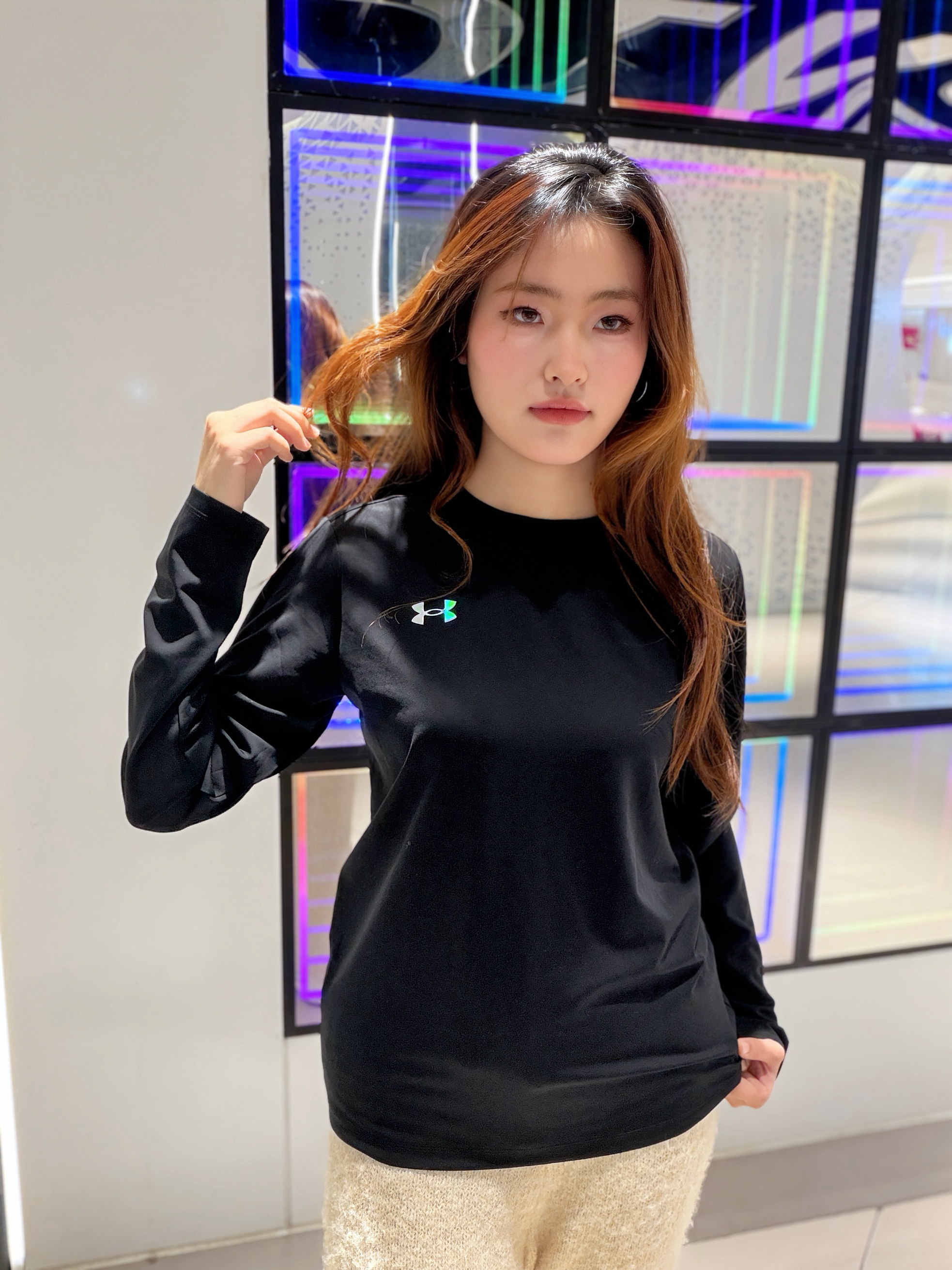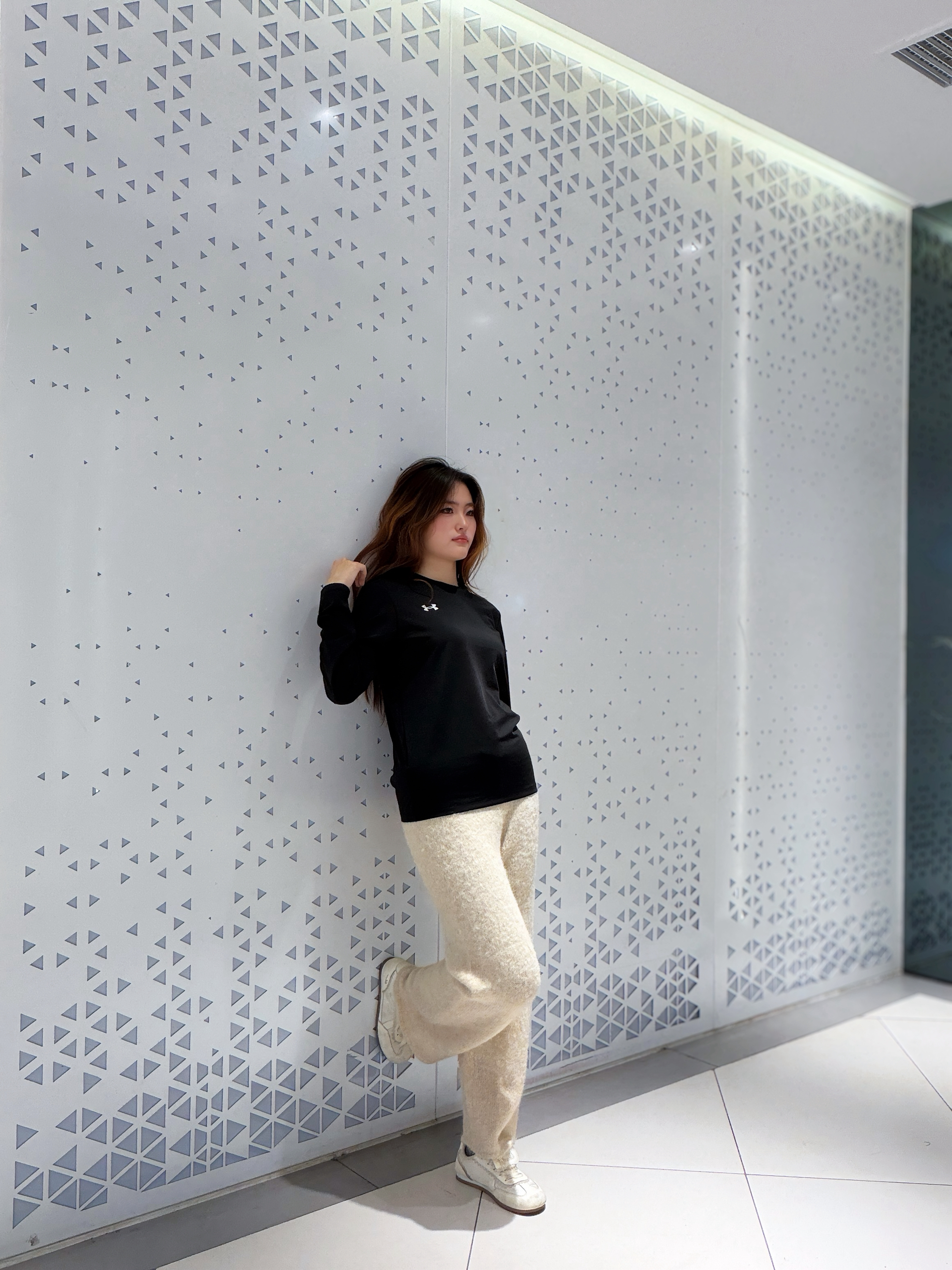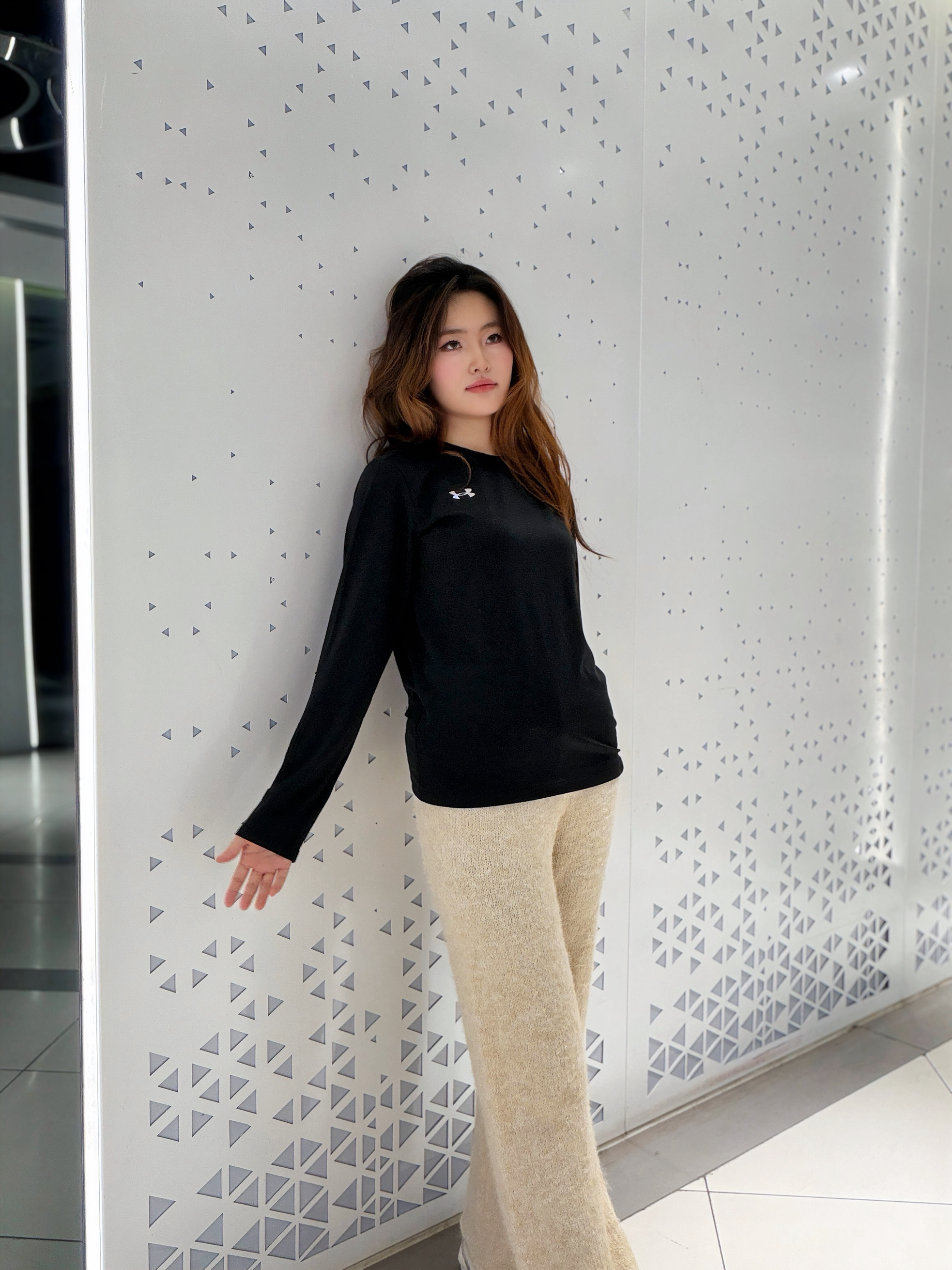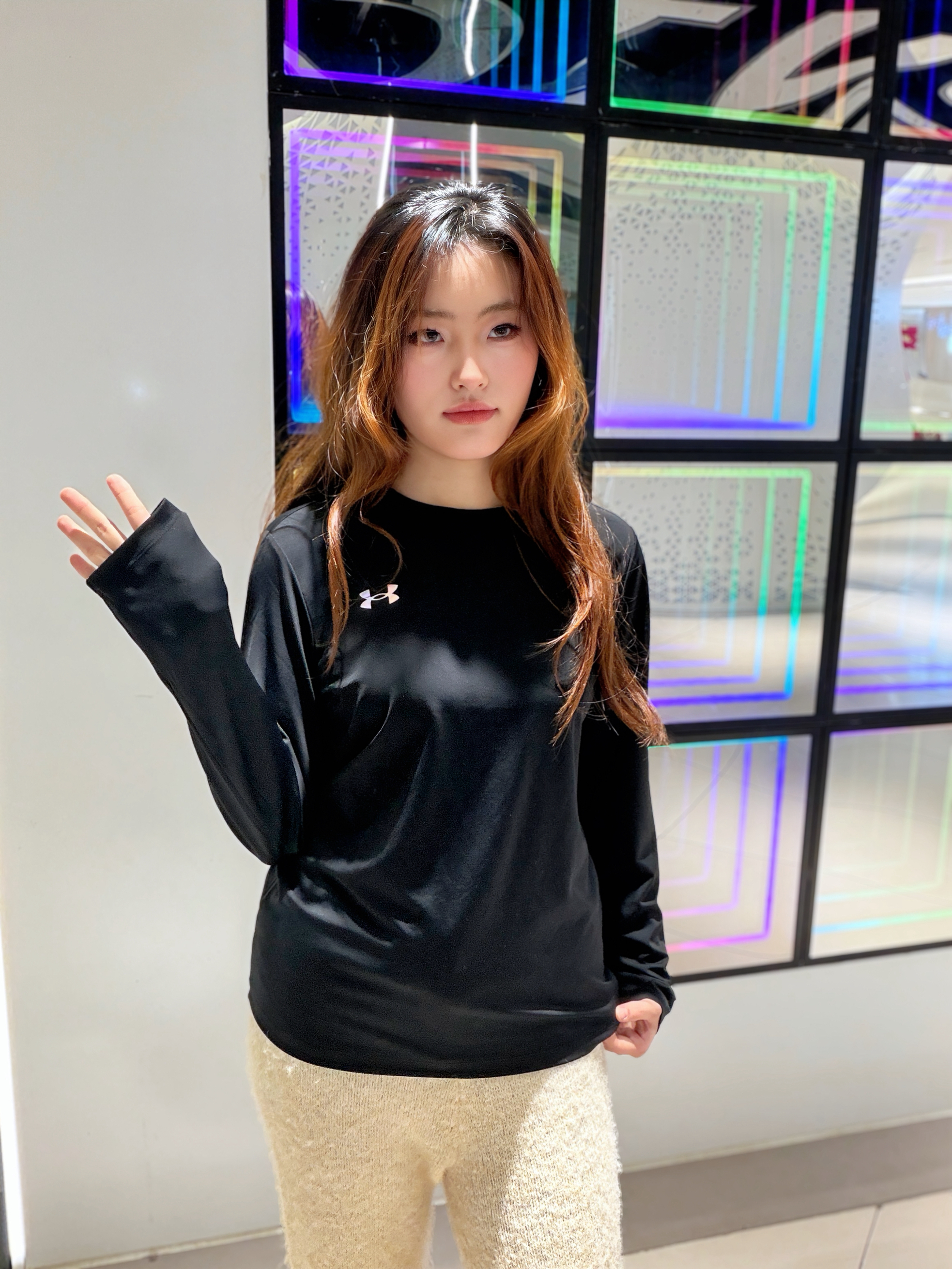 这件安德玛黑长袖也太百搭了🖤 Under Armour 面料滑溜溜的,贴身穿巨舒服, 拇指扣设计还能防风, 搭米白毛绒裤+小白鞋, 运动风里带点温柔感, 日常出街、健身都能穿, 显瘦又显气质✨