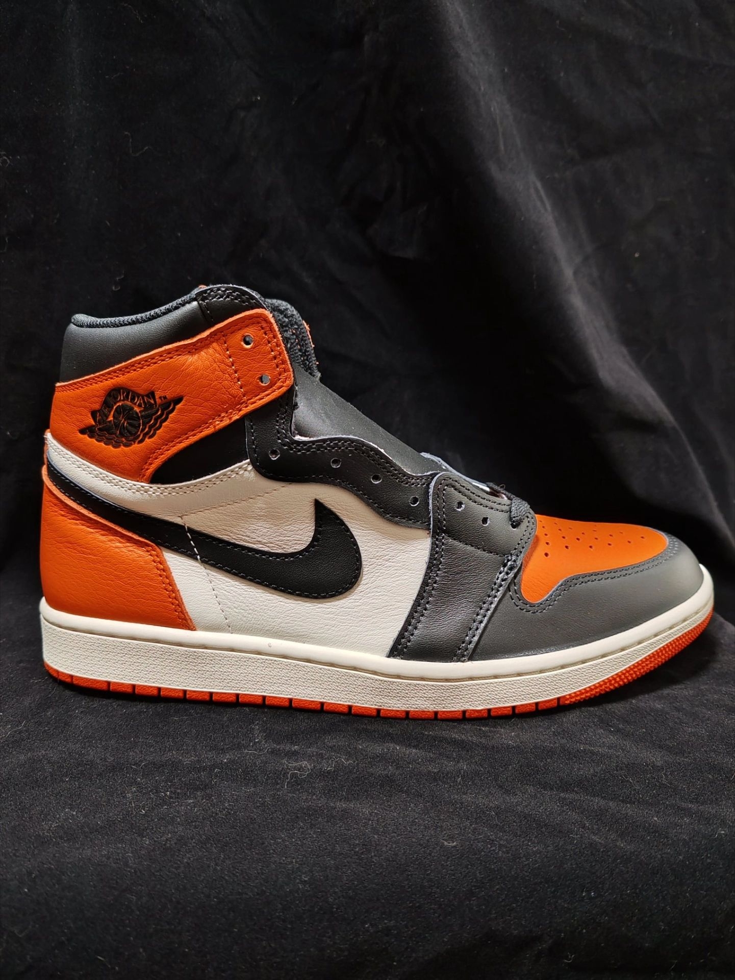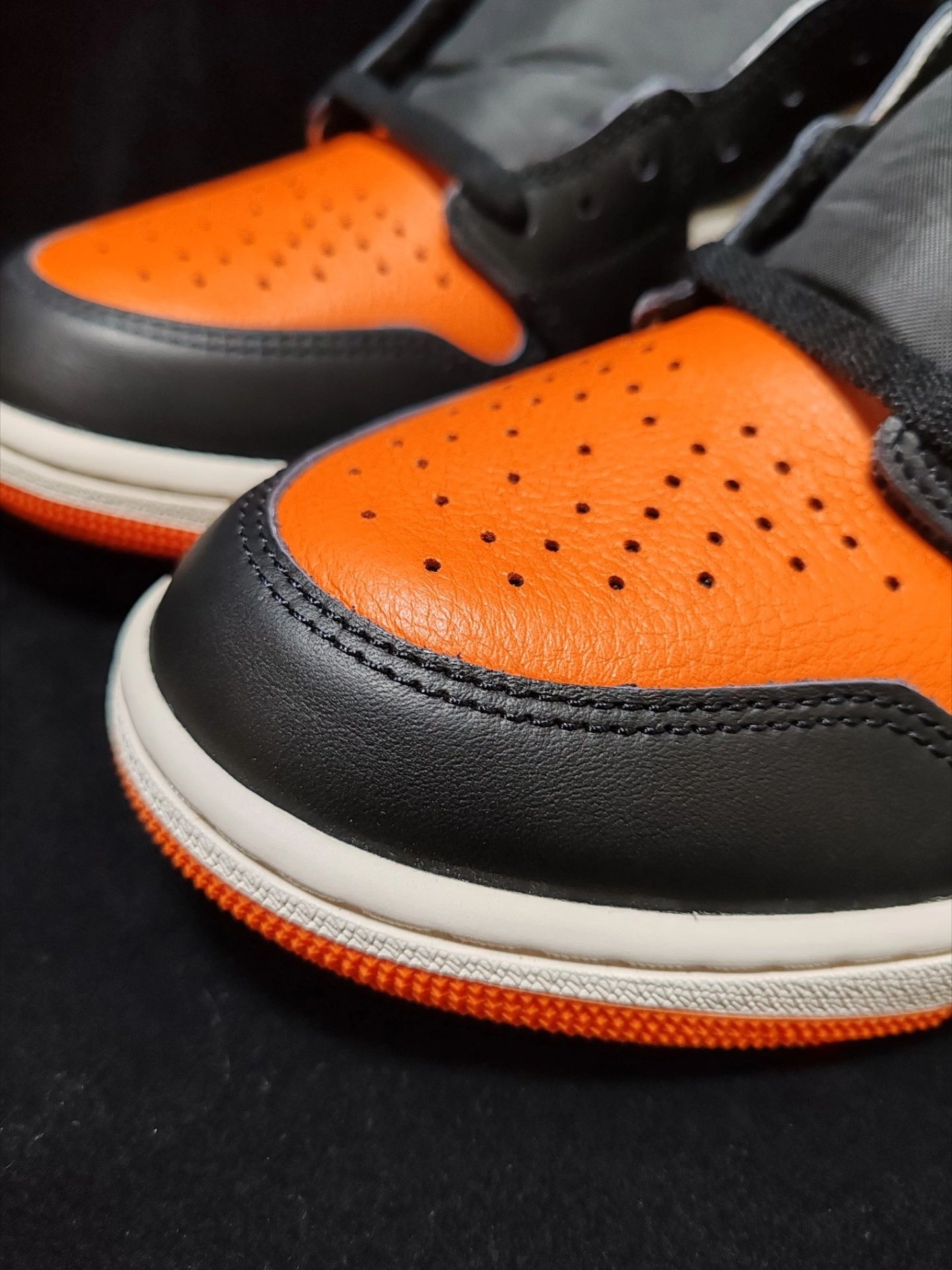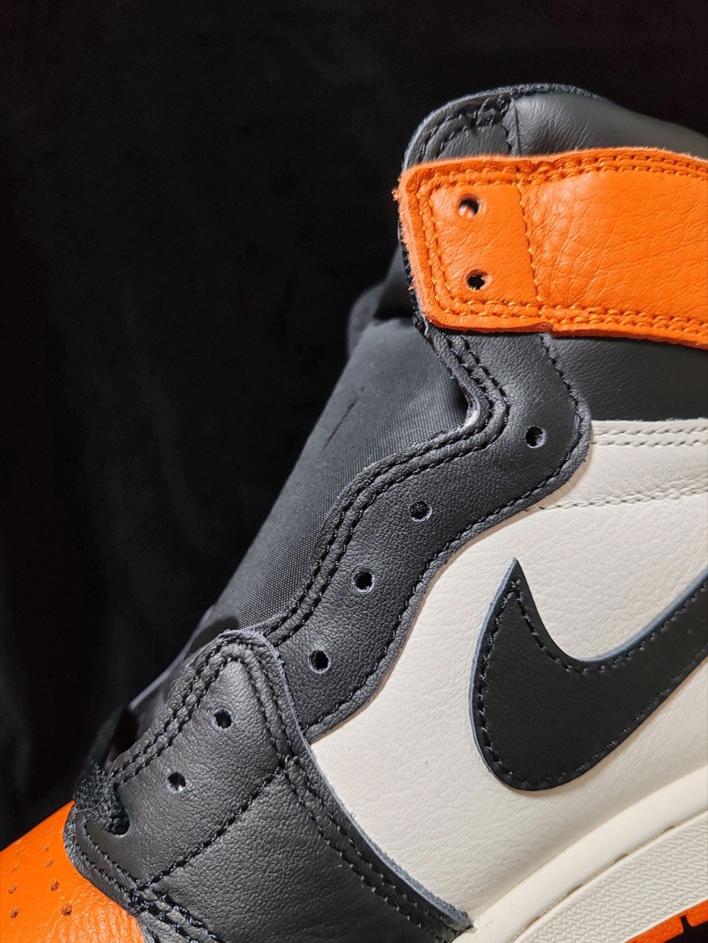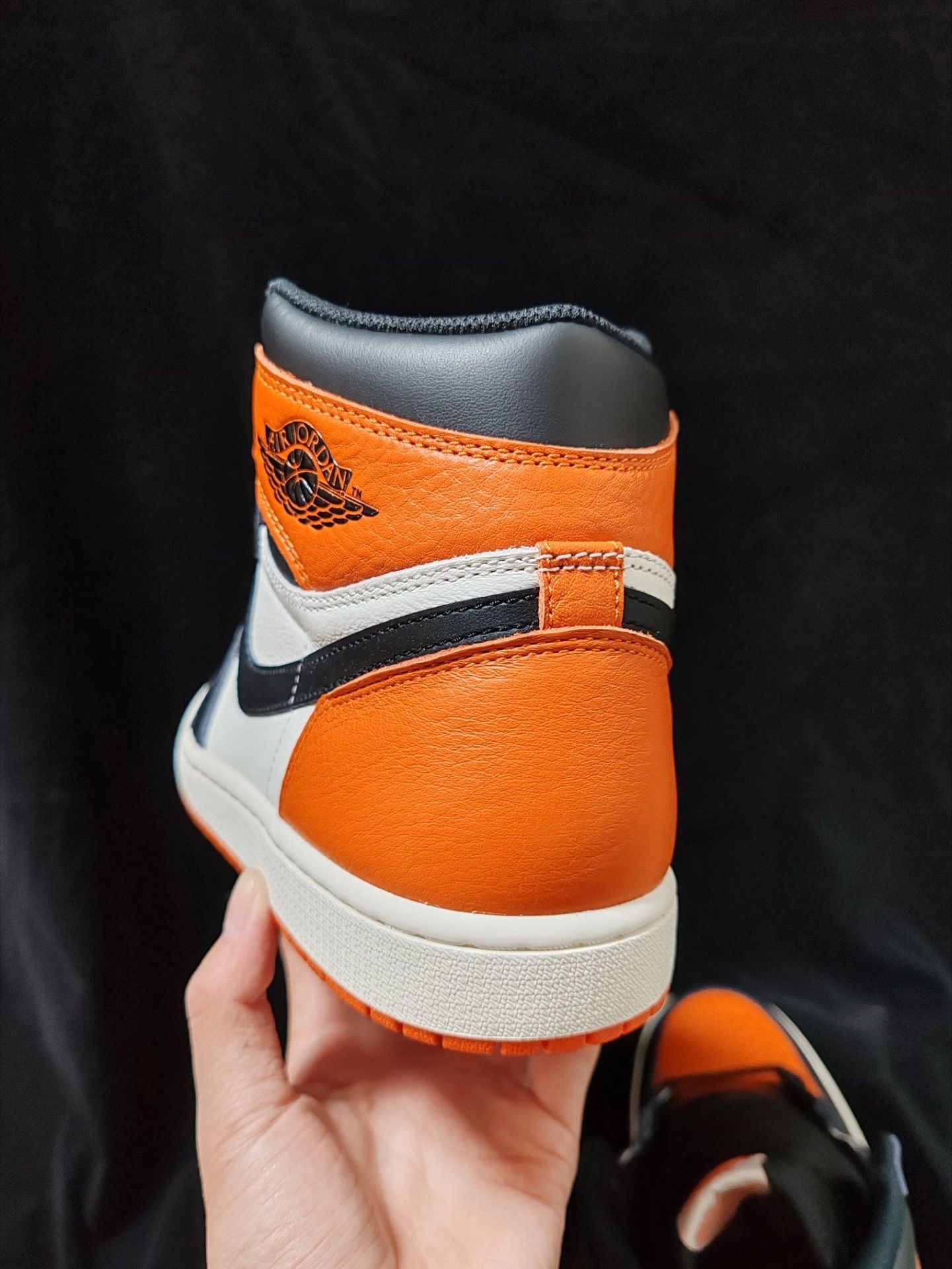 2025复刻的高帮“扣碎”,还原度和元年基本没差。鞋面全牛皮革,质感不错。脚感还是比较板鞋的,不过橙色鞋身和九孔高帮版型,不管是冬季运动,还是校园穿搭,都可以搭配。做工说整体的过去,基本没啥问题。 经典黑橙配色,依然是今年很推荐一双高帮AJ1。 #我的宿舍球鞋清单