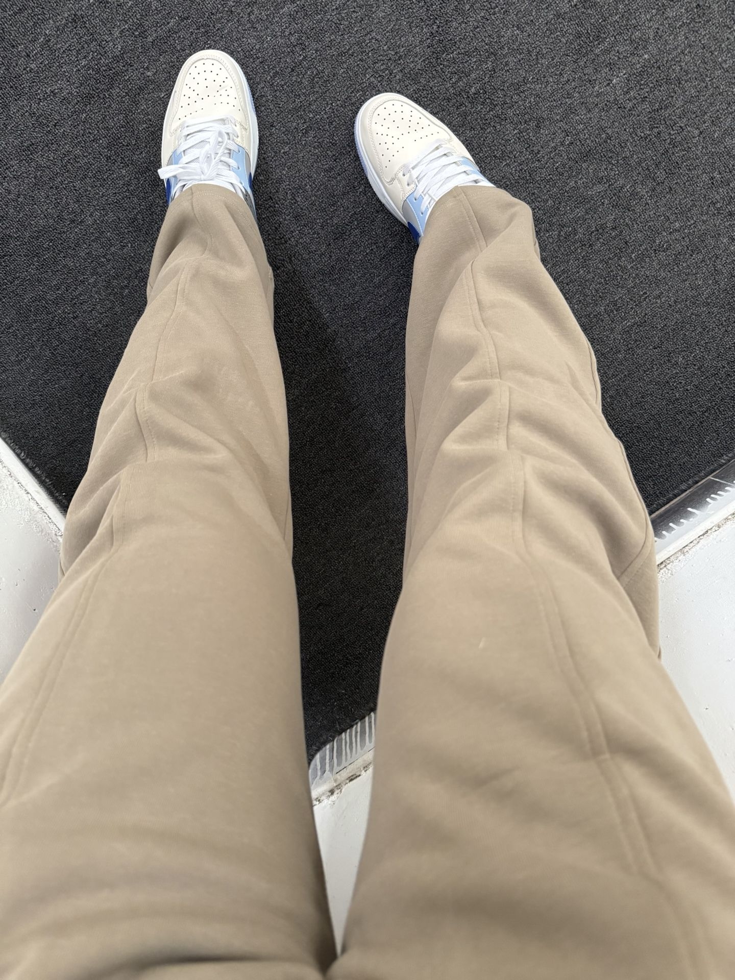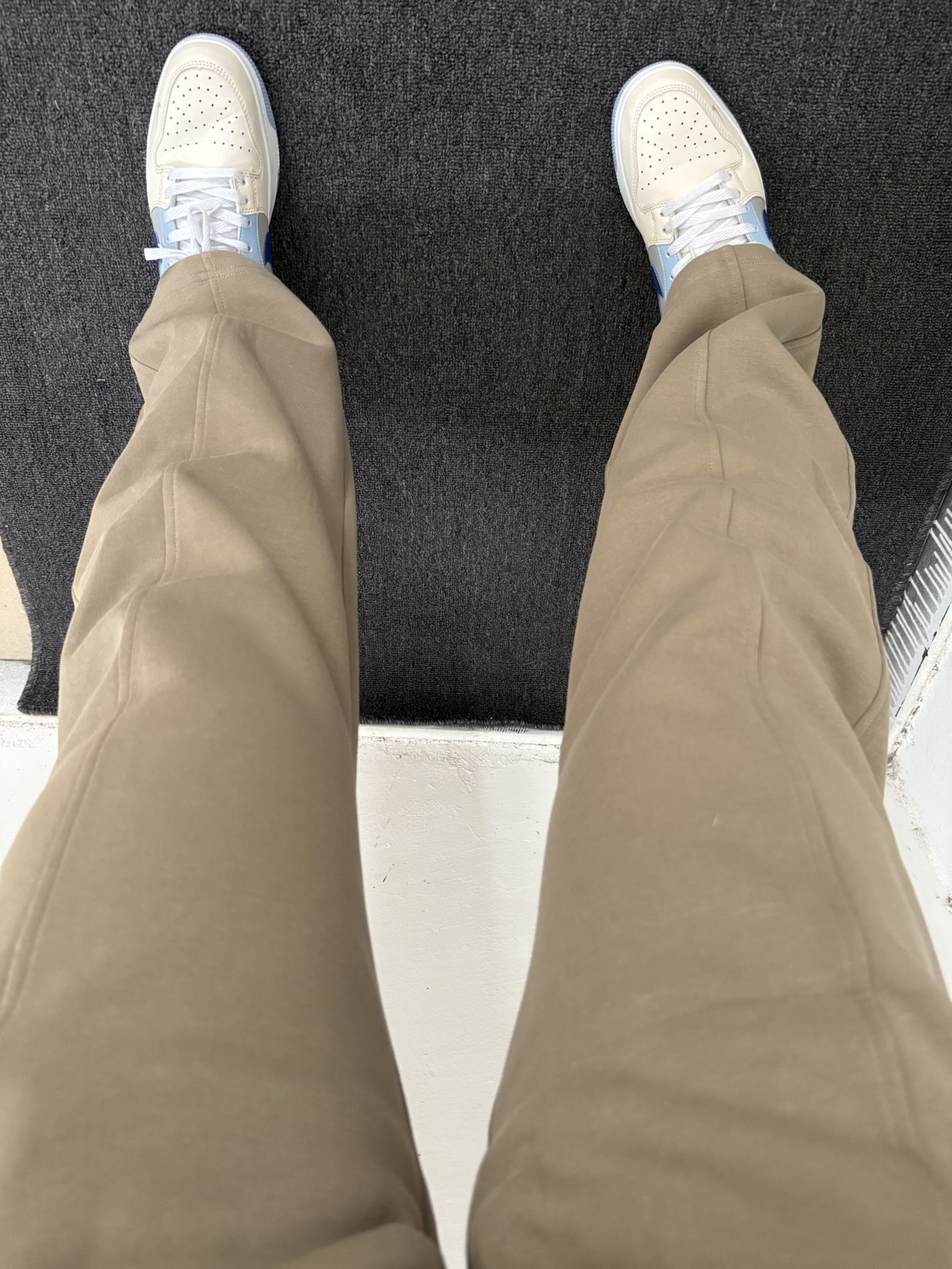 这条卡其色弯刀裤版型特别,垂感很好,走路带点飘逸。针织面料柔软,贴身穿不扎,活动起来舒服。搭配简单的上衣就挺有设计感,男女都能穿,属于秋冬随手一套就出门的实用款。适合喜欢宽松但有细节感的人