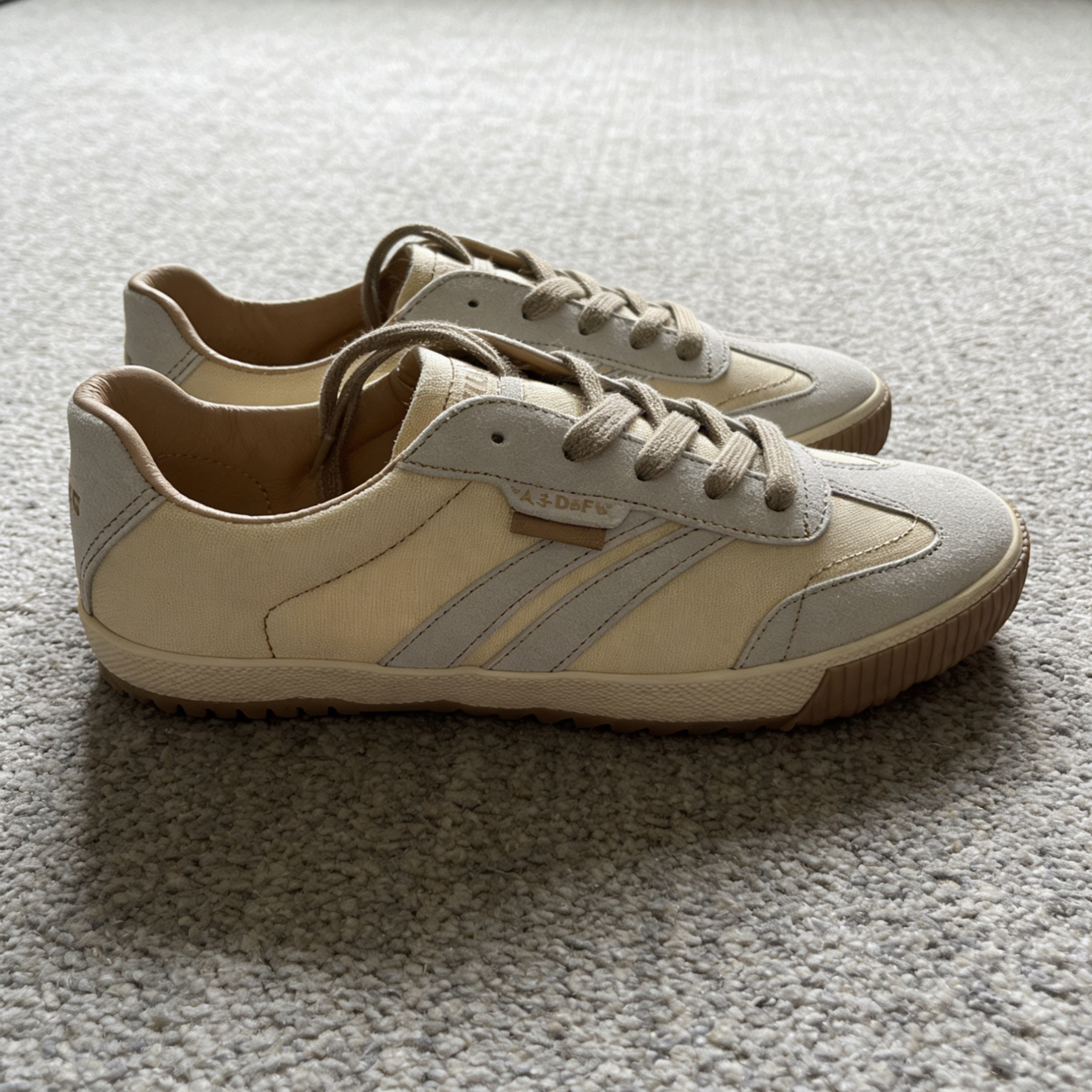 说真的,不到一百块能买到这脚感我惊了。米灰色超级好搭,配牛仔裤、工装裤甚至西裤都不违和,瞬间有种松弛的时髦感。鞋底软乎又跟脚,暴走一天也不累。帆布面透气,橡胶底耐磨防滑,雨天穿也没问题。关键是脏了旧了反而更有味道,随便造不心疼。预算有限又想穿出风格,闭眼入它。#板鞋
