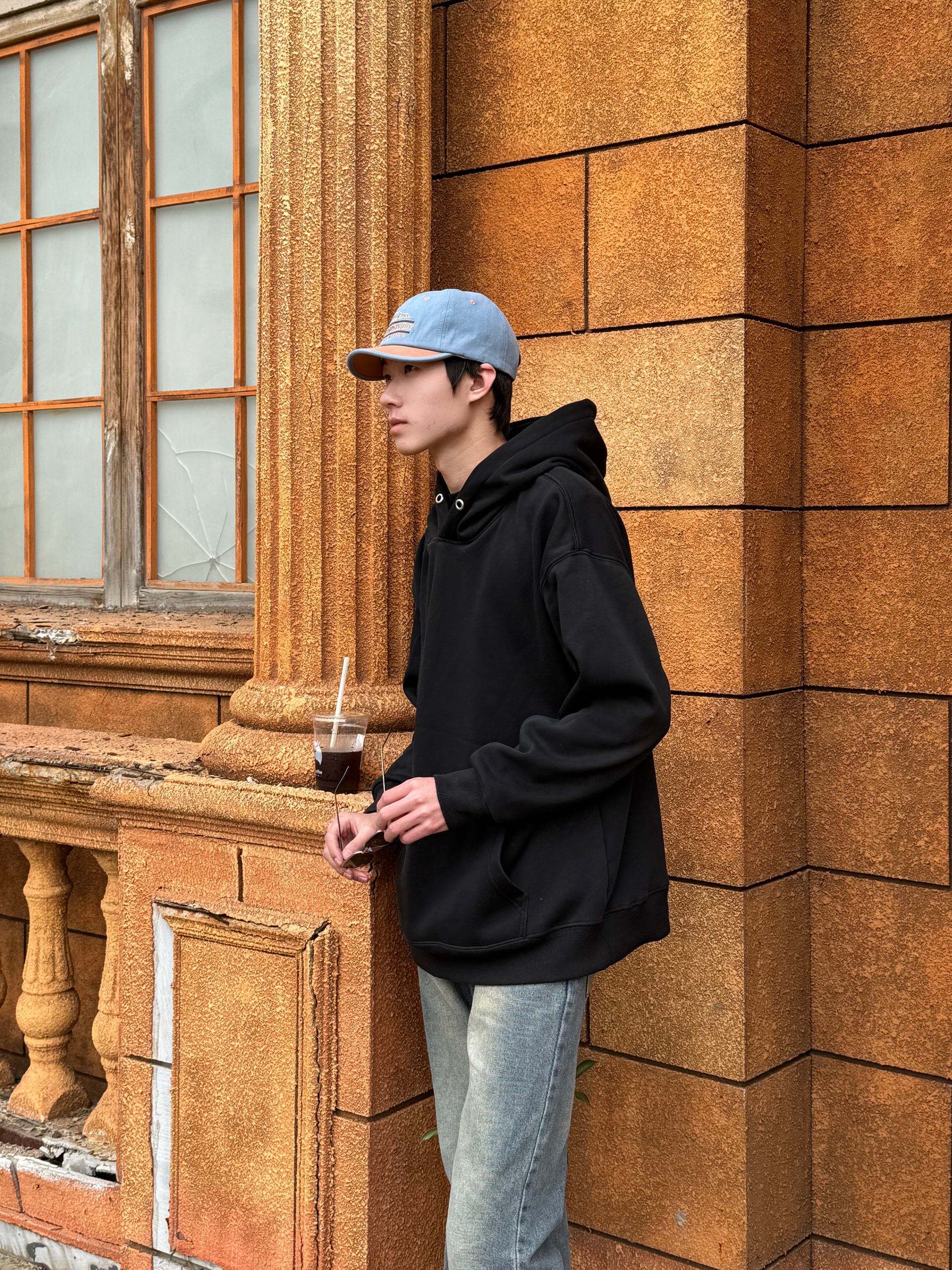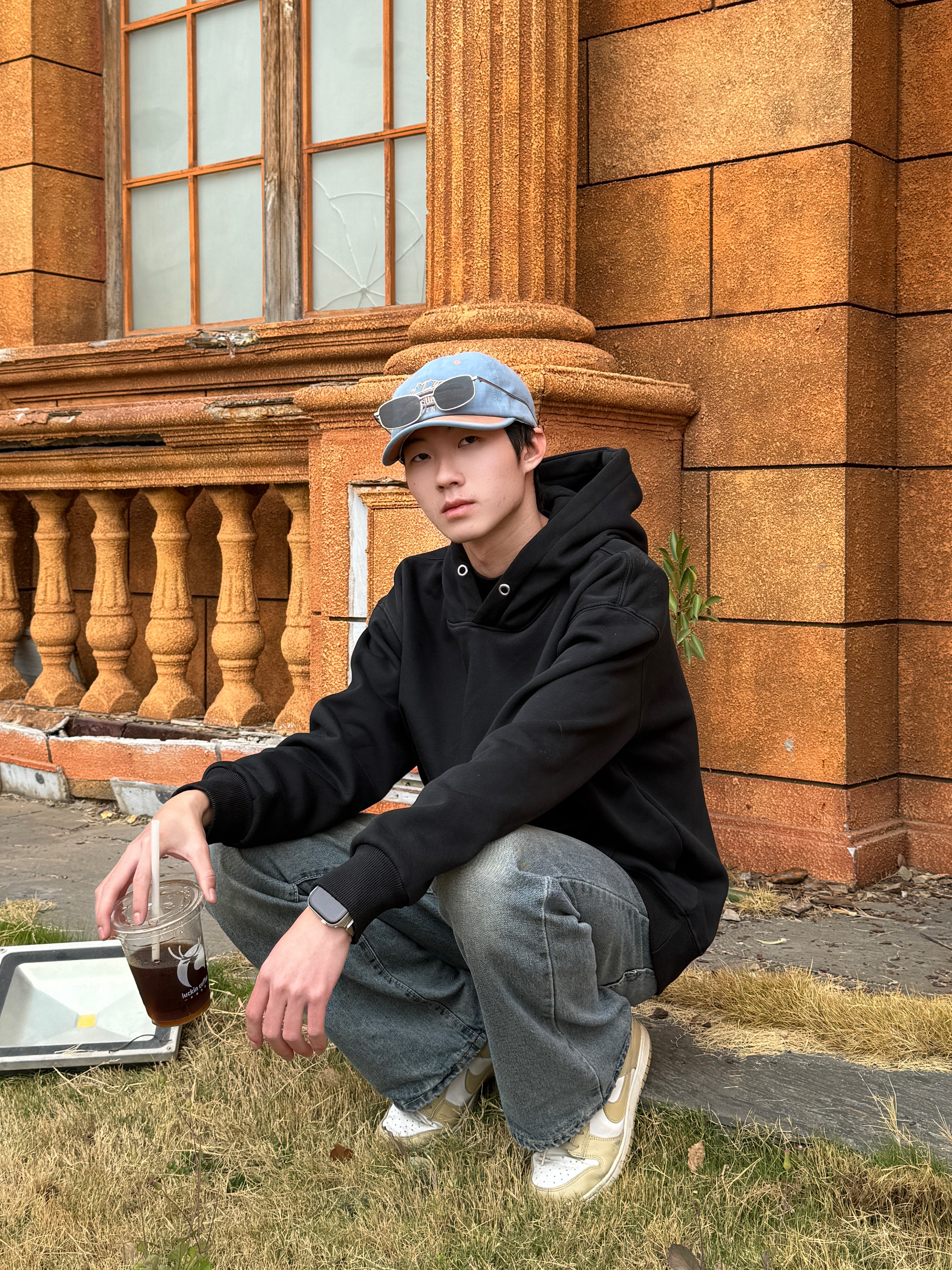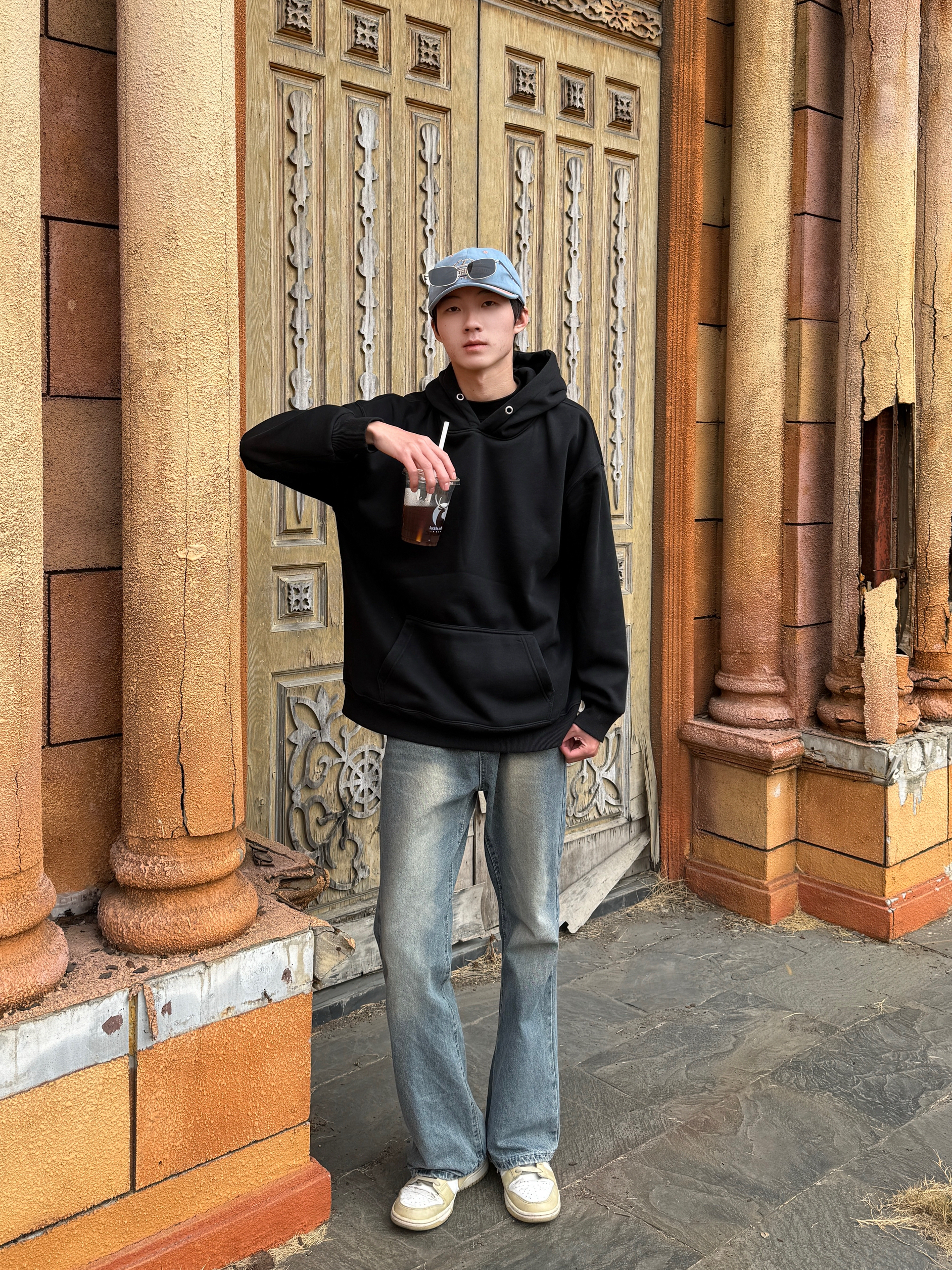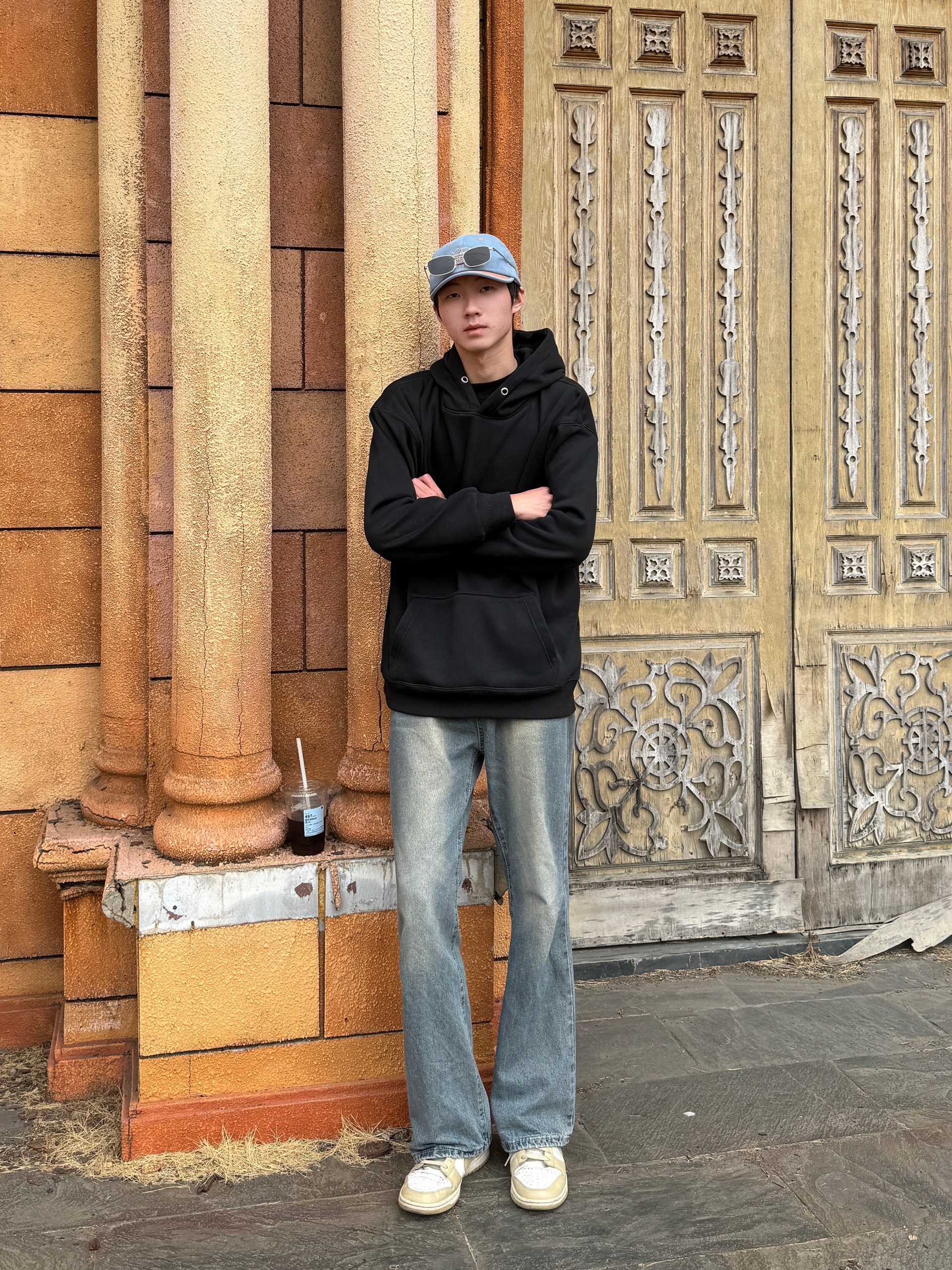 今天这身也太舒服了~ 蓝色棒球帽一戴 随手混搭黑色连帽卫衣 慵懒感直接拉满 裤子选了条水洗蓝宽松直筒牛仔裤 松松垮垮的版型走路带风 整体蓝黑配色清爽又低调 日常出门不用想直接套上就走 懒人帅气闭环了😎