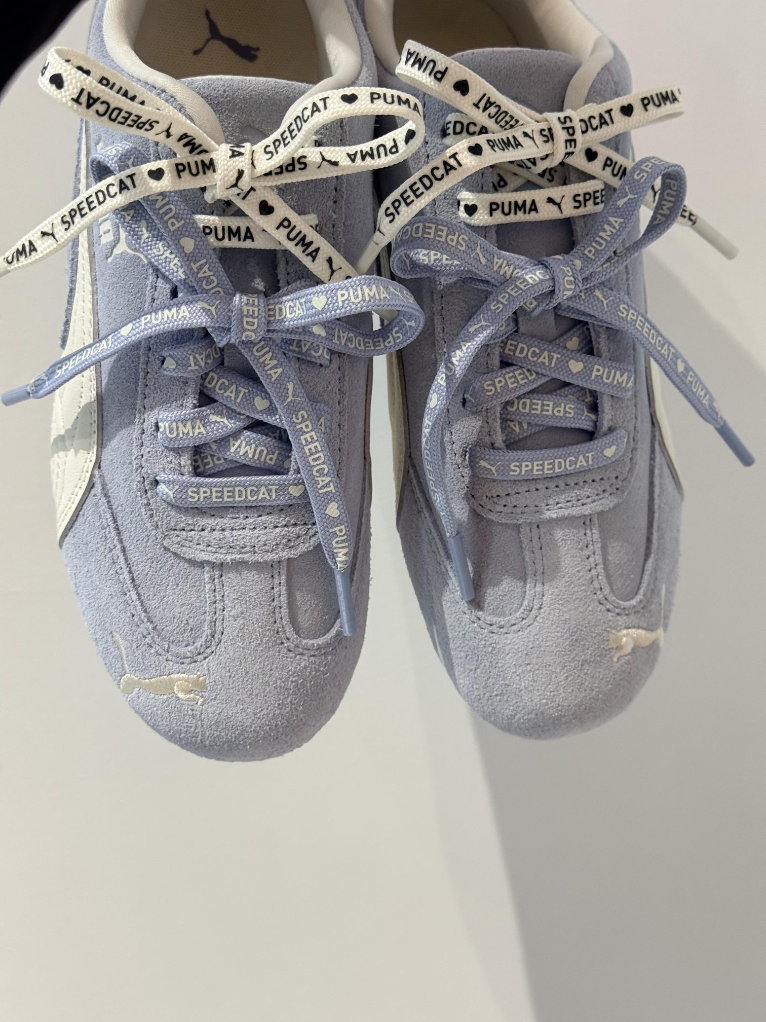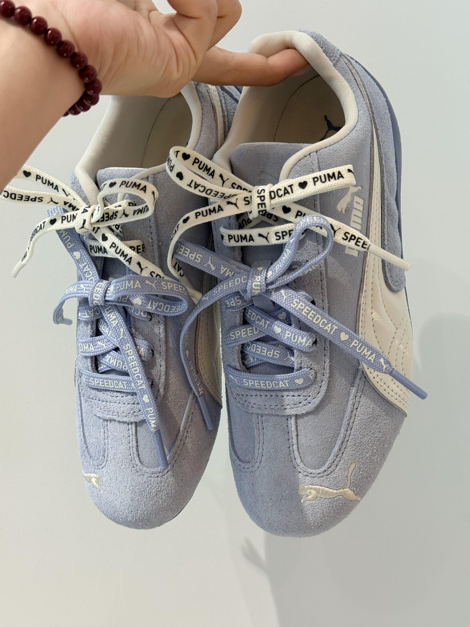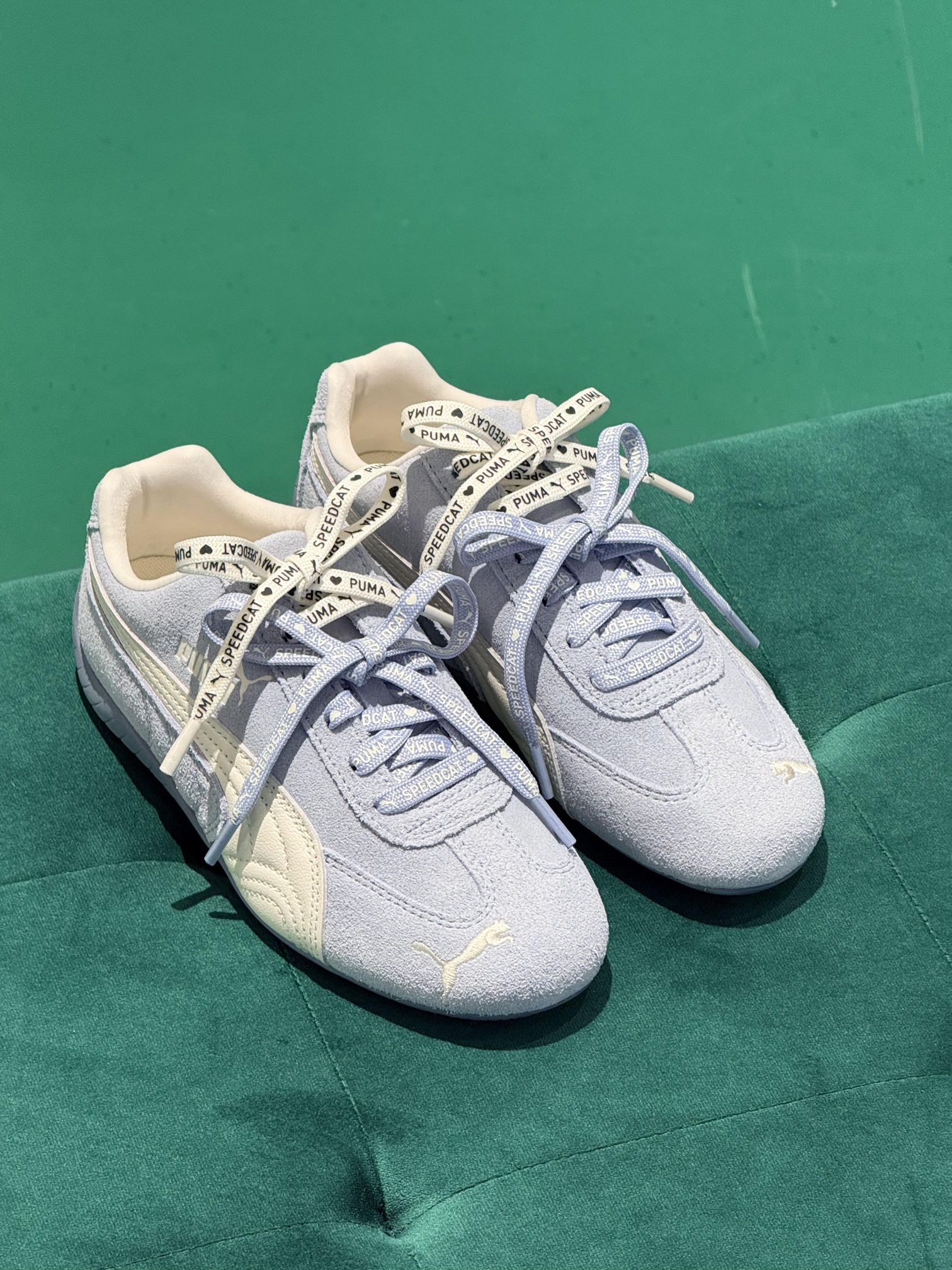 终于get到朴彩英的同款快乐! 这双PUMA Speedcat双鞋带赛车鞋,复古又时髦 海盐蓝麂皮+米白撞色,甜酷平衡刚刚好 脚感贴地还显腿长,搭配短裙/牛仔裤都超绝🚗💨