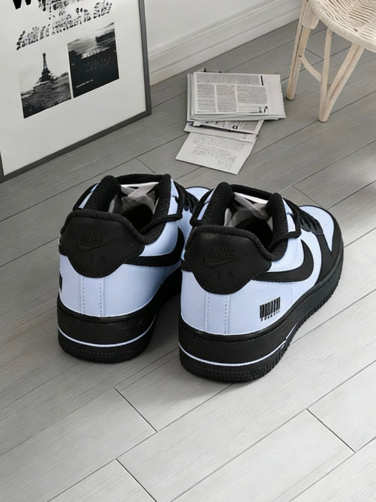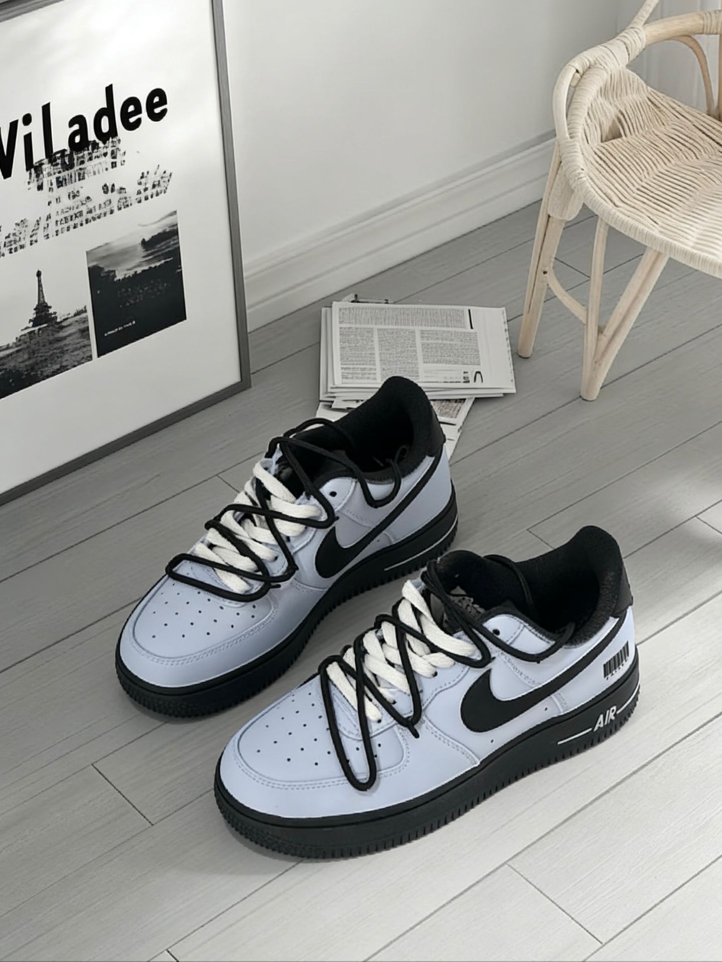 谁懂啊!这双AF1冰蓝黑直接戳中少女心💙 冰蓝撞黑配色清爽又高级,双鞋带设计+侧边爱心条码细节,小众不撞款,回头率拉满! 皮面质感在线,鞋身字母图案清晰,软底踩上去超舒服,暴走一天都不累脚~ 情侣款闭眼入,搭牛仔裤、百褶裙都巨出片,甜酷女孩必备!✨