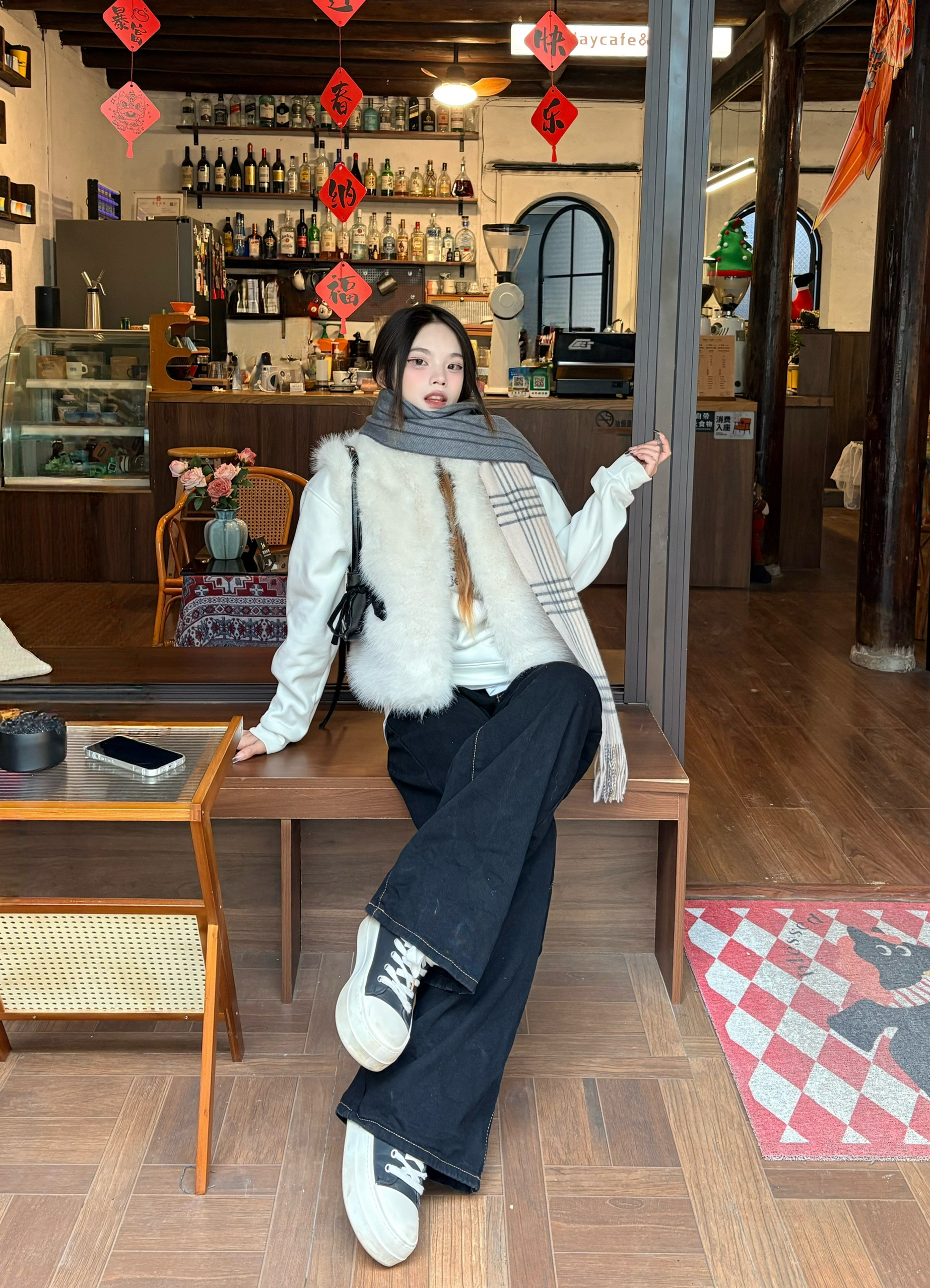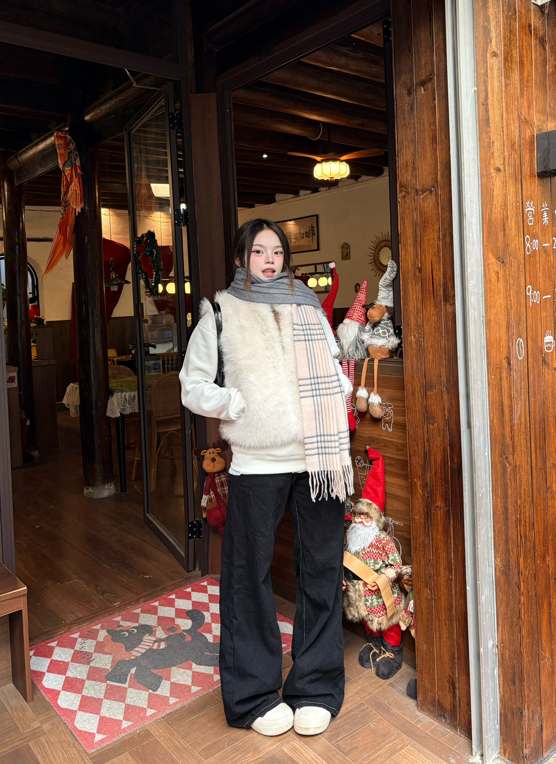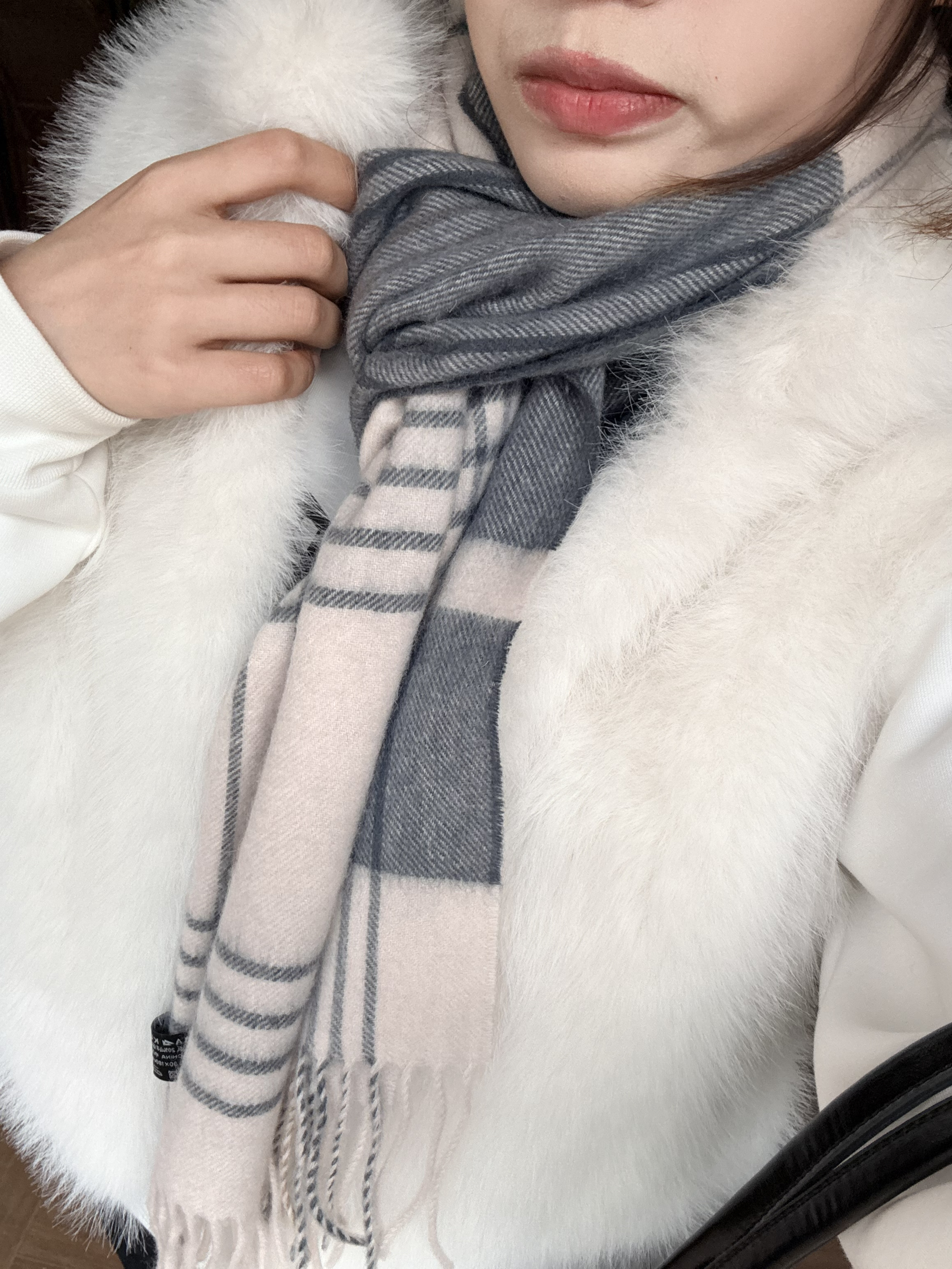 我最近挖到MARJA KURKI这条宝藏围巾 它可是有着50年历史的北欧老品牌,人称“北欧小古琦”📜 羊绒羊毛混纺的材质,贴在脖子上软乎乎的🐑 像被一团云朵裹住,保暖又显贵气✨ 灰白渐变+格纹拼接的设计太绝了✨ 我搭配的这件白色皮草马甲,温柔氛围感满满 不管是日常出街还是约会拍照都超出片📸