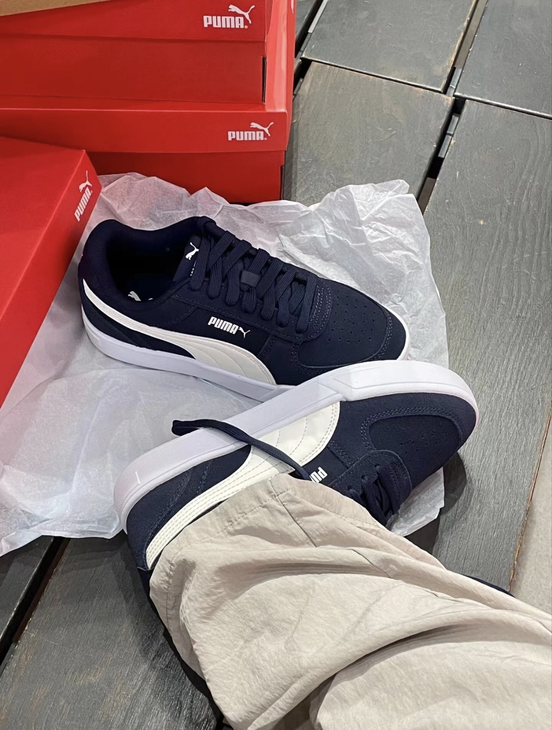 藏蓝色真的巨百搭呀,彪马的质量也是很好啊,平时搭配裙子或者牛仔裤都好看,拍照也很出片