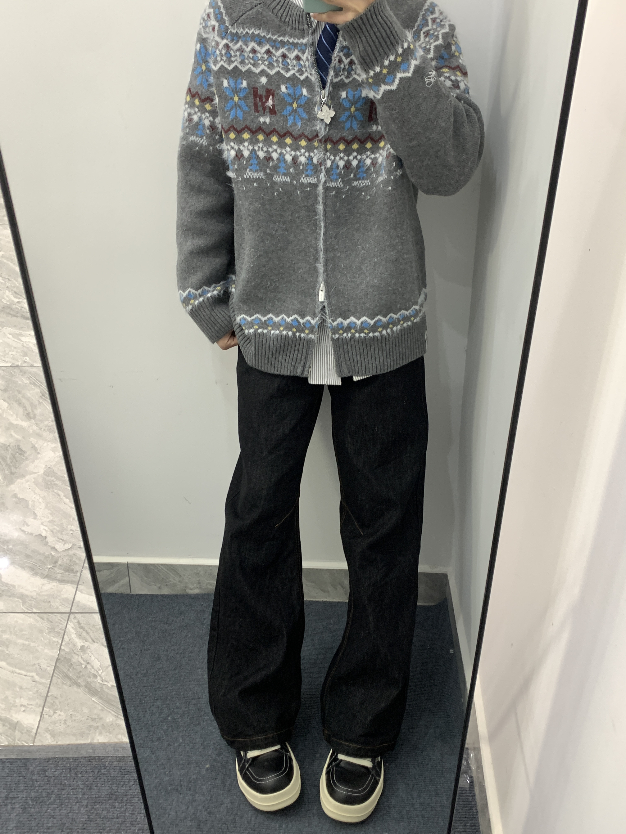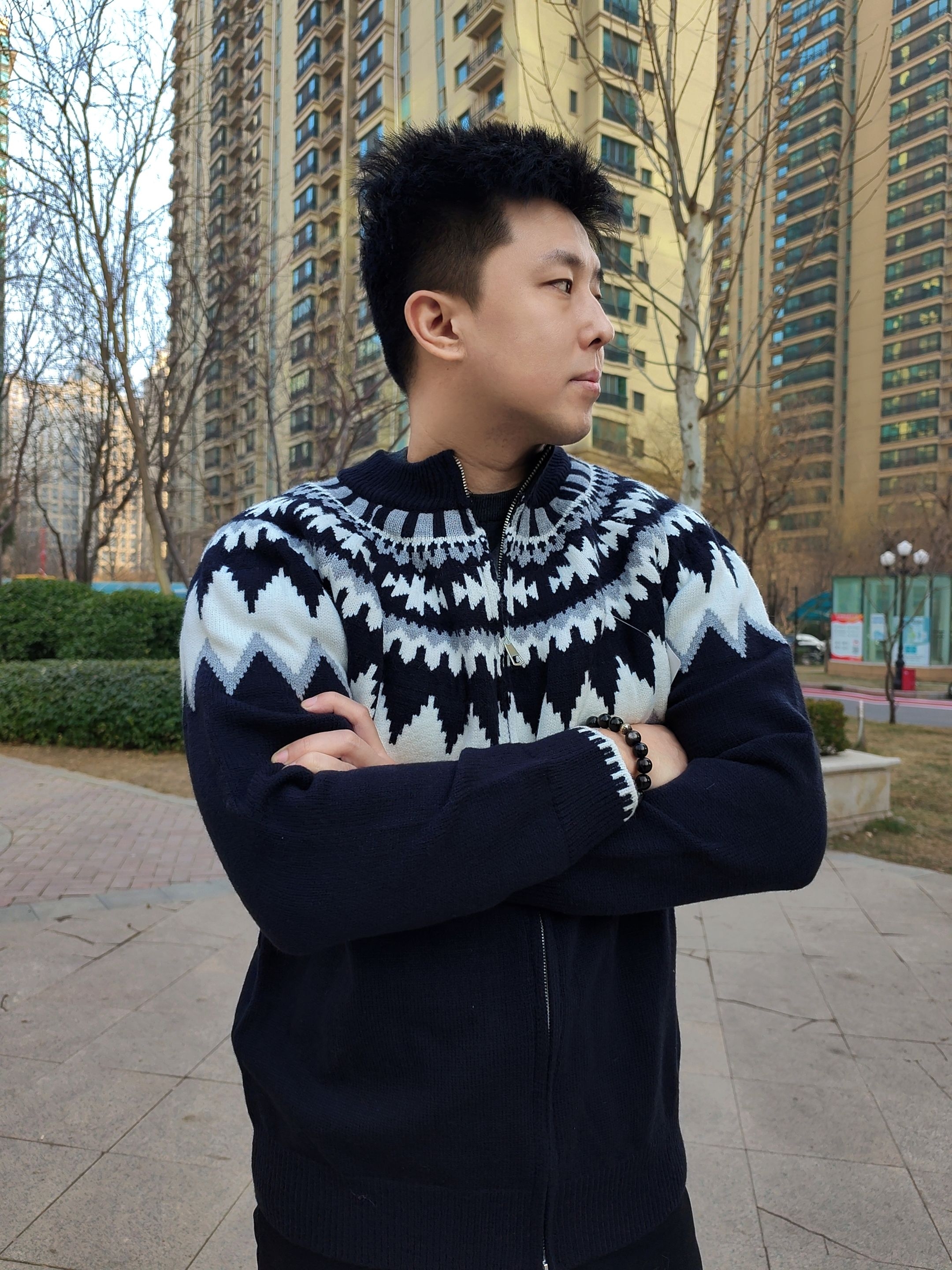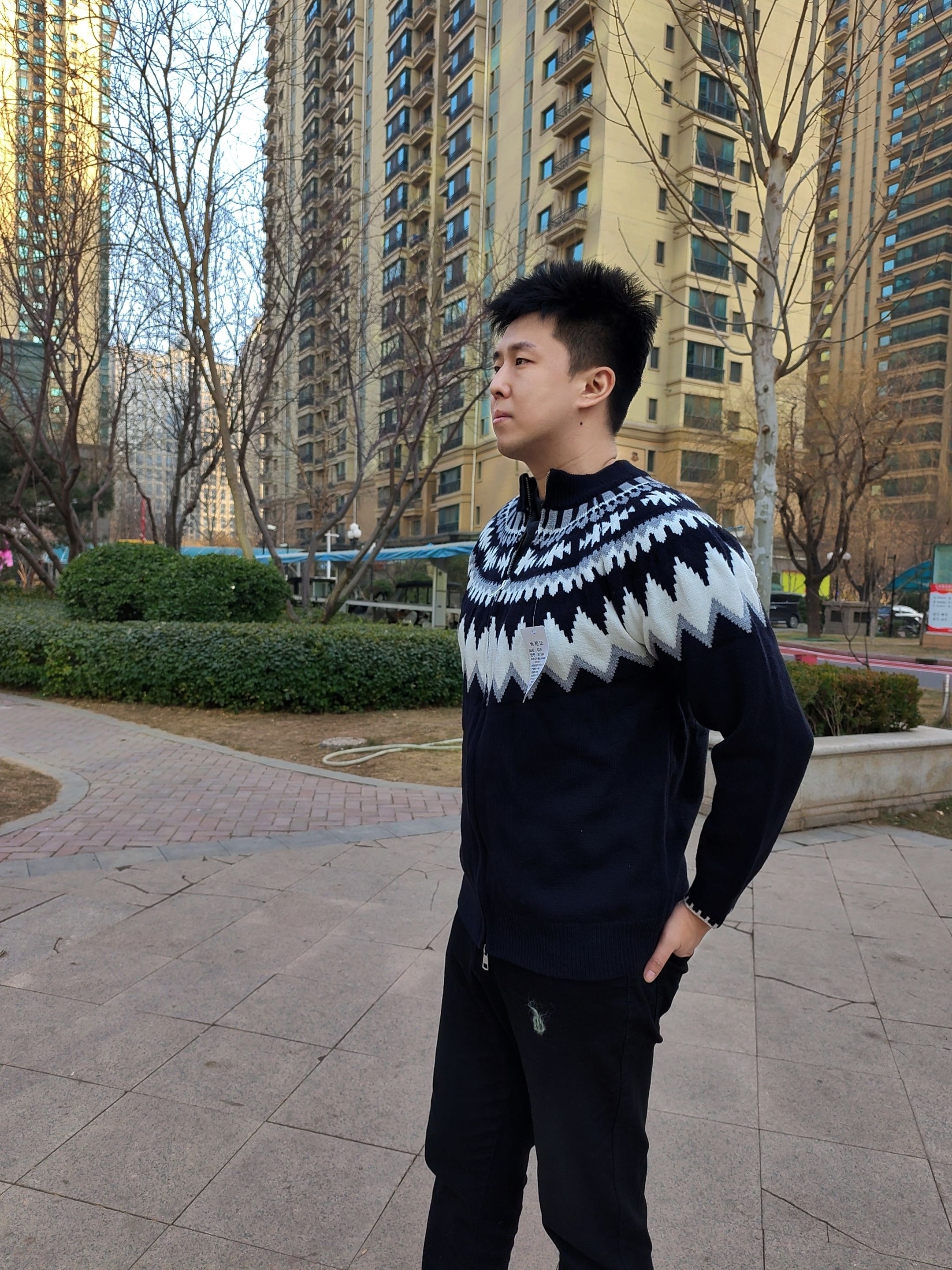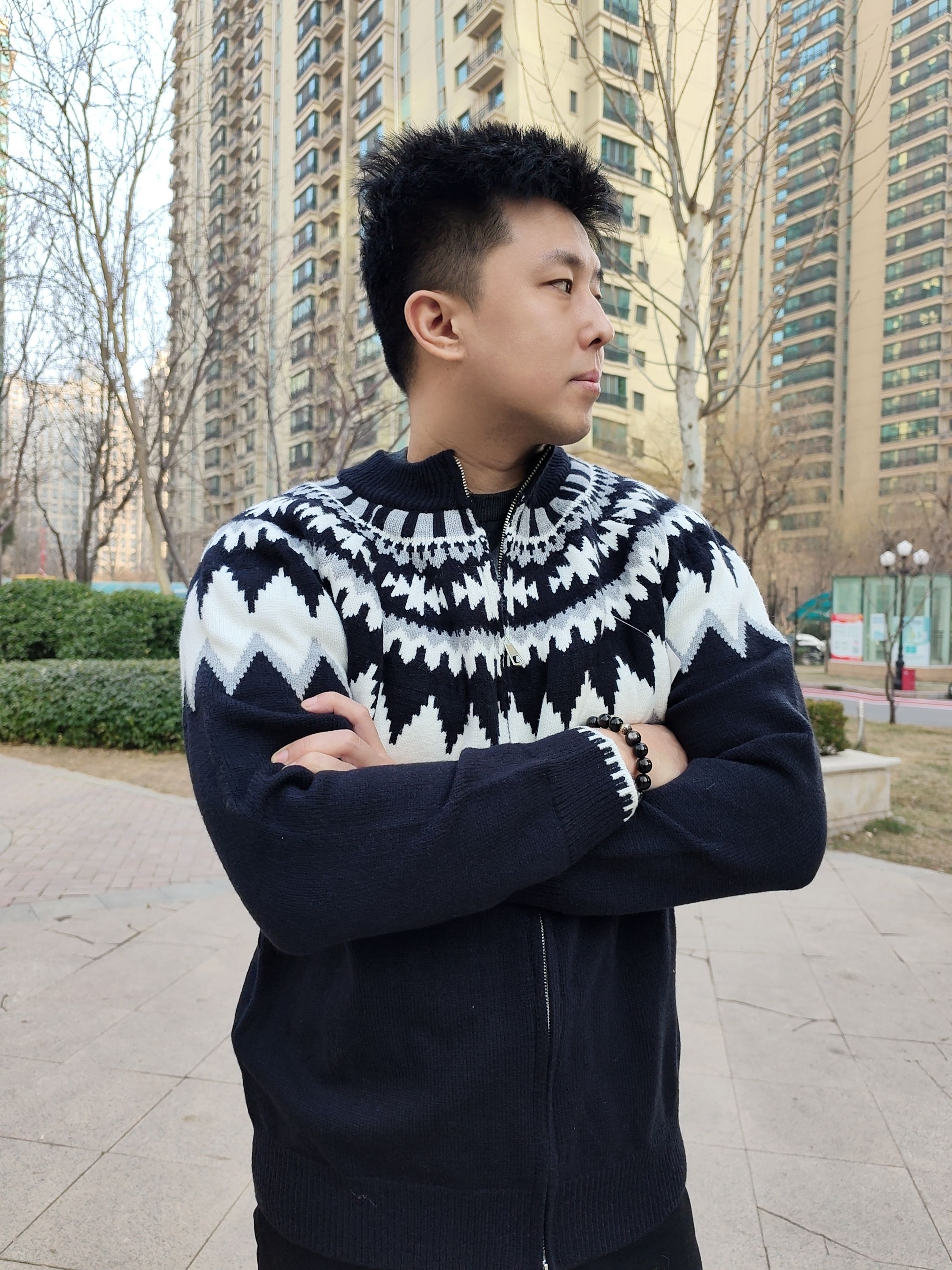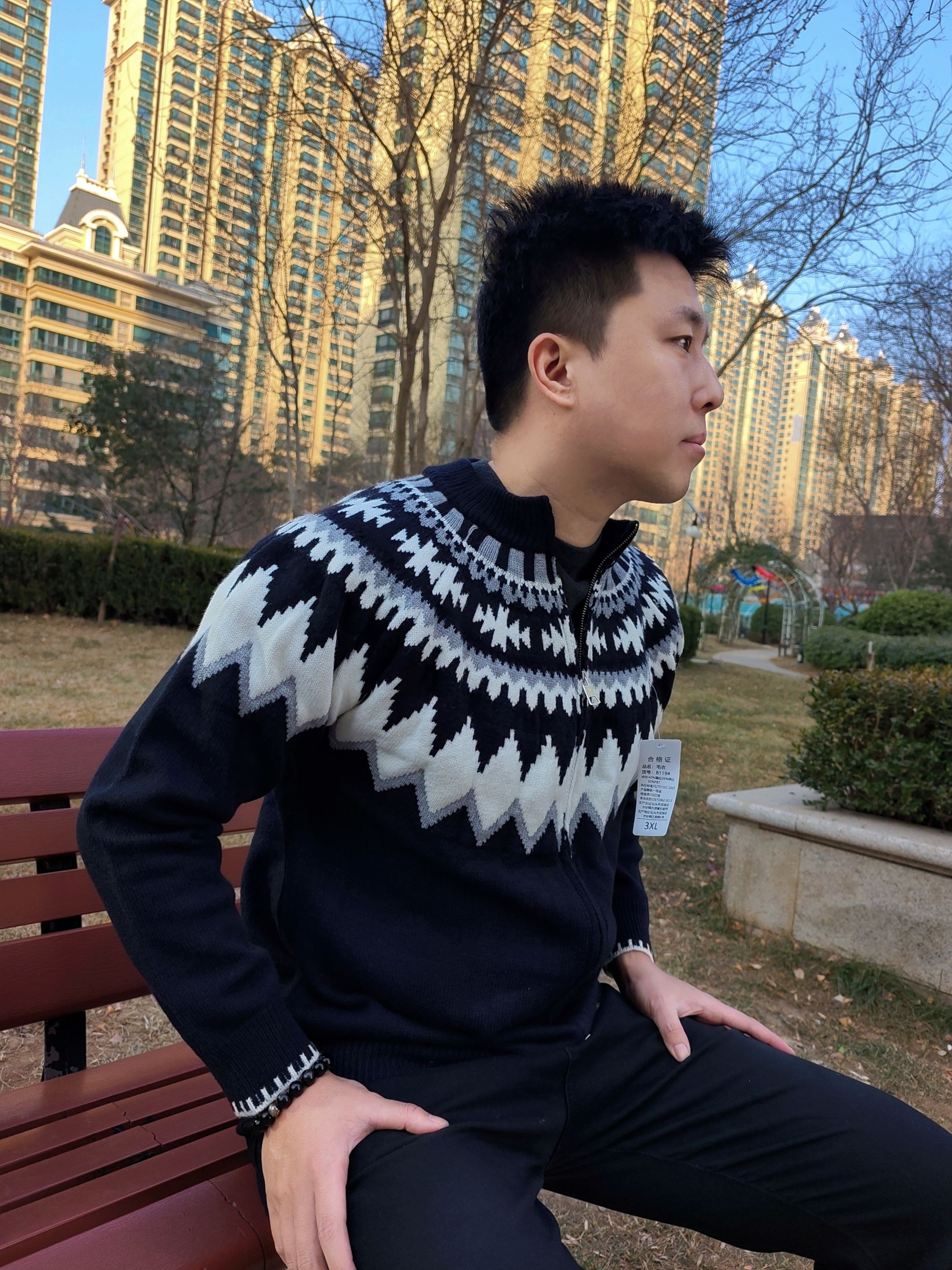 兄弟们,冬天的衣柜里,真的需要一件这种“氛围感”毛衣! 我身上这件开衫,一拿出来就知道不简单。这种黑白灰的费尔岛提花图案,真的太经典了,不是那种穿一季就过时的花里胡哨,是那种越看越有味道的复古风。 它是半拉链的设计,穿脱特别方便,而且这个立领能护住脖子,保暖又显精神。面料摸着很厚实,软糯糯的,贴身穿也不扎人,冬天单穿或者当外套内搭,都贼舒服。 最绝的是它的百搭性!下面配个黑裤子、牛仔裤...