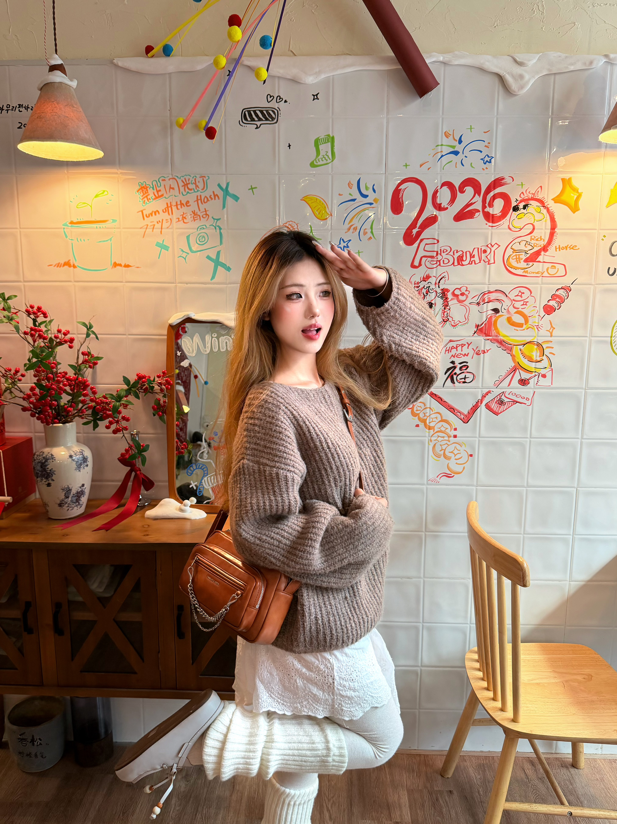 哈喽大家 这里是你的朋友胖妍 今天分享的是 我的情人节礼物以及搭配分享✌️ - 普通毛衣穿腻了不妨来点一字肩 适当露肤度也是温柔显瘦 下装半裙搭配屁帘get层次感 踩双蓝色系办半拖也是挺温柔的 再来个焦糖色撞色包包 情人节特惠就这样出门咯💓