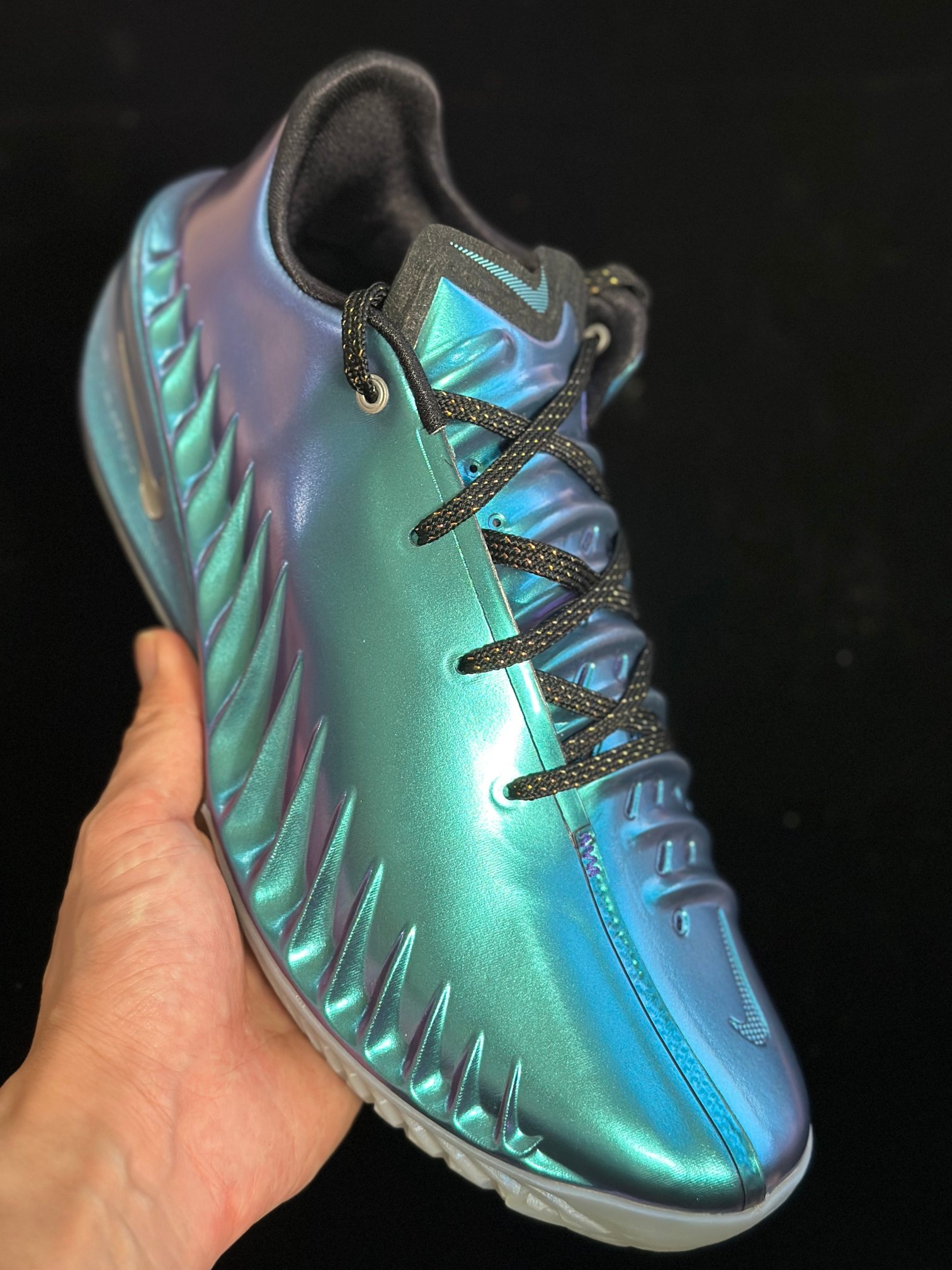 全明星的文班亚马冰川蓝估计难入手,这个金属蓝 做一下平替吧。造型无敌,但是说实在的有点难穿,因为朝内的鞋舌被固定住了,穿脱有点困难,鞋型对高脚背也不太友好,还是对穿着对象有点要求的。但是能穿的同学还是很炫酷的。我上脚去中学球场,小孩哥在一边惊呼好帅,Gt cut4新款[机智_blue][机智_blue][机智_blue] 宝子们,是买这双现货金属蓝还是全明星的文班亚马限定呢?那双估计会有溢价[狗头...