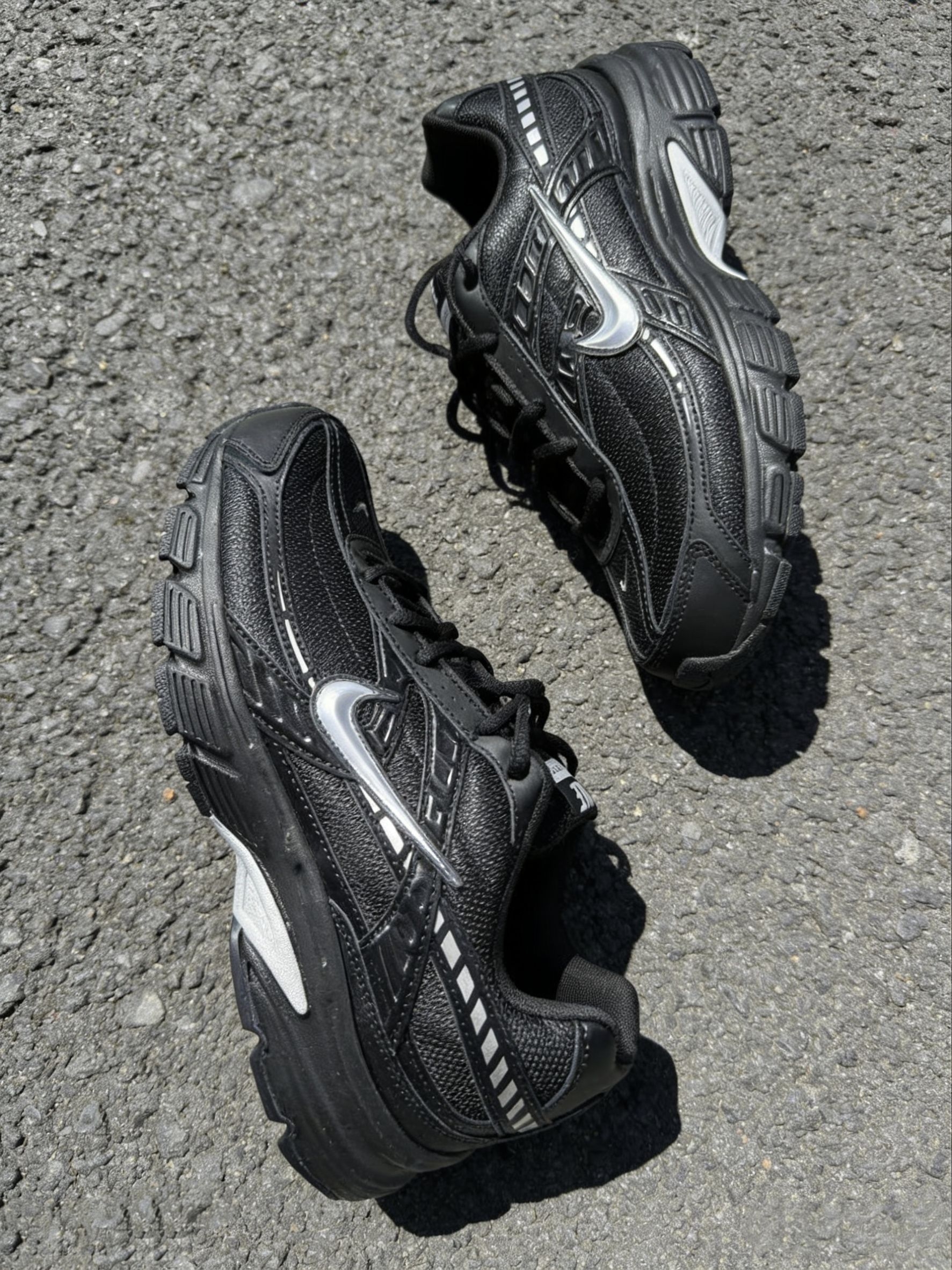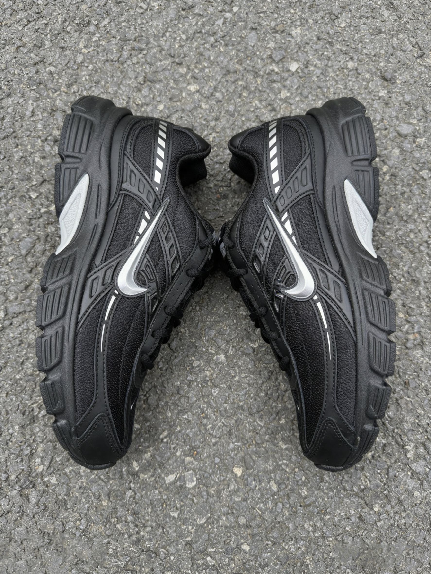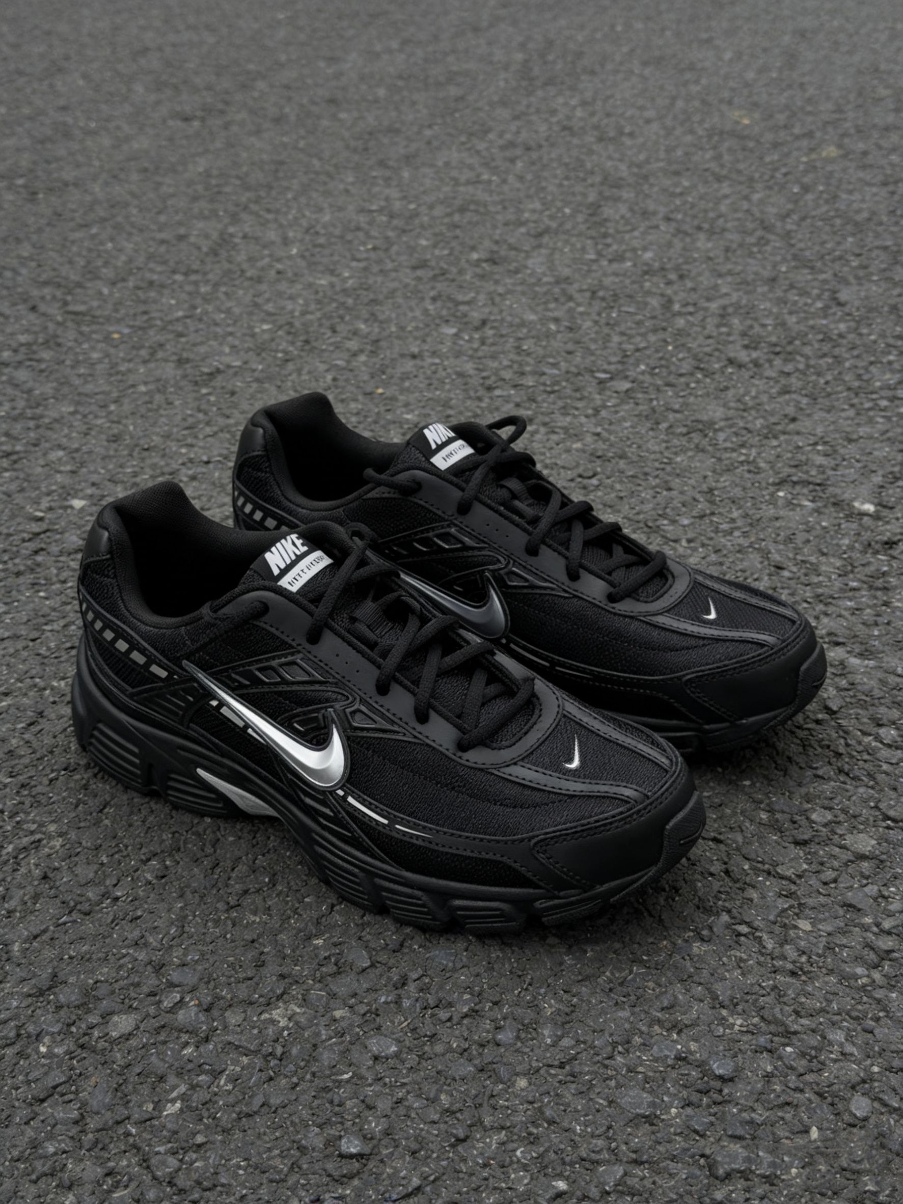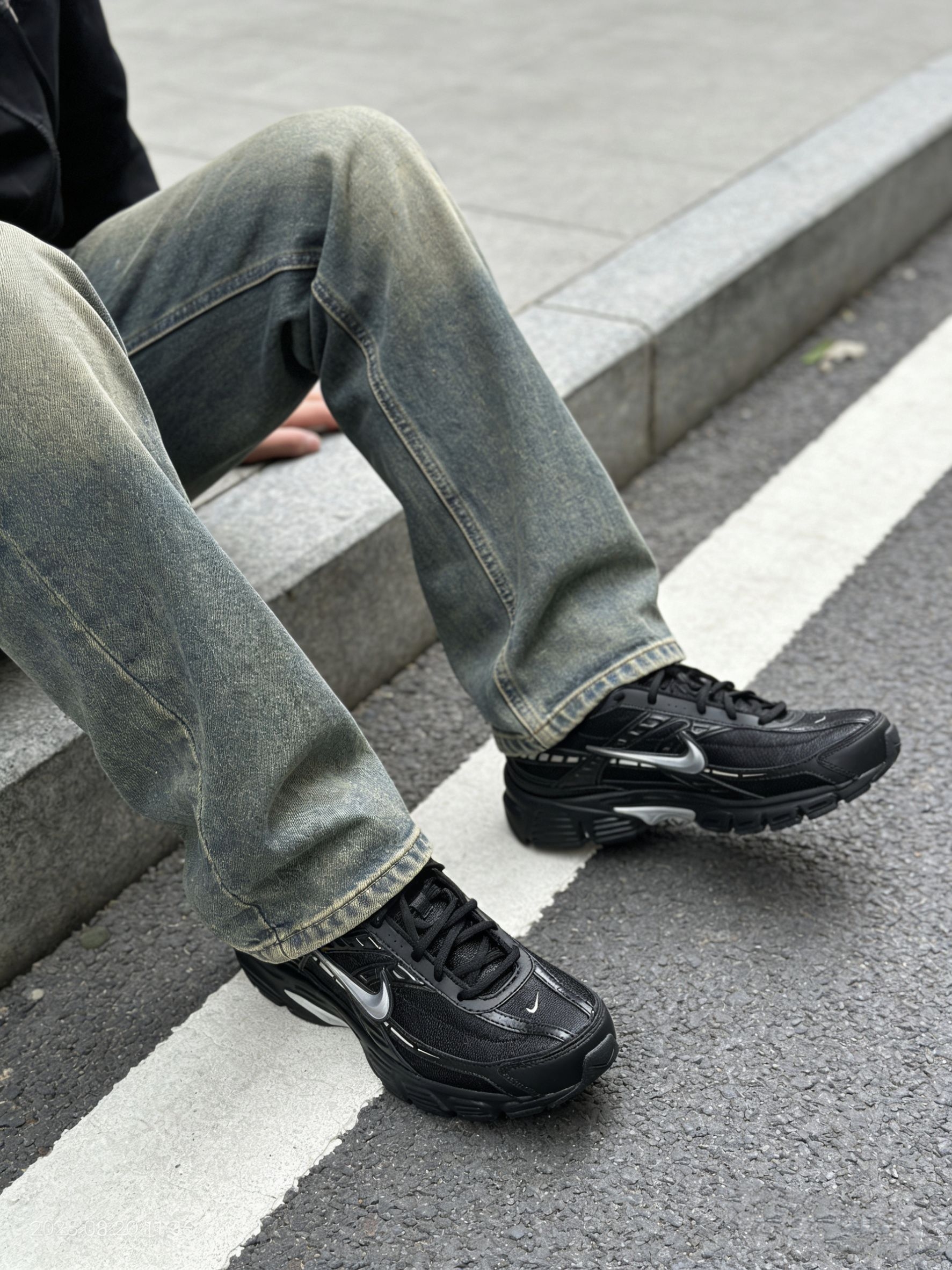 我刚上脚这双全黑的Nike Initiator,第一感觉就是酷。全黑的聚酯纤维鞋面带着点细细的反光,配上那个银色小钩子,一下子就有小时候四驱车赛车那味儿了,帅得很。 穿起来的脚感很实在,全掌泡棉底不是那种软乎乎的踩屎感,而是老式运动鞋特有的轻和稳。这种稳定的脚感特别适合我这种每天通勤、偶尔还要走点路的人,穿一天下来脚也不会酸涨。 鞋楦的包裹感很紧实,织物网面为主的鞋面透气性不错,贴着脚但不...