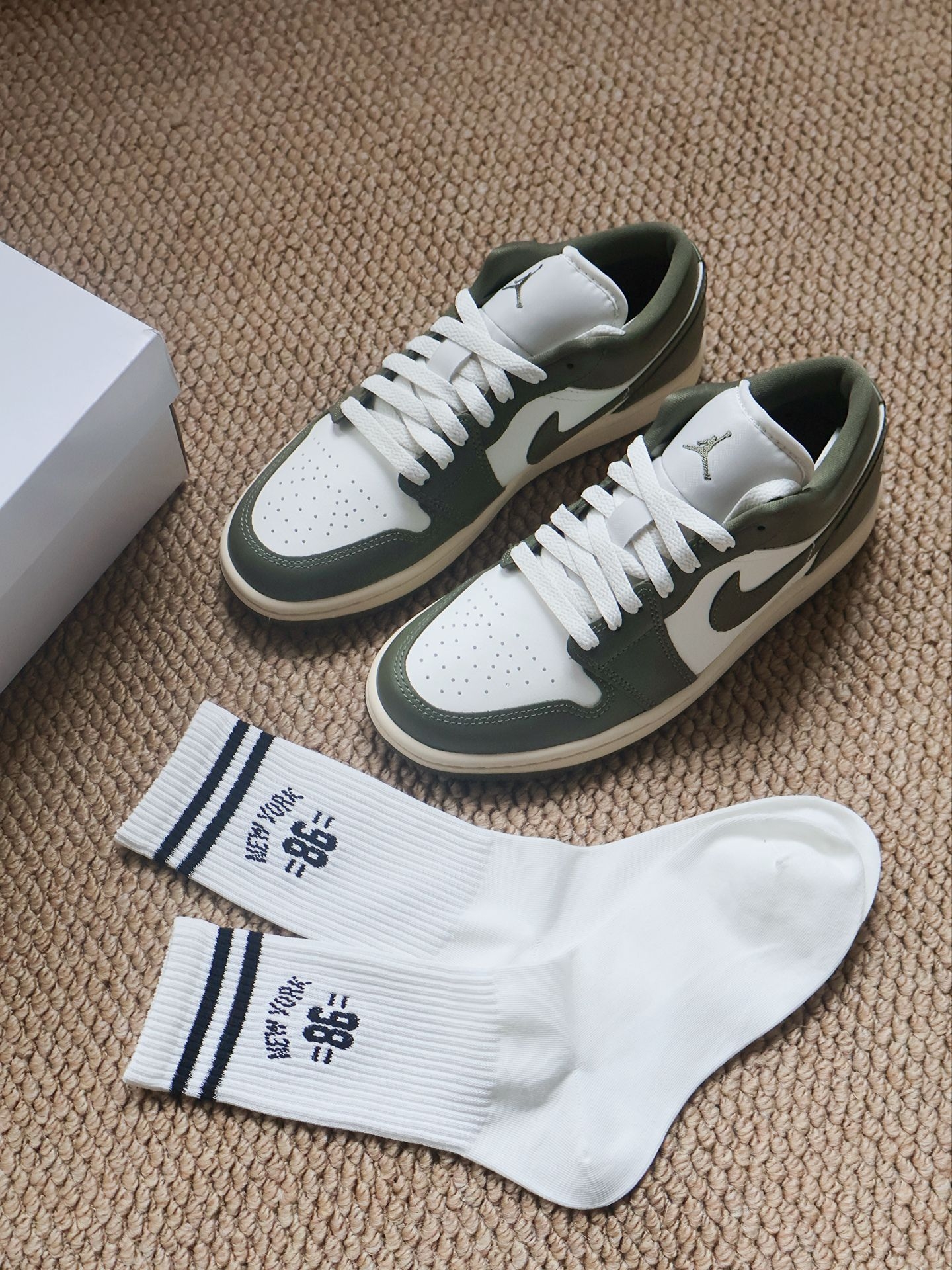 本篇笔记关联了Air Jordan 1 板鞋 运动休闲鞋 复古潮流支撑合成革 白色/中橄榄绿、有棵树 26AW简约条纹字母防臭休闲高弹中筒袜 YWQZ1002 本白 1双等商品,为用户提供真实的使用体验和购买参考。