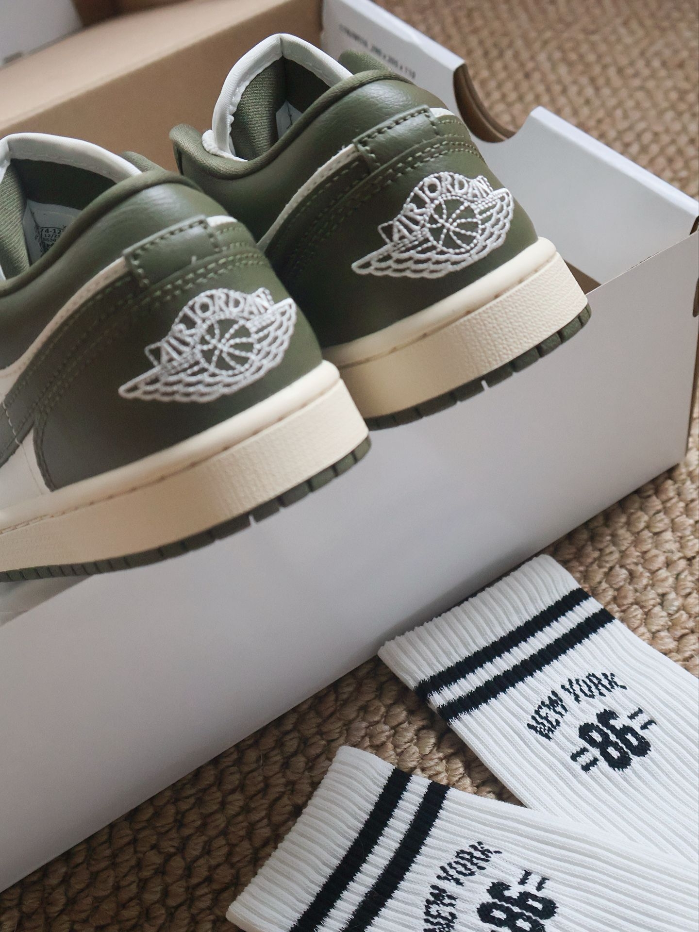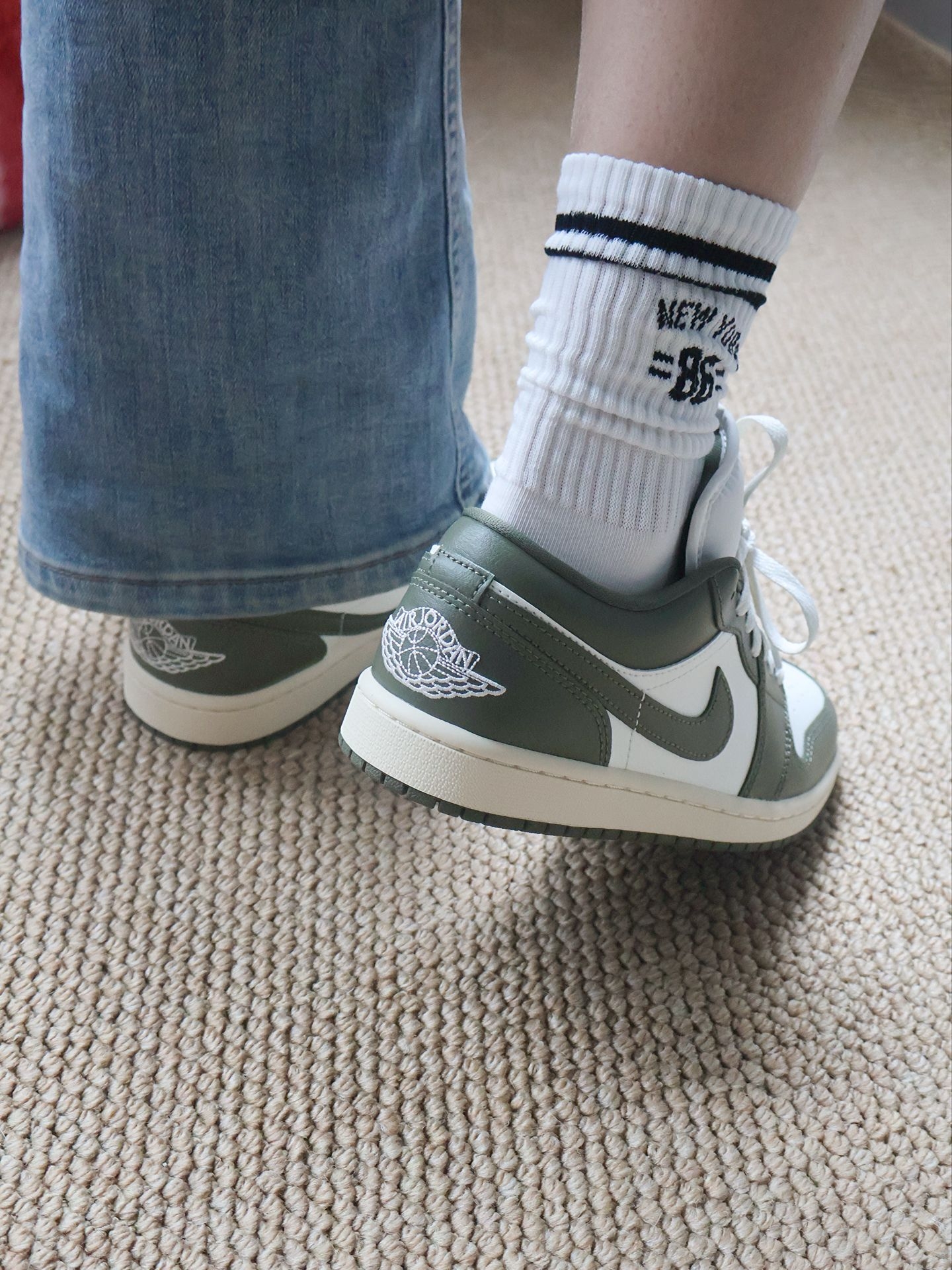 天气渐暖🍃已经在开始期待春天啦 今天上脚AJ1 复古橄榄绿🫒 越看越喜欢😘 鞋型秀气 上脚也是好看好搭配的 脚上穿的袜子🧦是 #有棵树 他们家的 棉质摸着手感很好搭配字母刺绣🪡 呼应复古学院风 一组5双价格也不贵 推荐给你