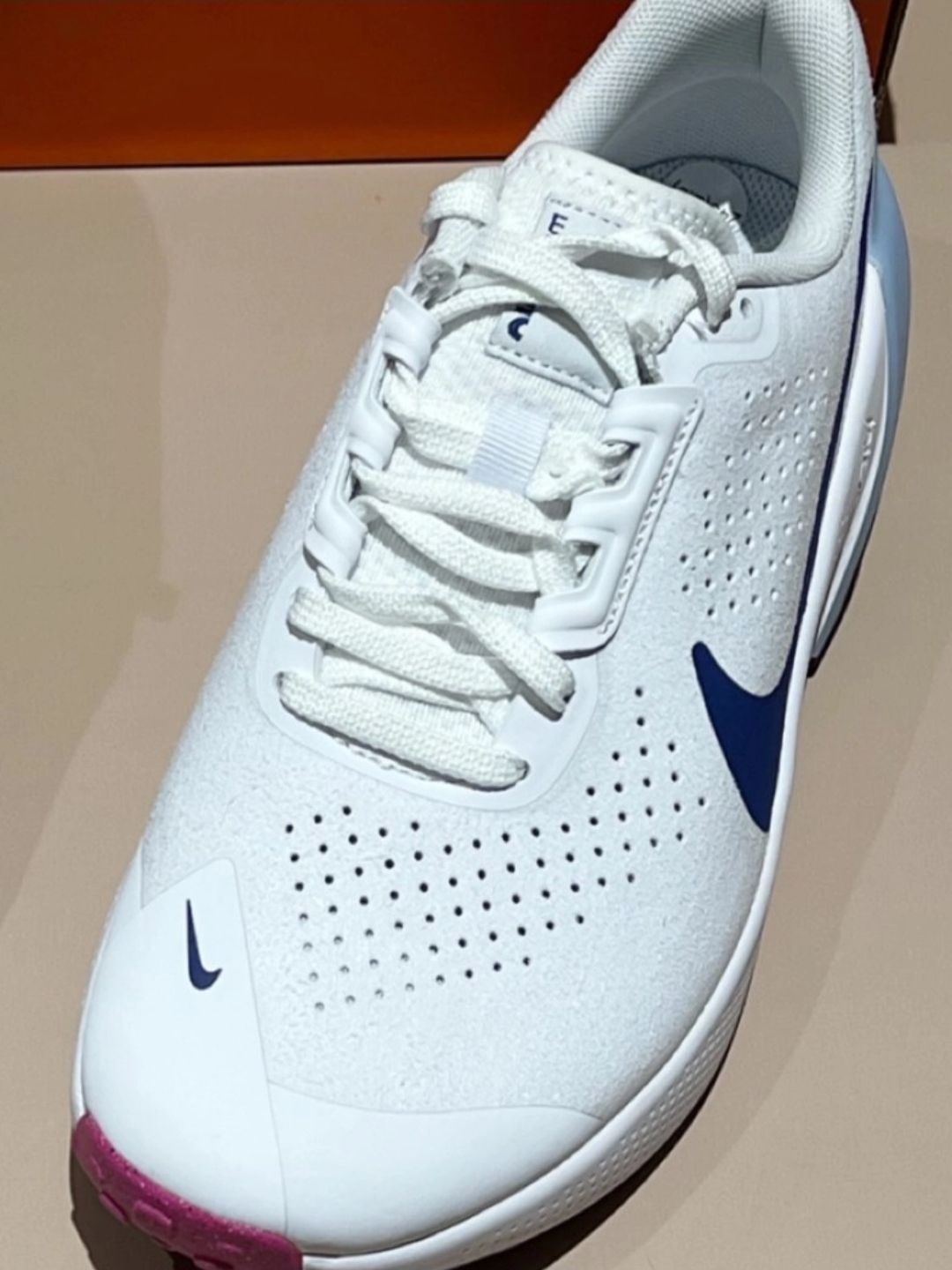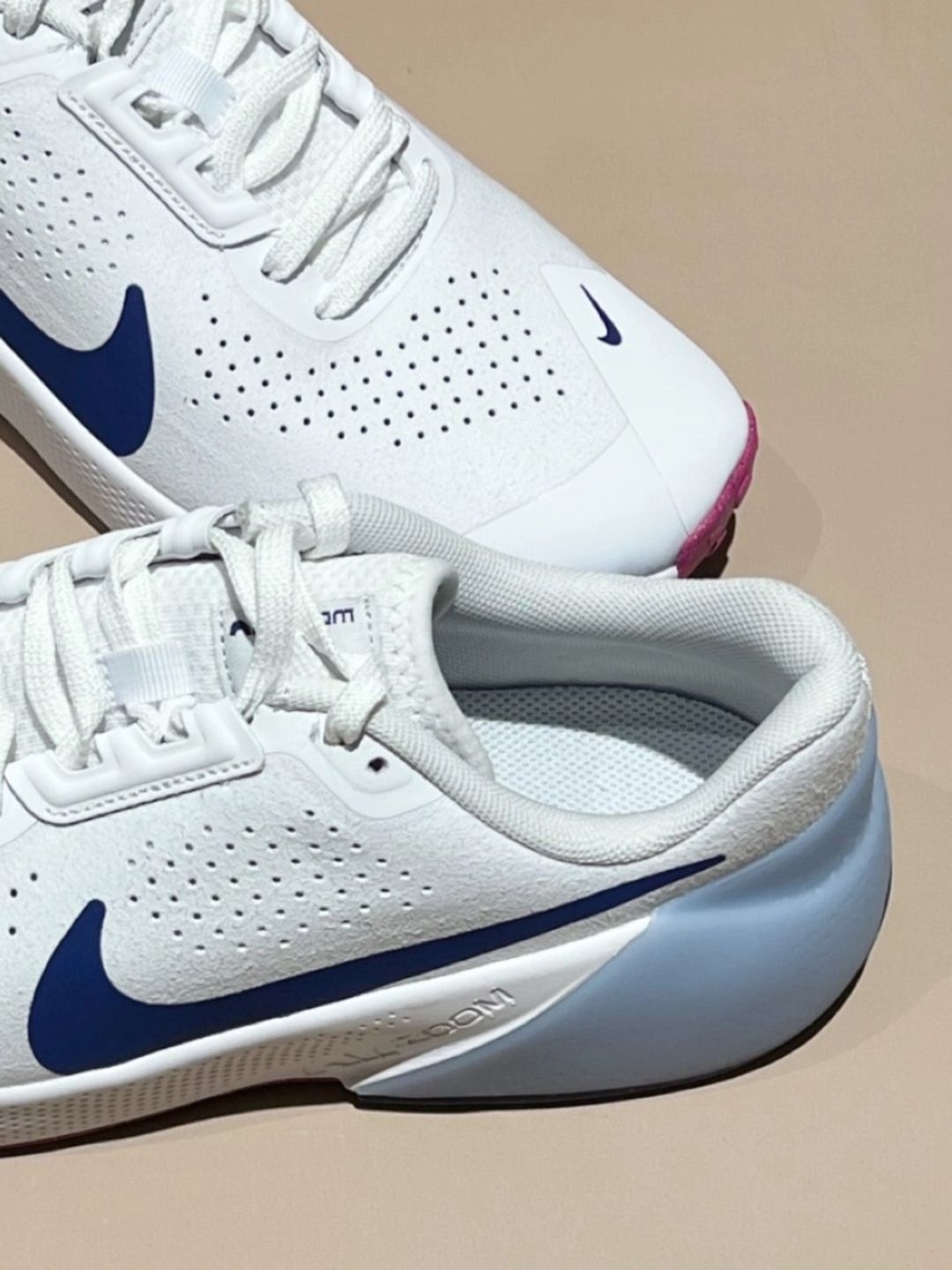 最近超爱穿Nike Air Zoom TR1白蓝款💙~昨天穿它去健身房练腿,搭配灰色运动裤+白色短T,教练说我今天穿搭清爽又精神😎! 鞋面是合成革材质,软乎乎的不磨脚,鞋头有透气孔,练完脚也没闷汗✨。 日常出街配浅蓝牛仔裤也好看,朋友夸我这身很阳光☀️。 这款尺码正,瘦脚宽脚都合适;白色部分脏了用橡皮擦🧼擦就行~ 你们喜欢白蓝还是其他配色?来评论区聊聊呀🤍!