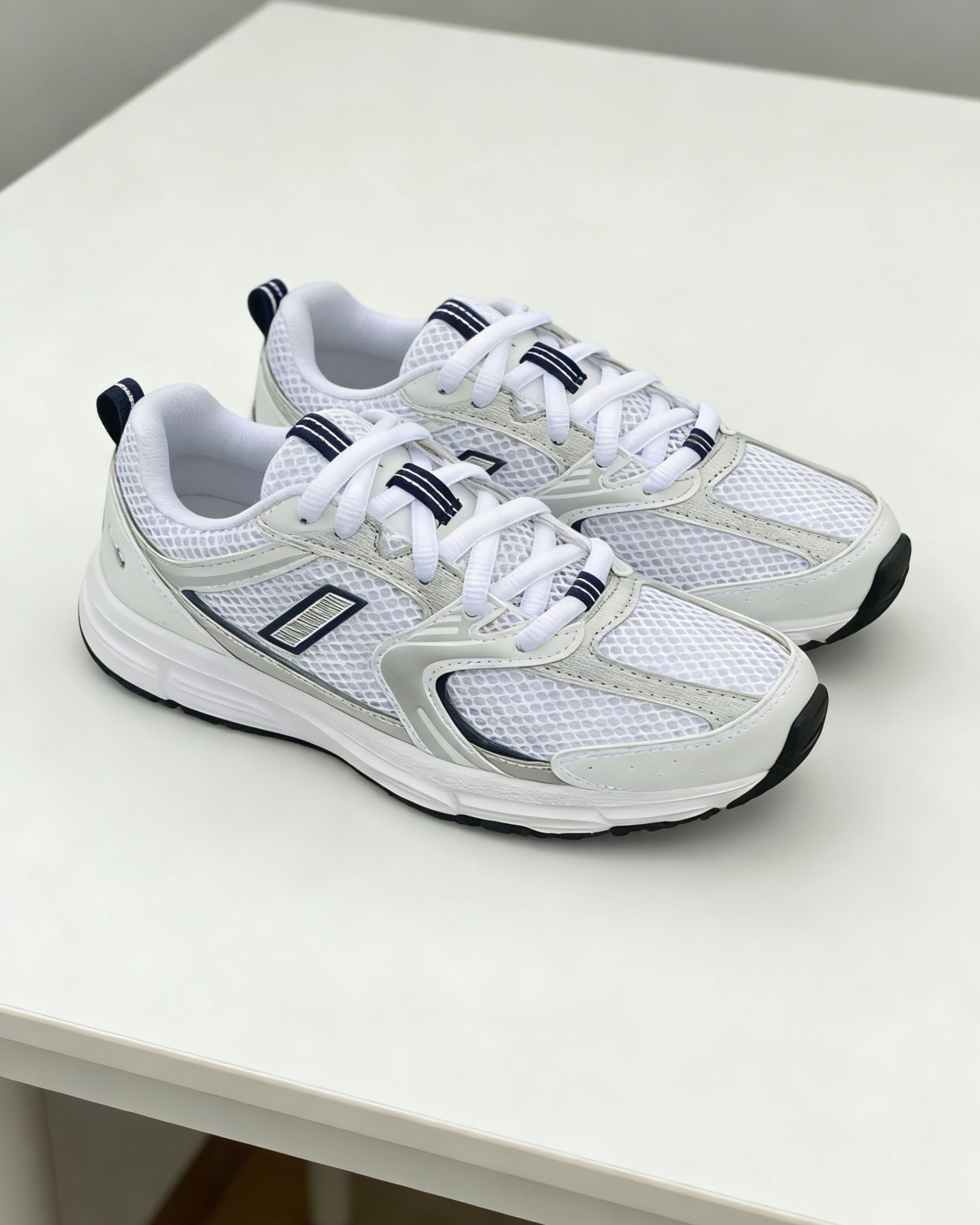 这双New Balance运动鞋采用白色为主色调,搭配灰色和深蓝色细节。鞋面采用透气网布材质,提升穿着舒适度。鞋舌和鞋跟处有深蓝色装饰,鞋带孔处有深蓝色条纹设计,整体配色简洁大方。鞋底为白色,鞋跟处有黑色点缀。鞋舌上的New Balance标志清晰可见。无论是日常休闲还是运动,这双鞋都能提供良好的支撑和舒适感。再搭配牛仔裤或者喇叭裤更是一绝!😁😁😁