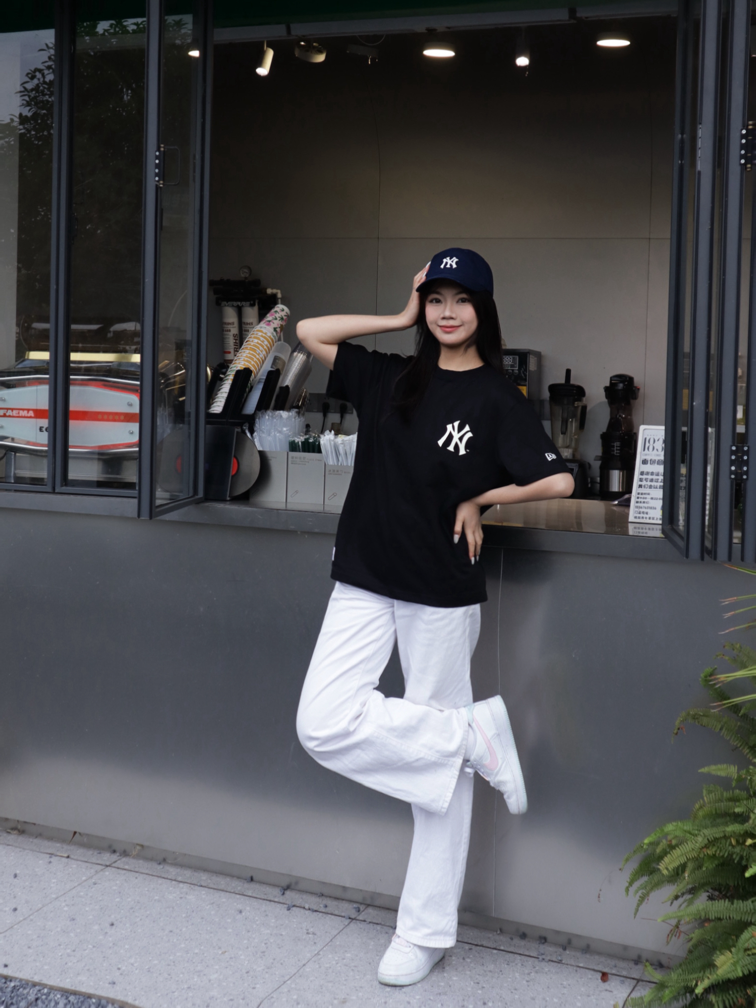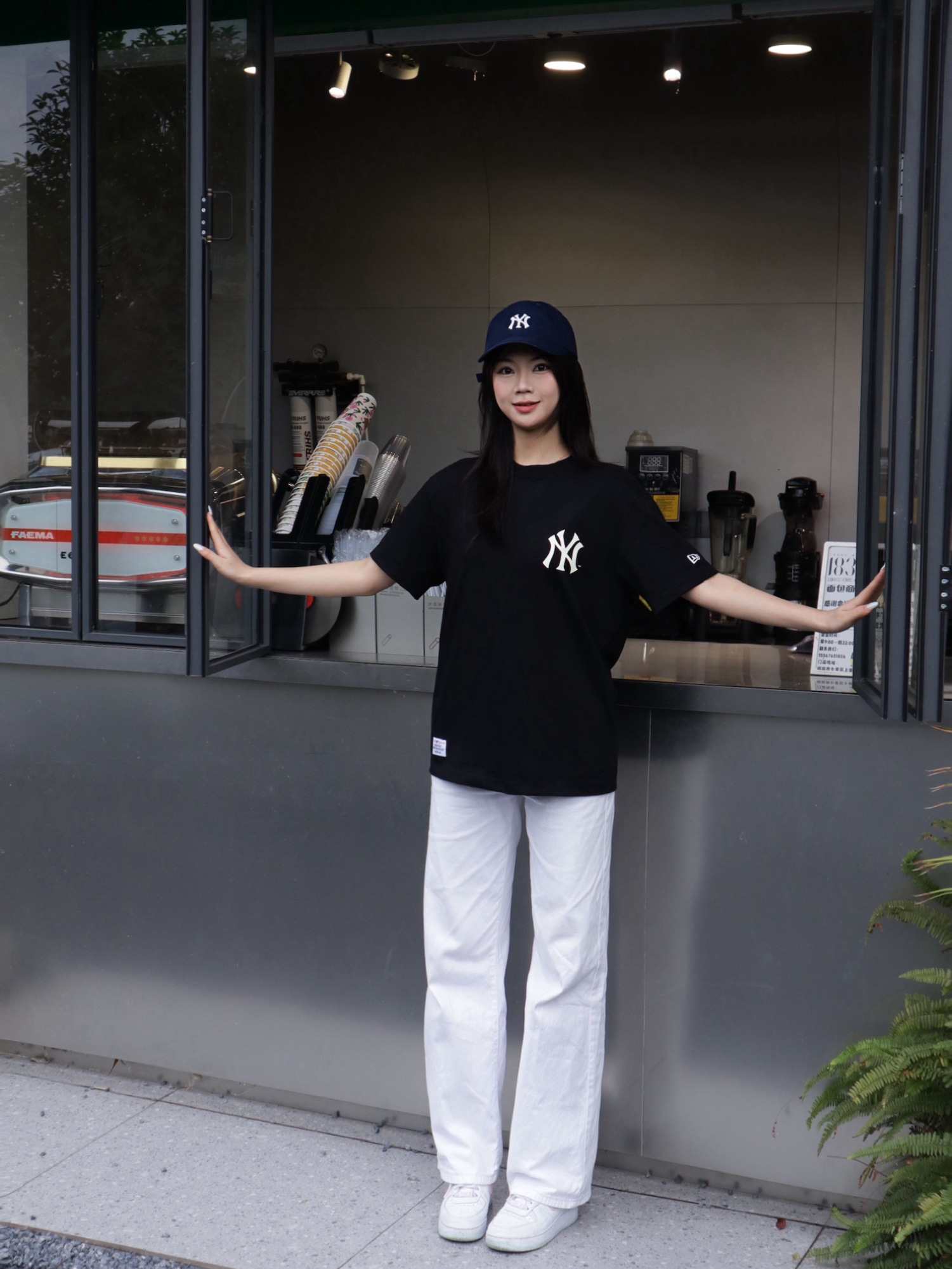 ☕️今日份咖啡续命穿搭就位! 经典的黑T+白裤公式 MLB 永远不会出错~ 背后的大NY印花太吸睛了 配上棒球帽 美式街头感直接拉满 这种舒服又好看的搭配 就是我夏天出门的底气💃