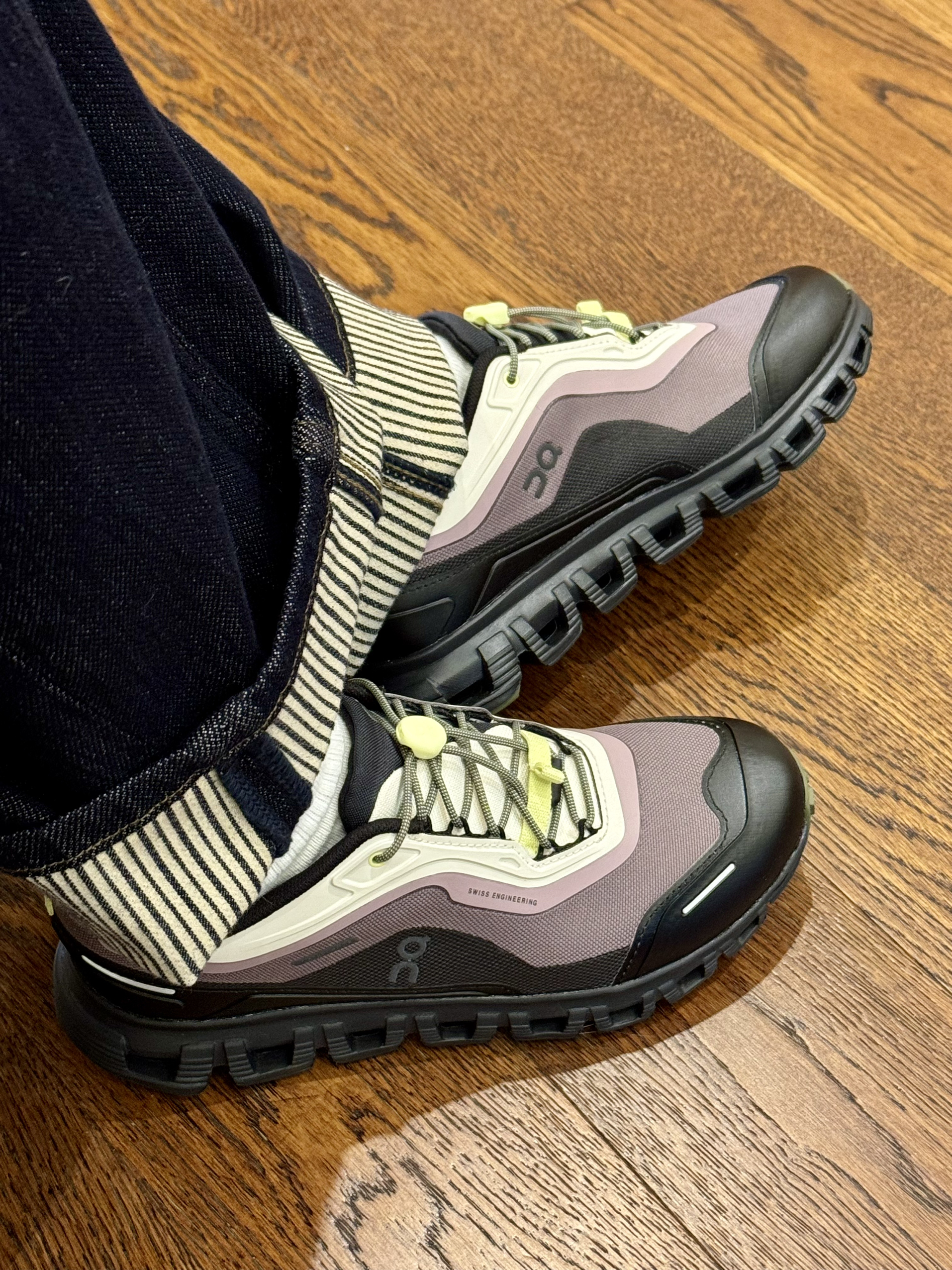 分享我的昂跑新成员---Cloud 6 Geo 喜欢它的拼色设计 很有层次 深紫💜💛配浅米再点缀荧光黄鞋带 低调又带点活力 抽绳设计对于懒人友好 走路不脱跟 舒适度打8分 ✨划重点:鞋舌👅稳定不跑偏 不管是直筒牛仔裤还是阔腿裤都能搭出松弛感 防泼水面料应对洒水和雨天很省心 但舍不得下雨天穿☔️ 外形方面见仁见智 喜欢的朋友可以实体店上脚试试 #薄底鞋穿四季 #On昂跑 #预制春节穿搭 ...