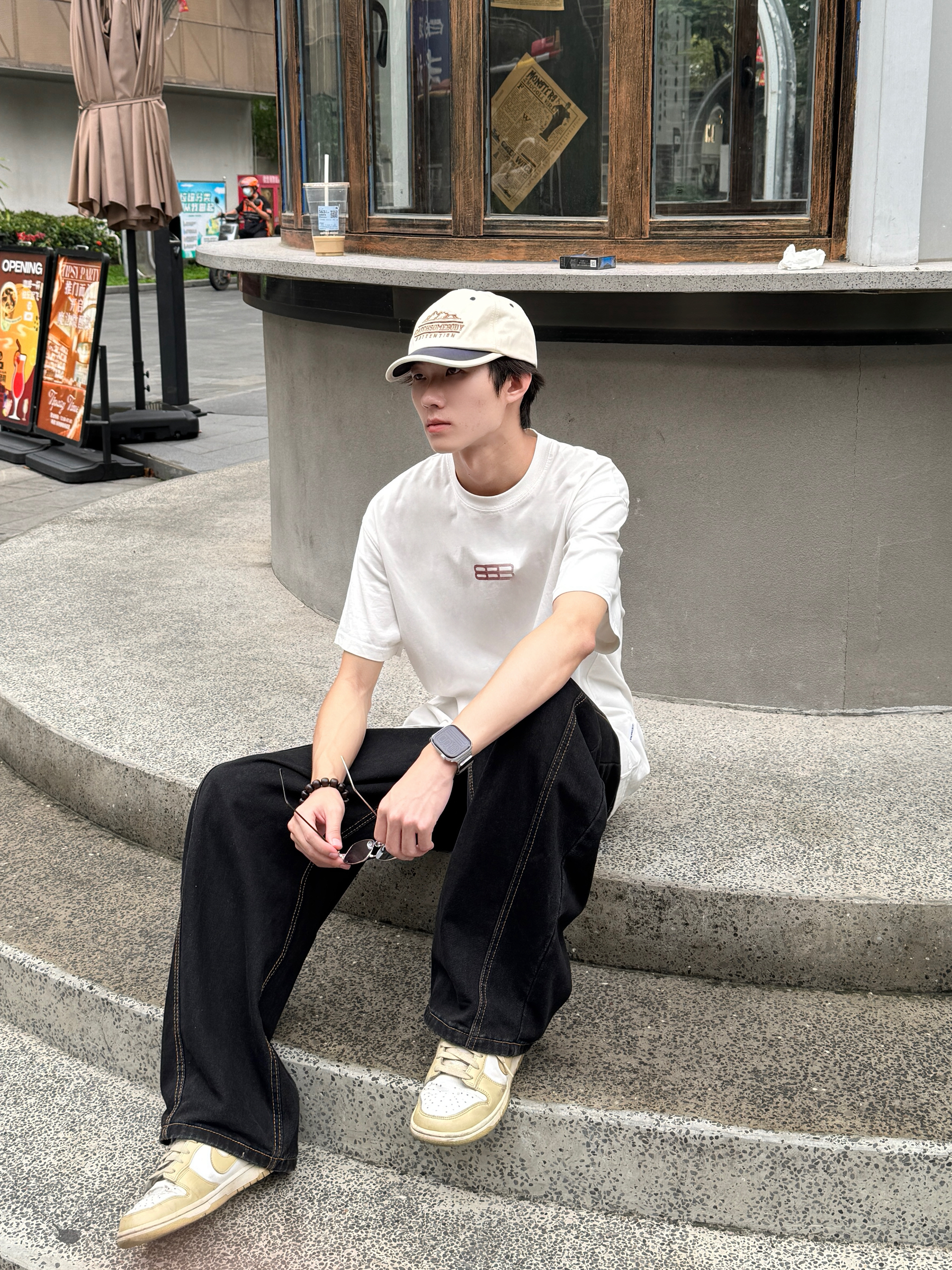 这身黑白配也太帅了 白色棒球帽一戴 清爽感立刻拉满🧢 外套是酷酷的黑色亮面羽绒服 反光质感超吸睛✨ 下身选了条白色弯刀阔腿裤 版型利落走路带风👟 整体黑白对比鲜明 亮面材质让整套搭配一点都不无聊 简单干净又有亮点