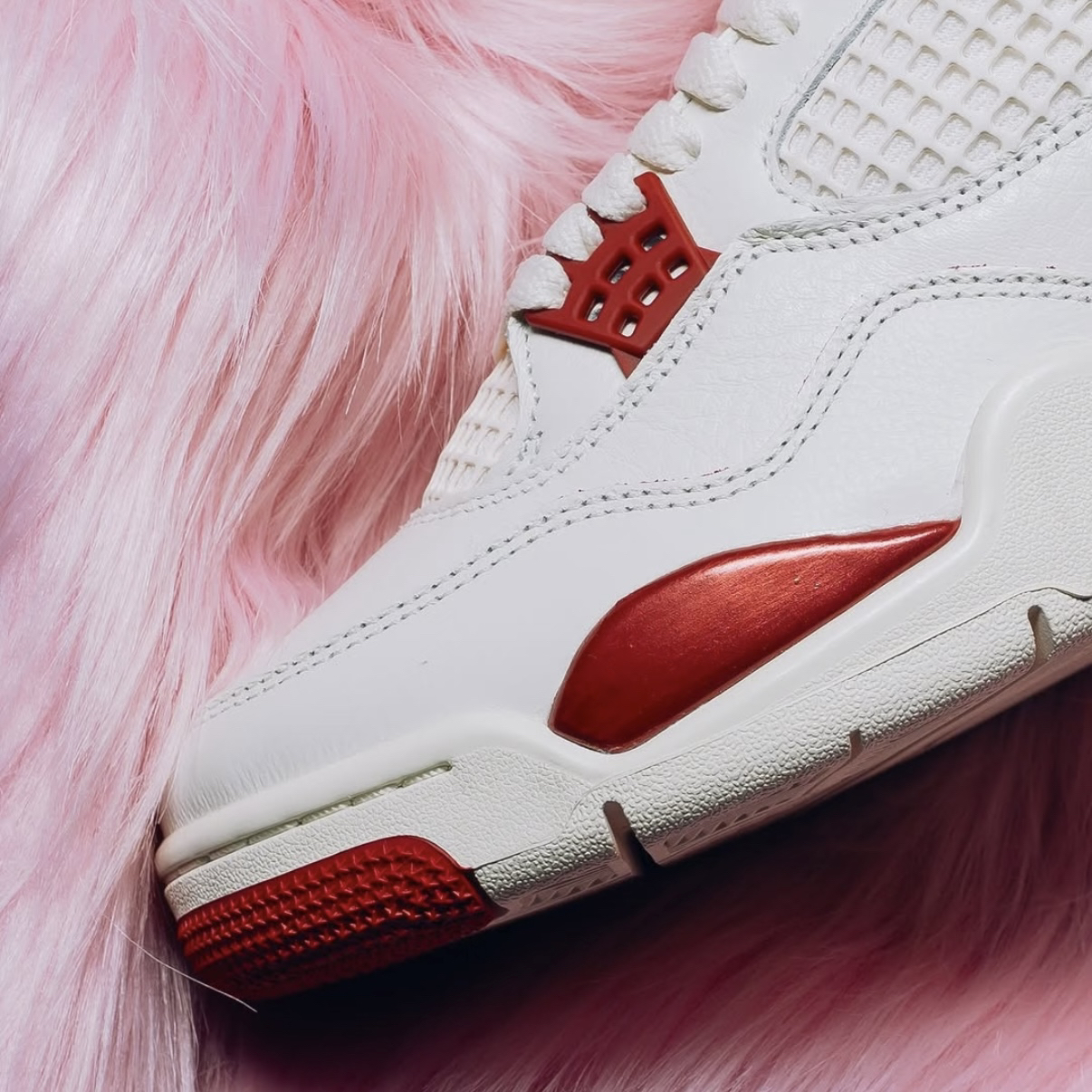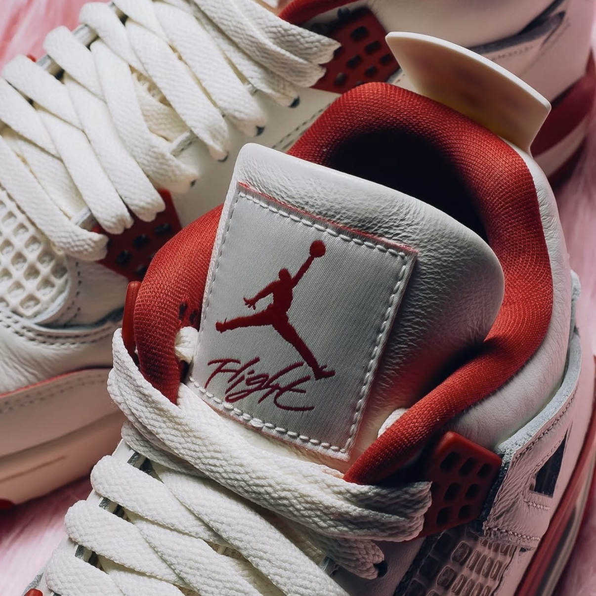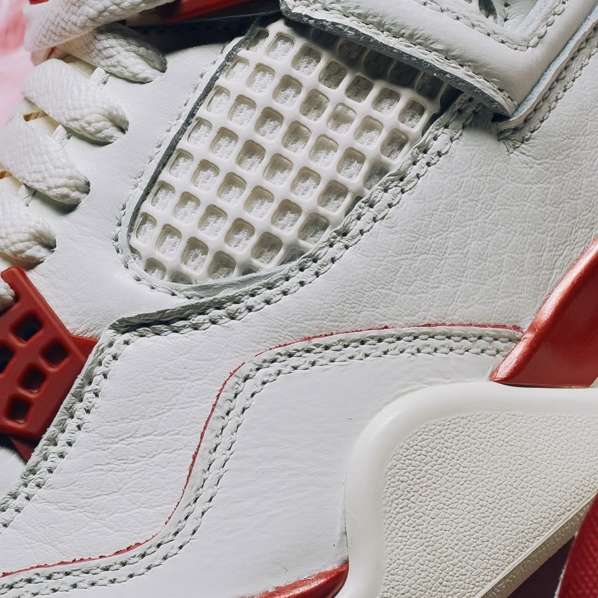 当温润米白撞上热烈胭脂红,这双AJ4便成了2026年开局最精准的情感投资。鞋身大面积米色皮革如初代情书般细腻,而侧边网眼与后跟处的红色泼墨式点缀,恰似心跳漏拍的瞬间——热情暗涌,却高级不张扬。 上脚是AJ4标志性的扎实包裹,脚踝处填充厚实,给予双脚沉稳的拥抱感。可视Air气垫缓震明晰,步履间弹润舒适,无论是约会漫步还是通勤赶场,都提供可靠支撑。 搭配即攻略,锁定双向心动。米白主调完美适配日常穿...