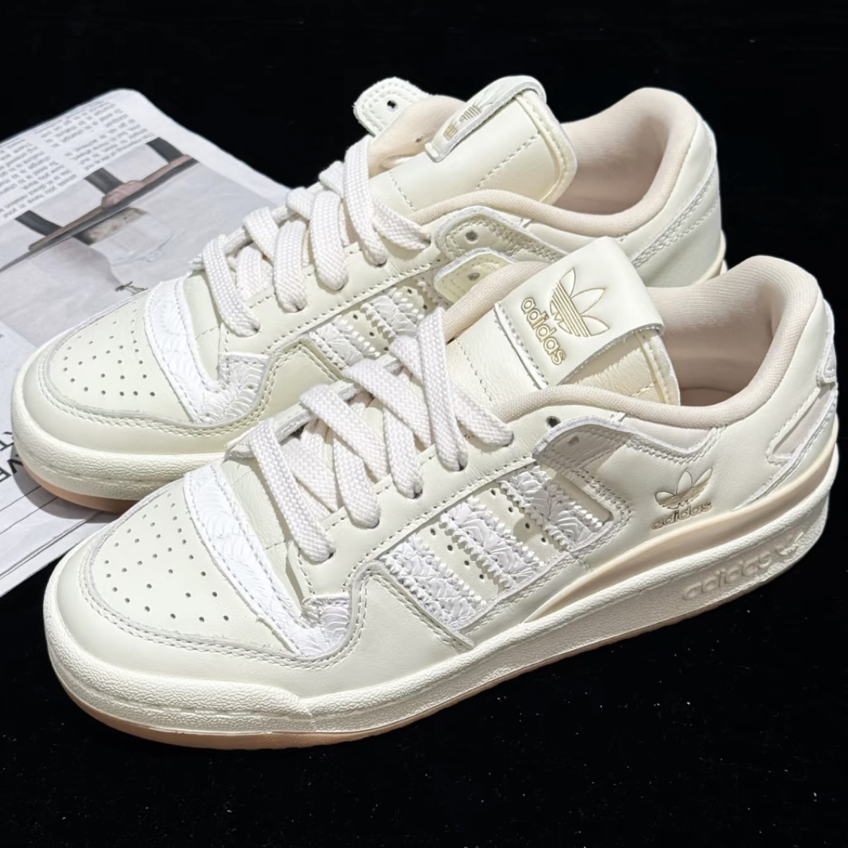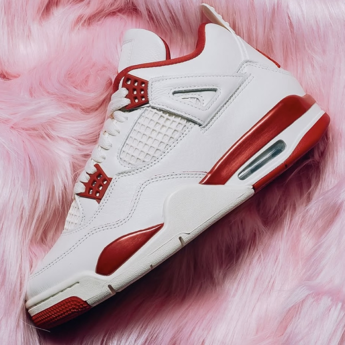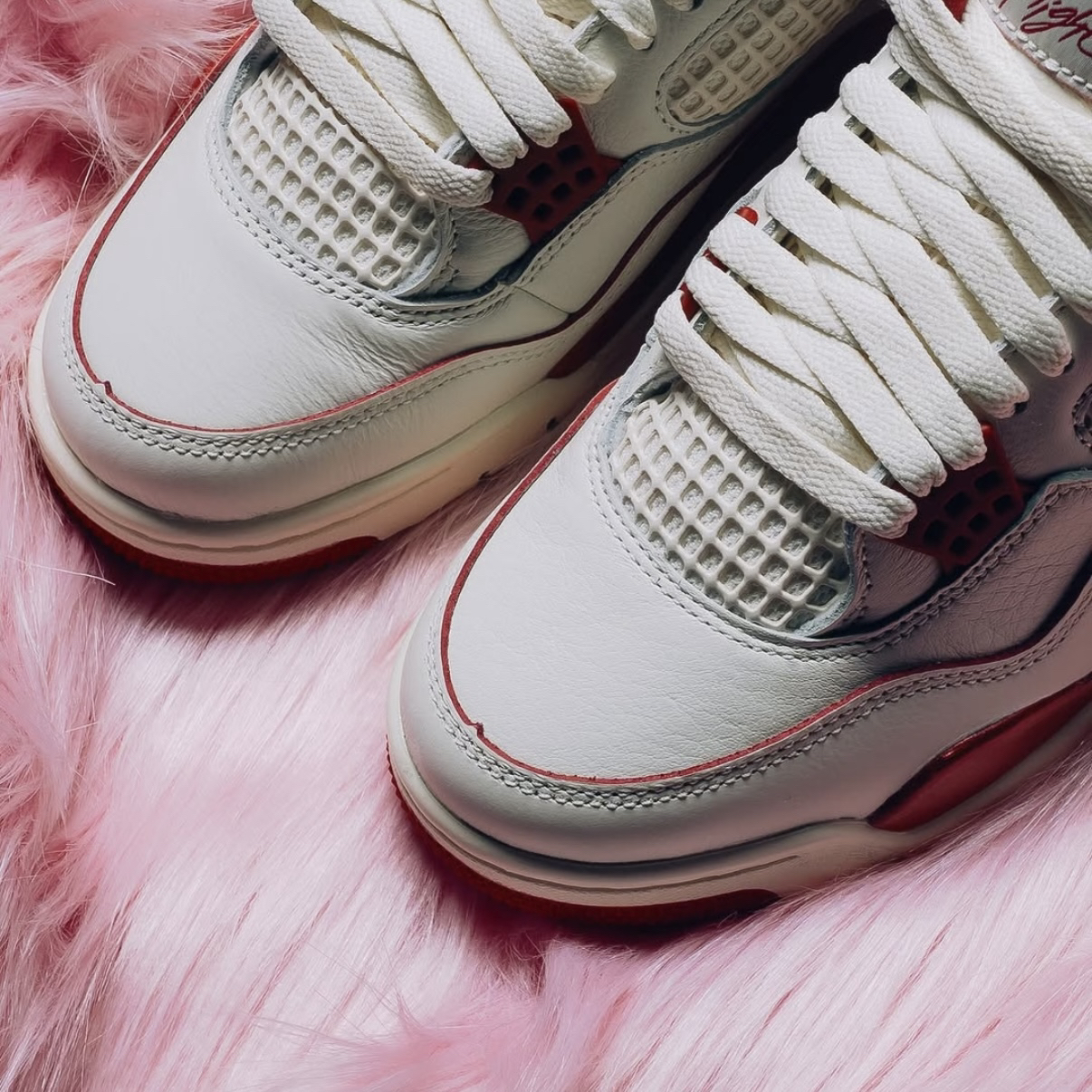 当温润米白撞上热烈胭脂红,这双AJ4便成了2026年开局最精准的情感投资。鞋身大面积米色皮革如初代情书般细腻,而侧边网眼与后跟处的红色泼墨式点缀,恰似心跳漏拍的瞬间——热情暗涌,却高级不张扬。 上脚是AJ4标志性的扎实包裹,脚踝处填充厚实,给予双脚沉稳的拥抱感。可视Air气垫缓震明晰,步履间弹润舒适,无论是约会漫步还是通勤赶场,都提供可靠支撑。 搭配即攻略,锁定双向心动。米白主调完美适配日常穿...