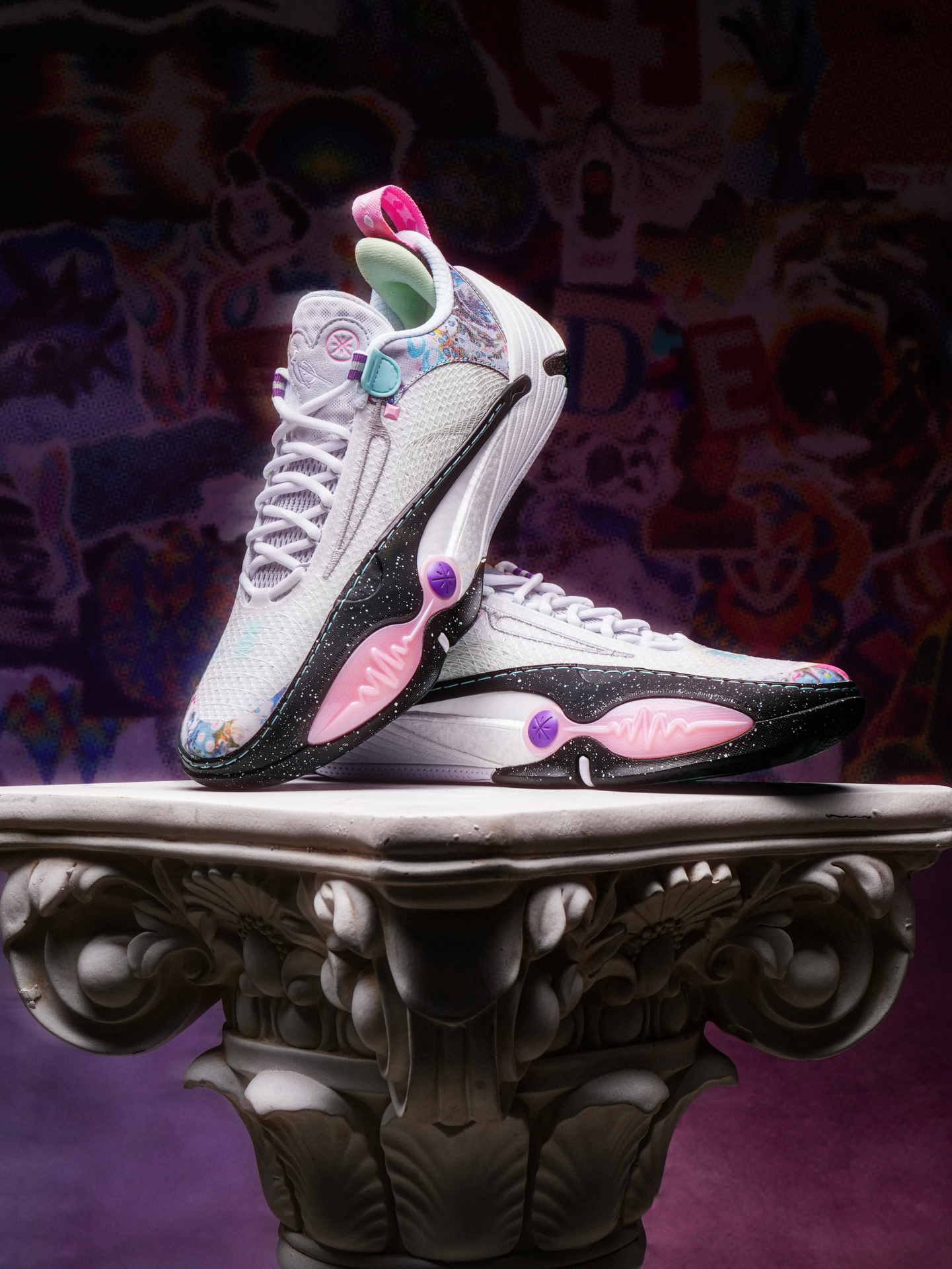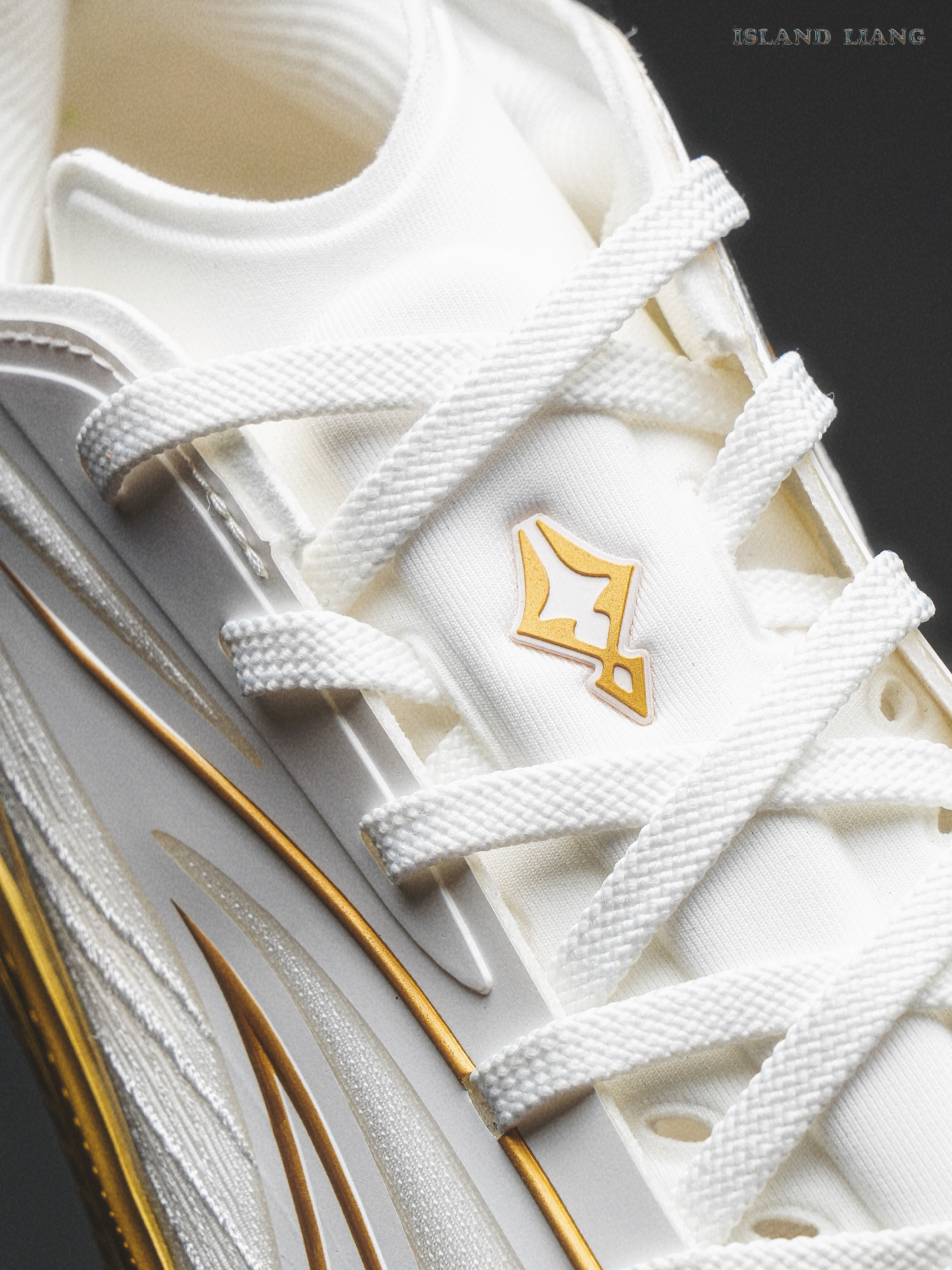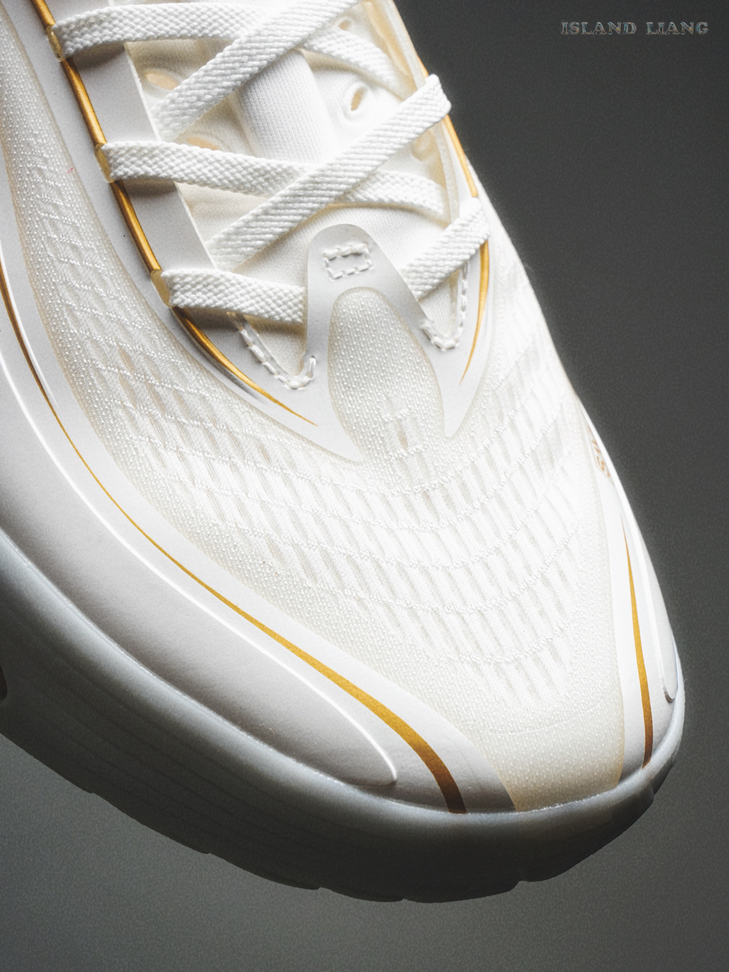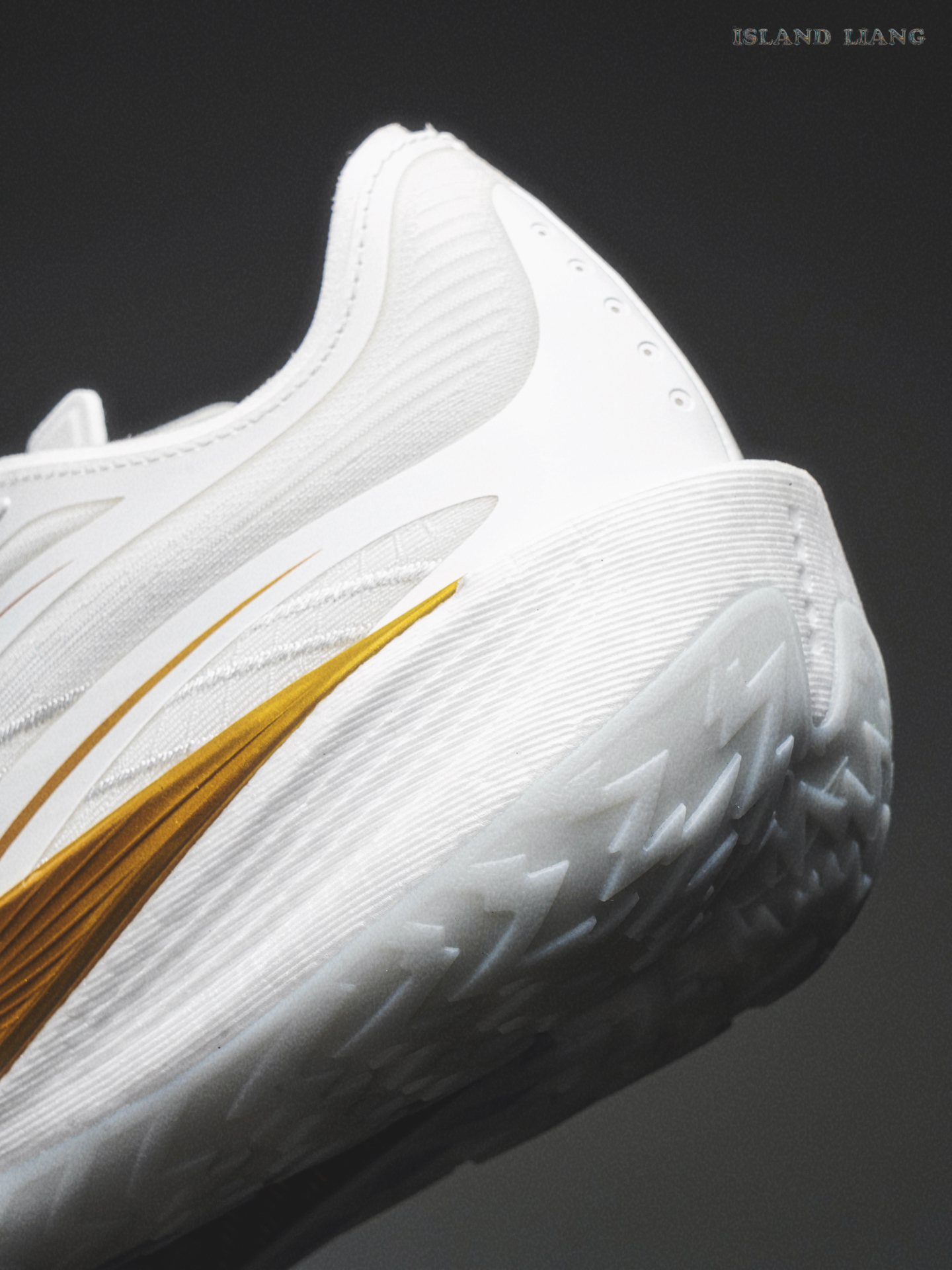 作为安踏2026年交出的首款轻量化球鞋答卷 安踏轻狂5的亮相确实惹人瞩目✨ 主要在于造型上的速度凌厉以及克重上的轻质 42码单只300克左右的克重 无愧轻量化成果 侧向处的TPU造型有种飞镖的感觉 质感也很是在线 而这款白金色调的“启源”清新而华贵 颜值很是讨喜 配置而言采用氮80中底 结合金刚狼狼爪样式的前叉碳板 脚感澎湃 突破反馈响应迅捷 匹配灵动型后卫需求 作为安踏最轻的球鞋 轻狂5确实又轻...
