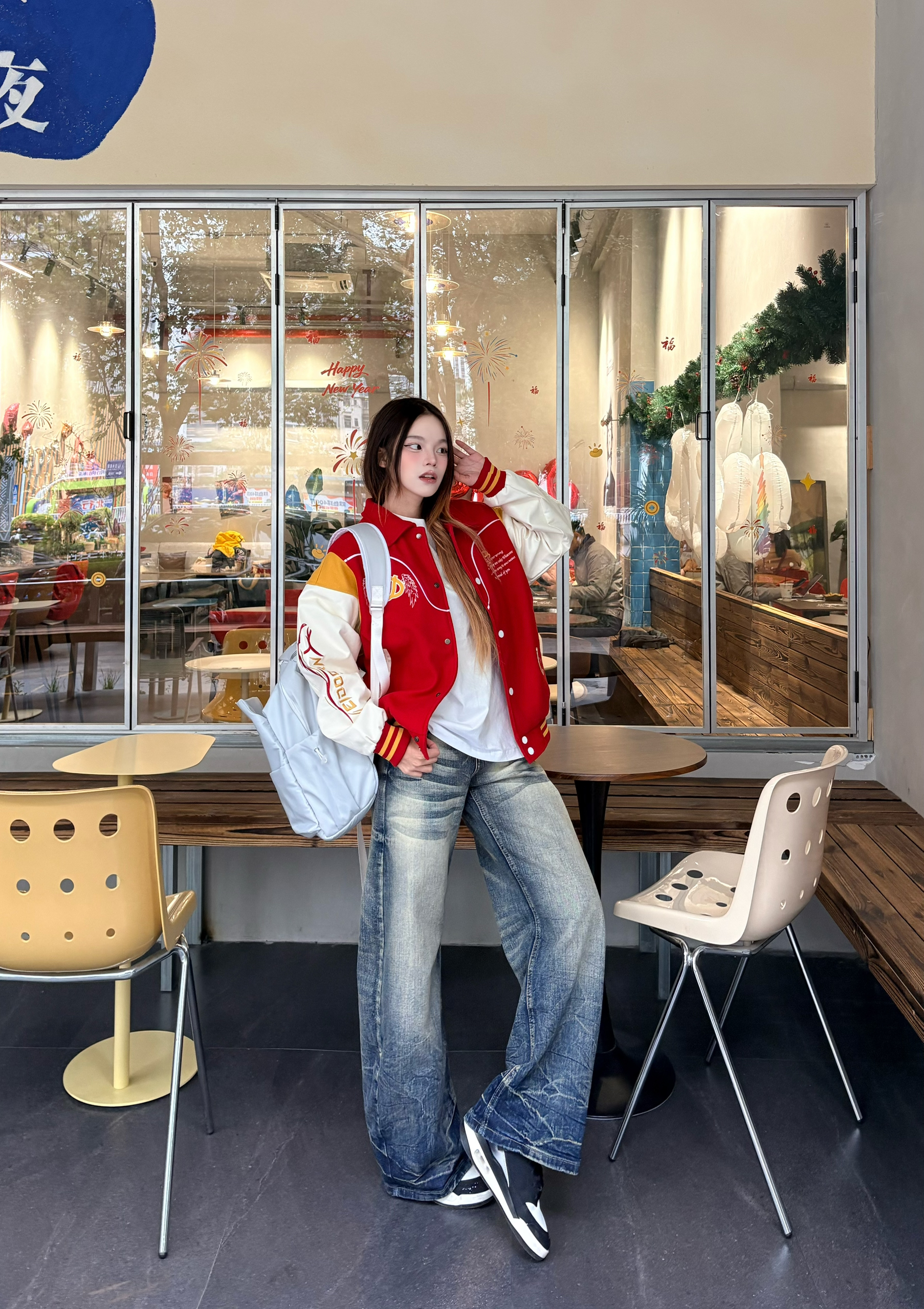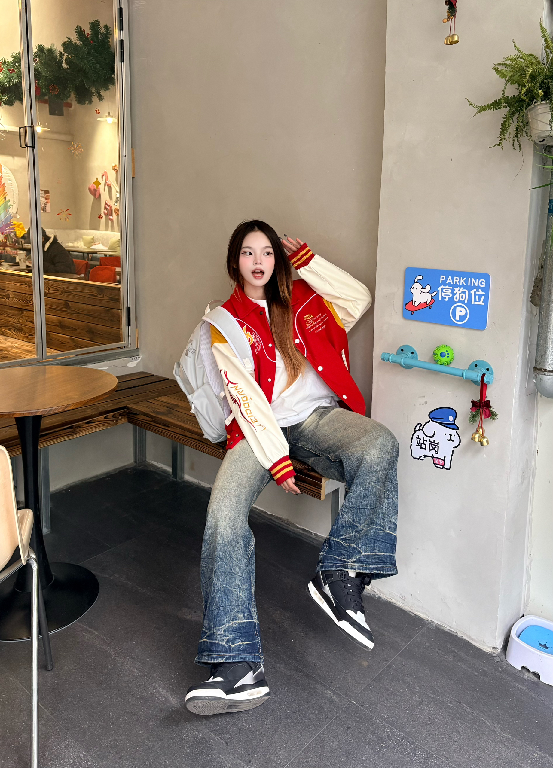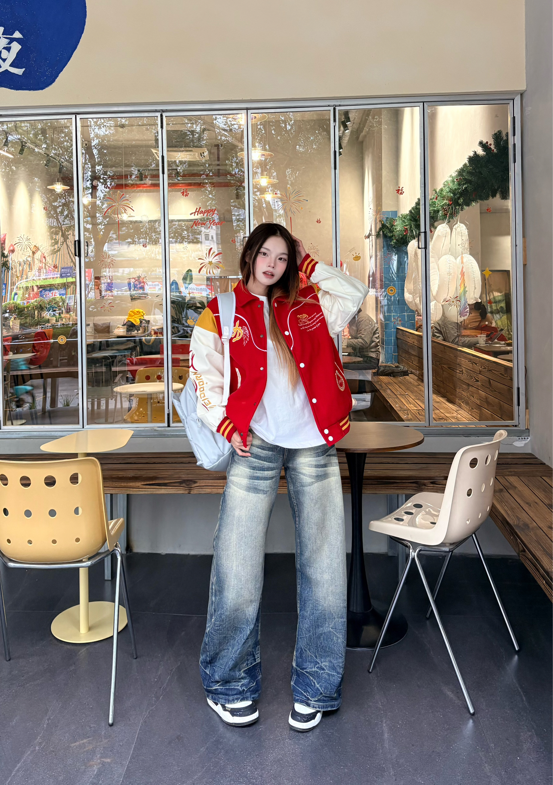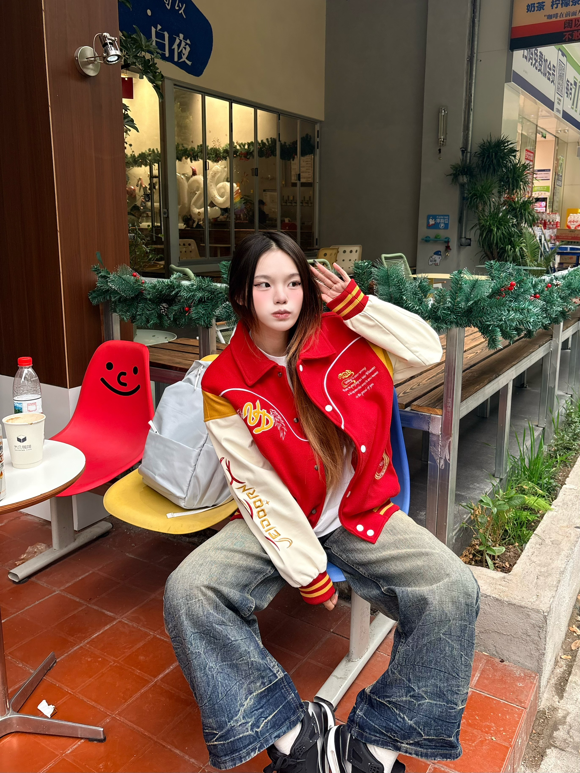 ✨ 这件红金配色的棒球服真的戳中我 后背的骏马刺绣又飒又有年味,红+米白+黄的拼接复古感拉满。 搭配做旧阔腿牛仔裤+黑球鞋🖤 不管是街头出街还是咖啡店打卡都超吸睛。 新年穿它,回头率和好运一起爆棚 🧧 我165/96 穿的m码
